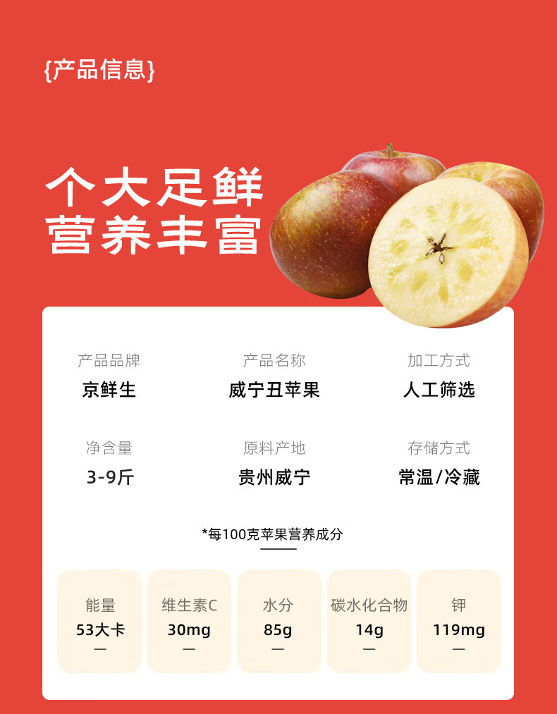 京鲜生 贵州威宁丑苹果 4.5斤单果70mm+ 12-18个左右 源头直发 新鲜水果