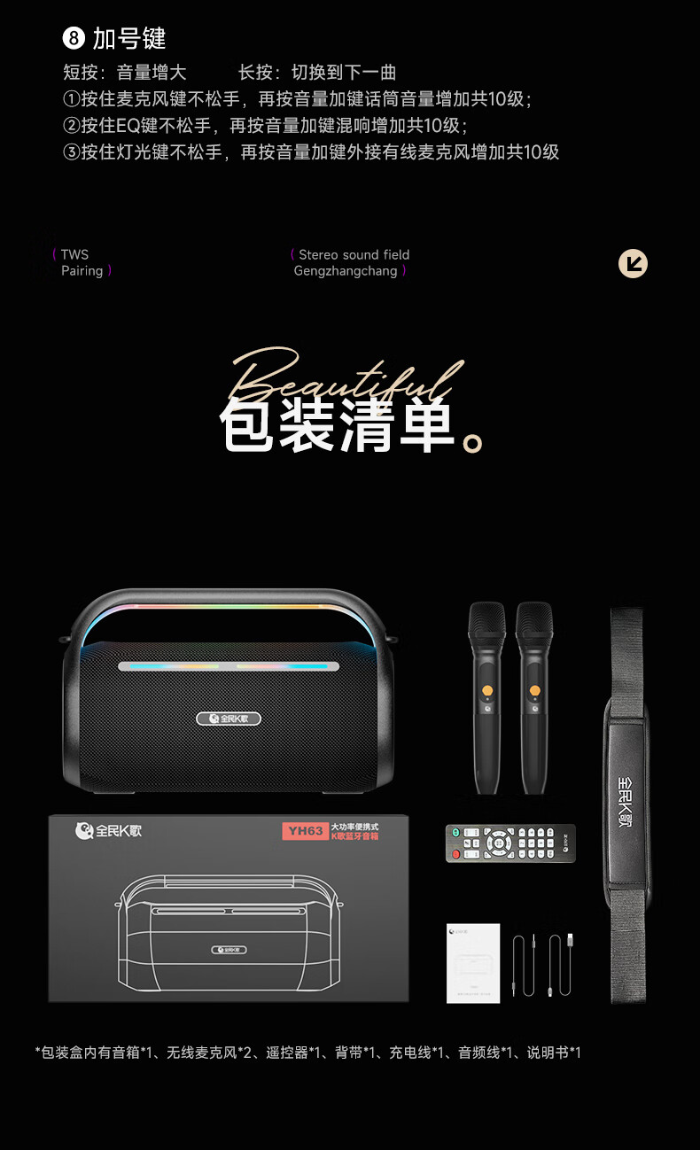 全民K歌家庭欢唱机麦克风家用影院KTV套装音响卡拉OK点歌机话筒音箱一体机套装YH63生日礼物