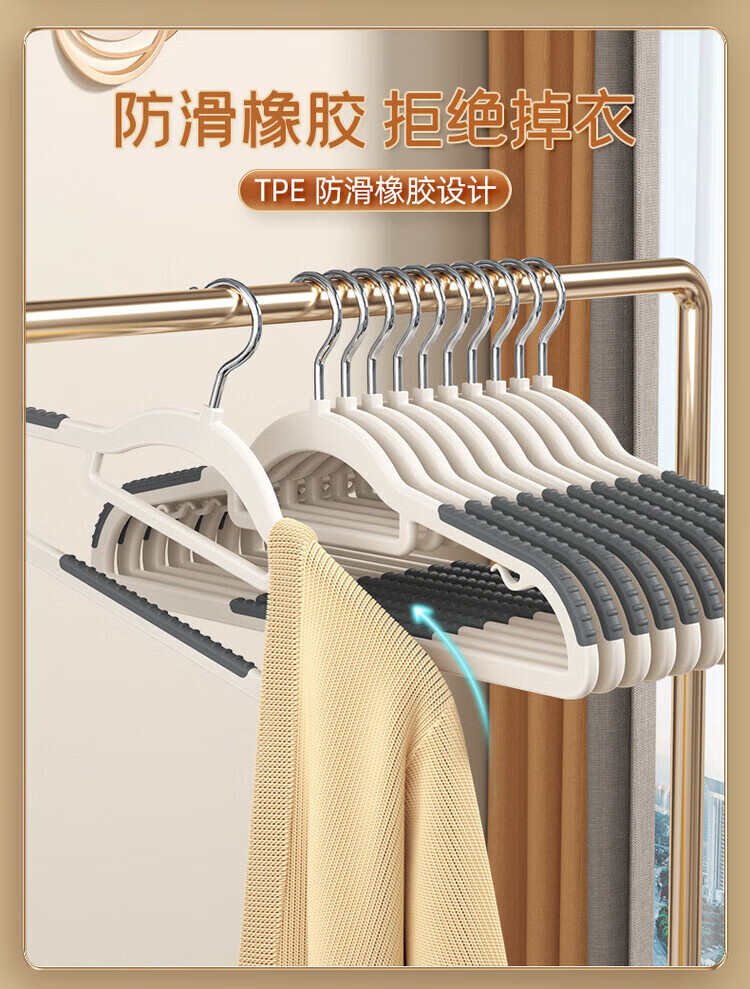 洋臣无痕衣架加粗款防滑家用衣挂可旋转多功能宽肩宿舍干湿两用衣撑子 双位防滑衣架【橙色10个】