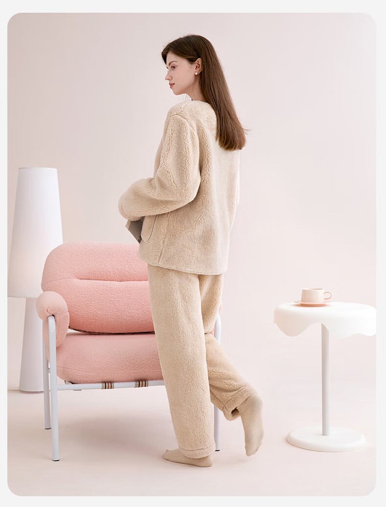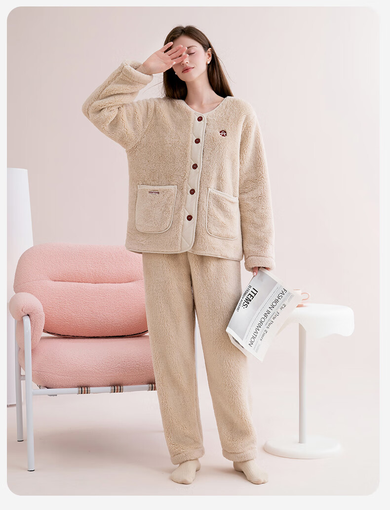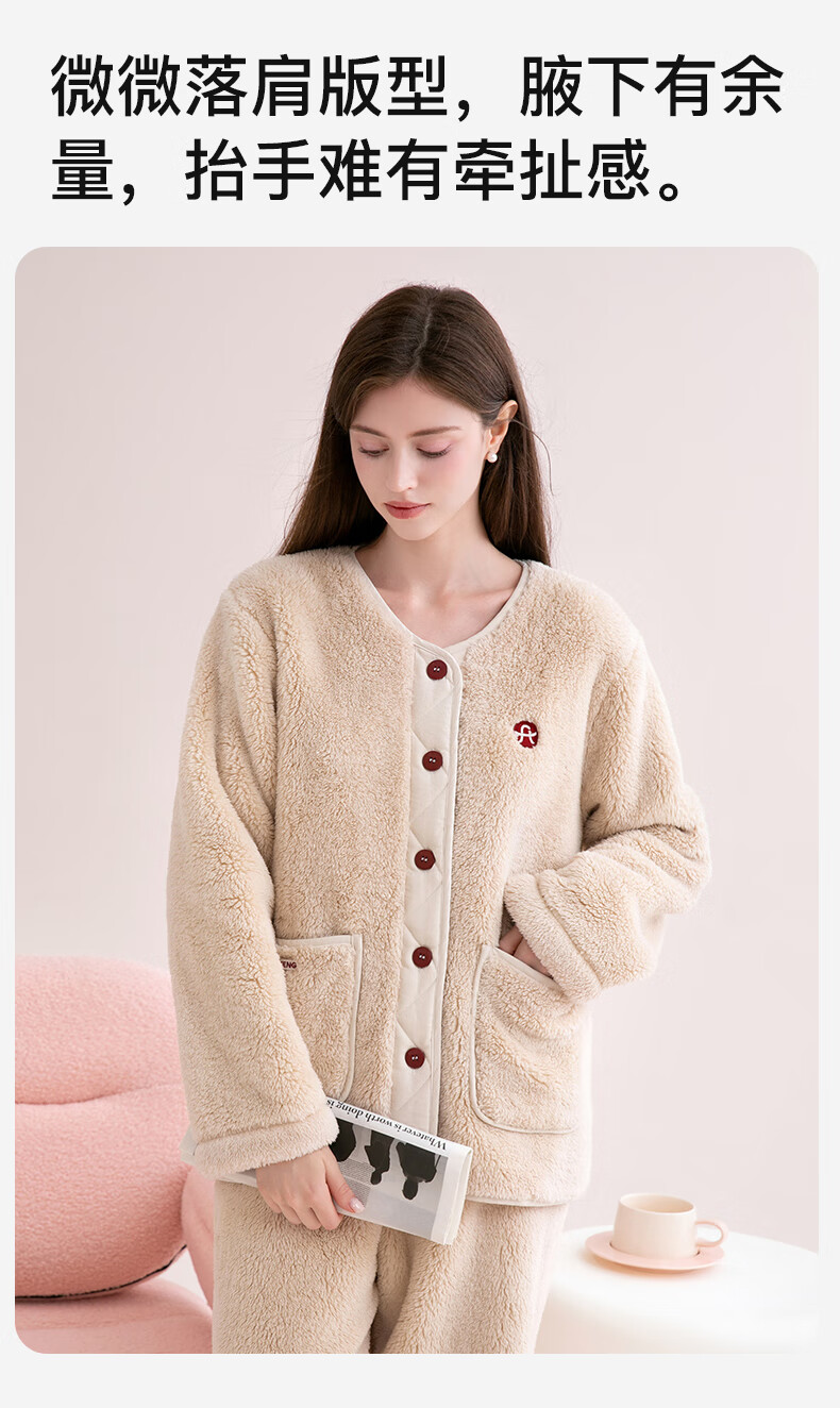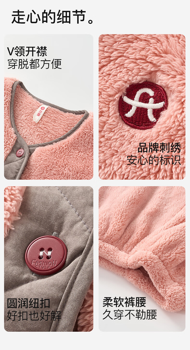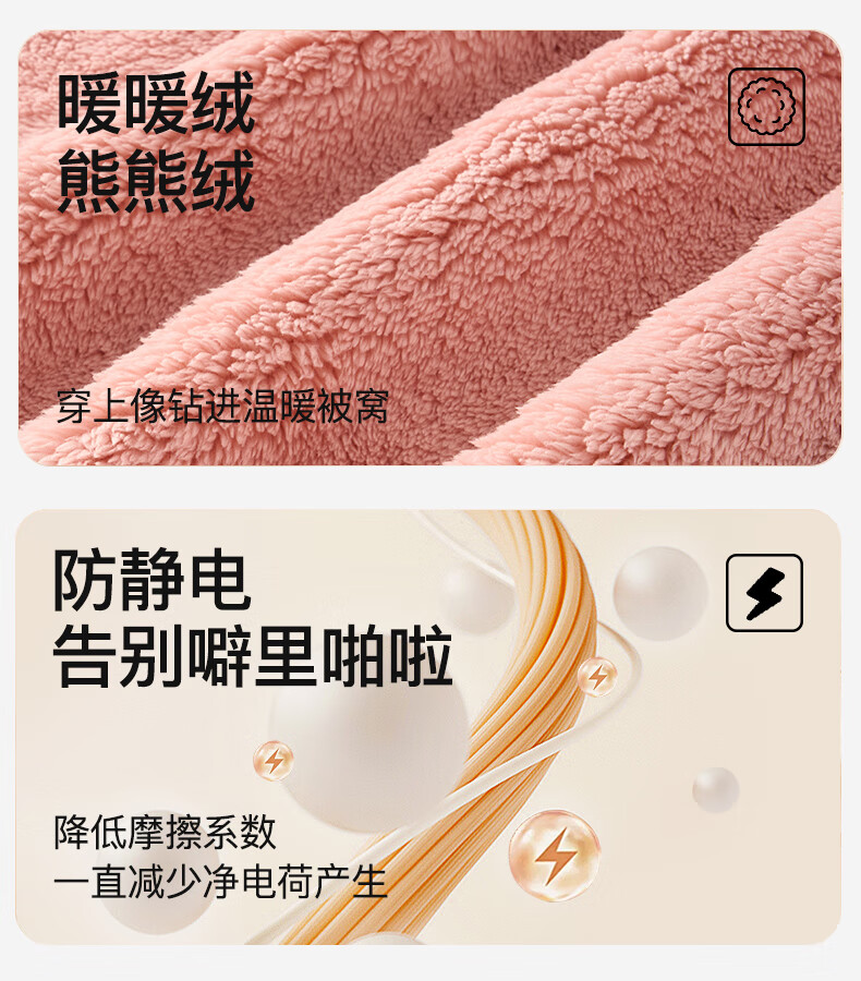 芬腾睡衣女2025秋冬新款防静电双面暖绒加厚绒女长袖家居服套装睡衣 粉桔 S