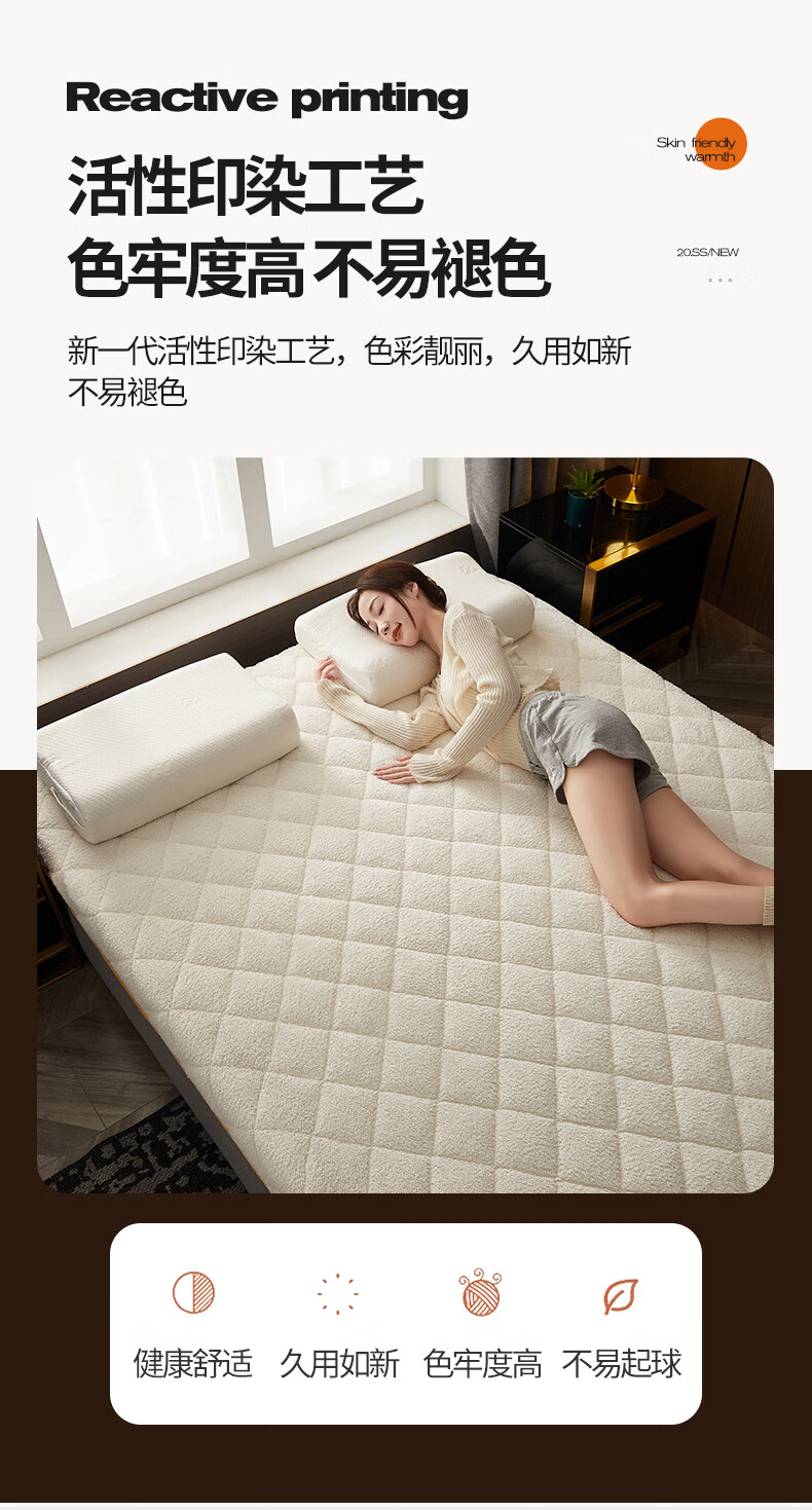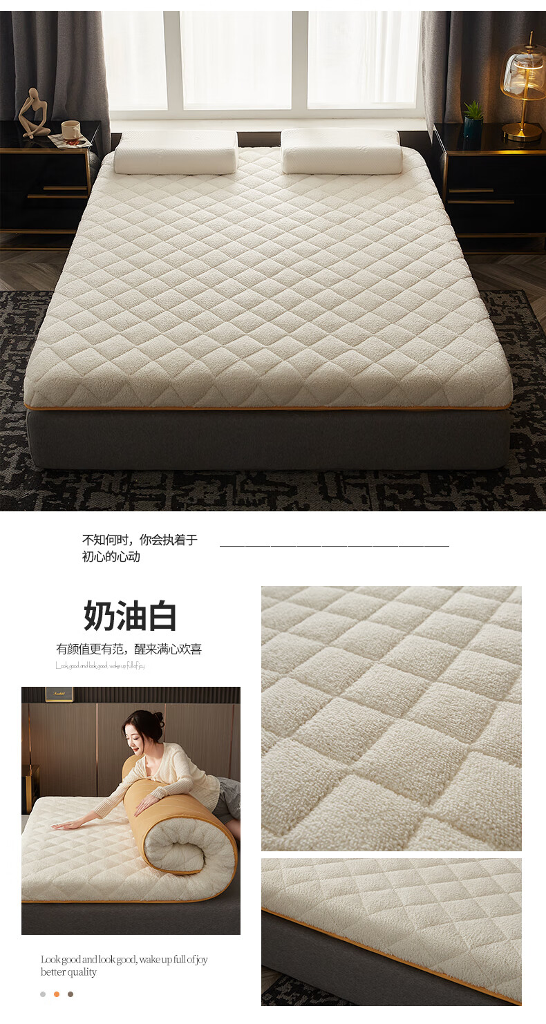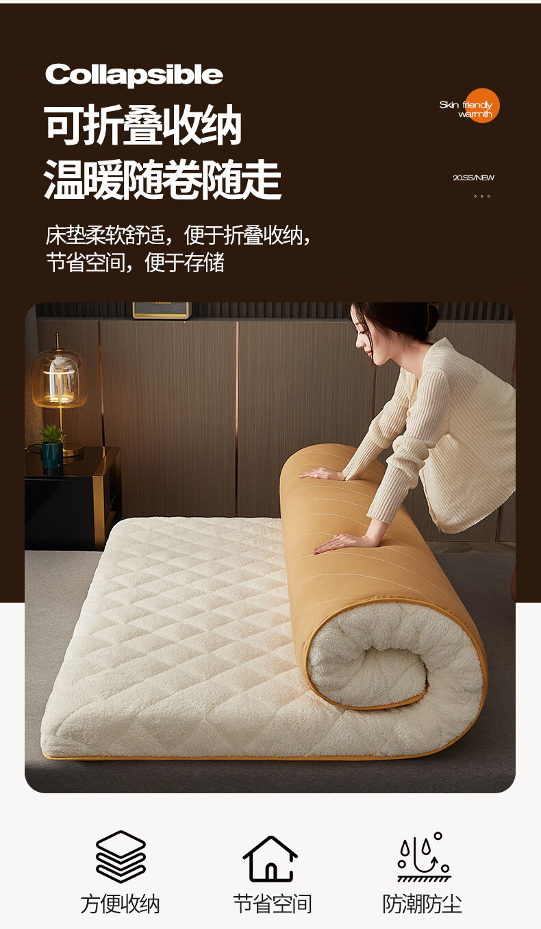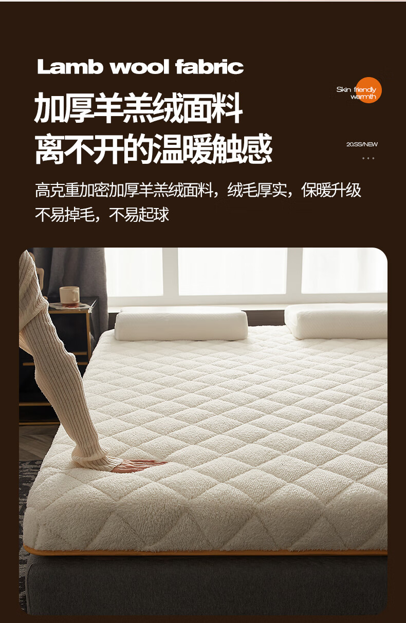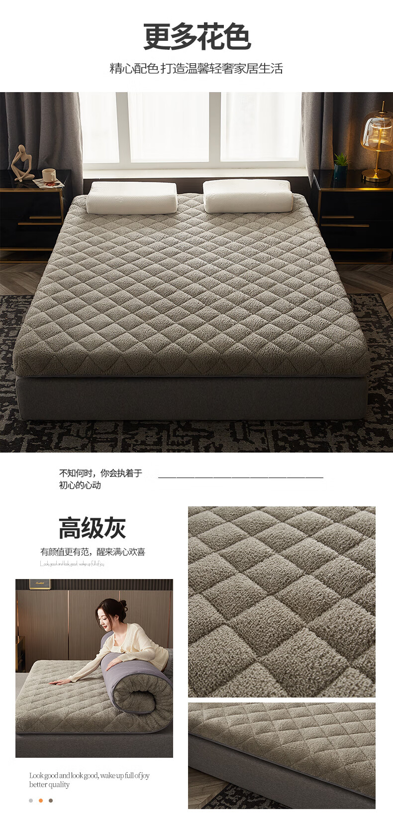浪莎(langsha)家用羊羔绒床垫床褥子榻榻米垫子垫褥垫被大学生宿舍加厚保暖软垫 羊羔绒-灰色-厚度6 cm 适用0.9m床