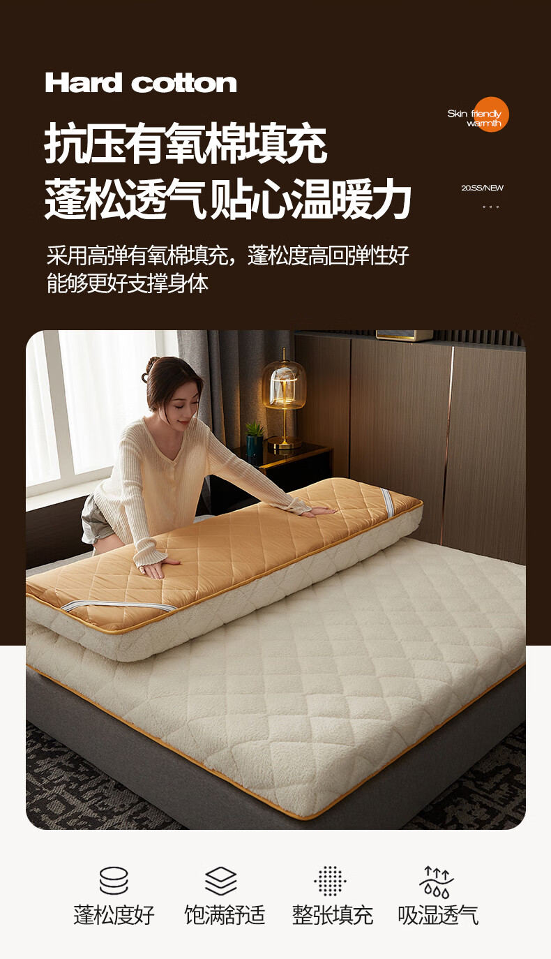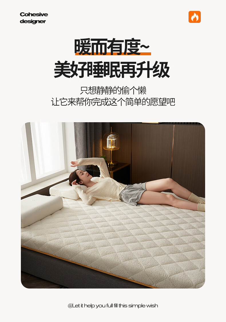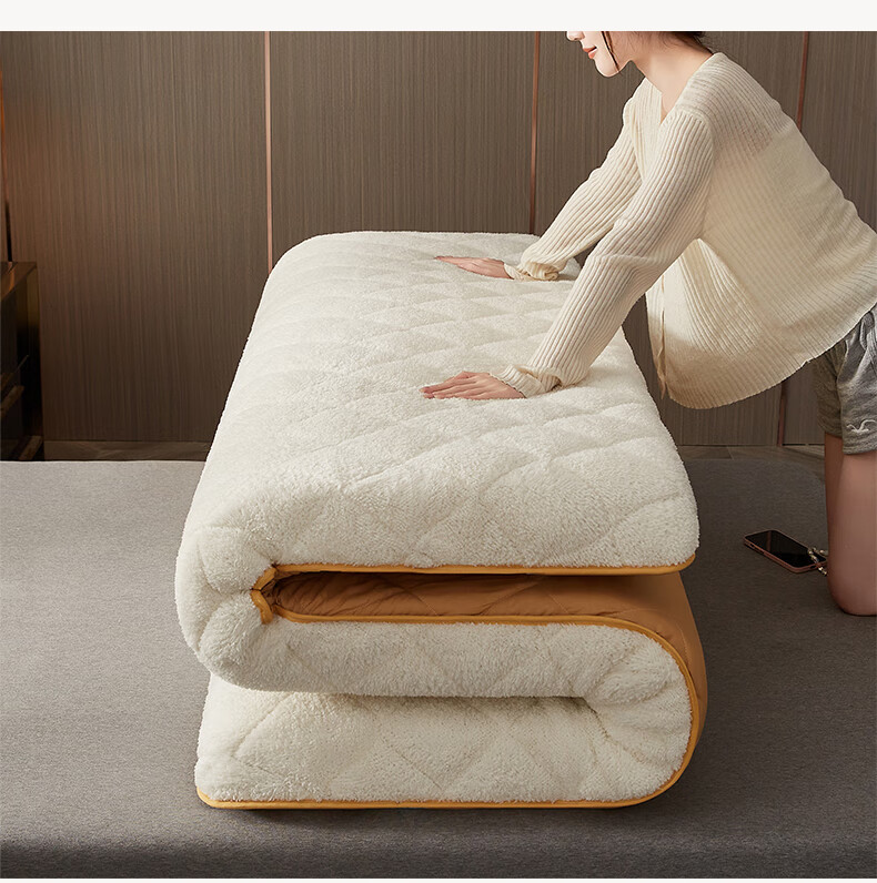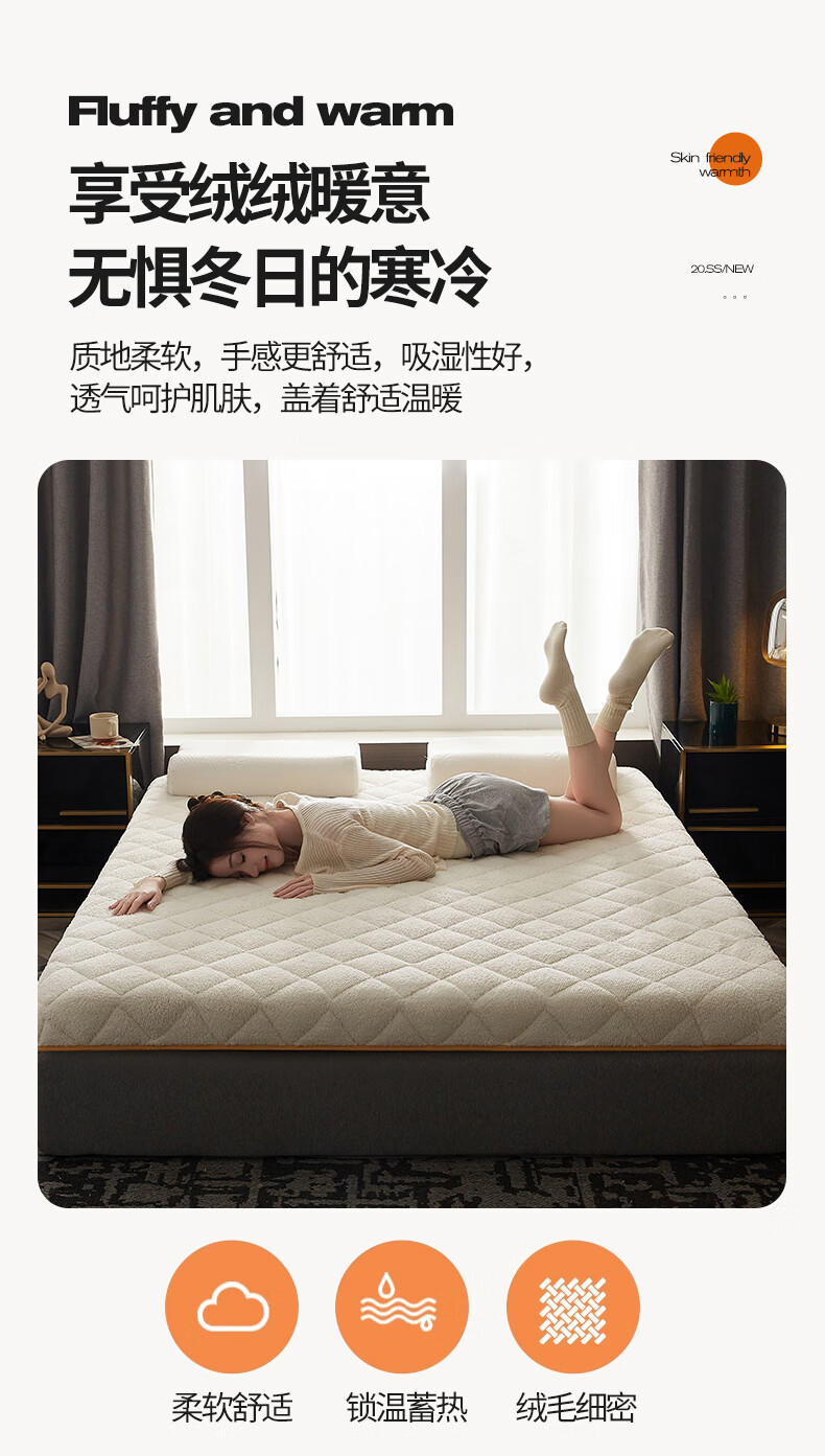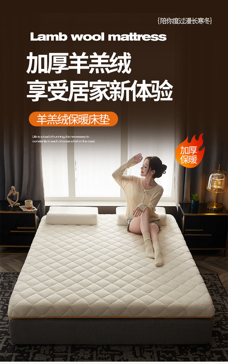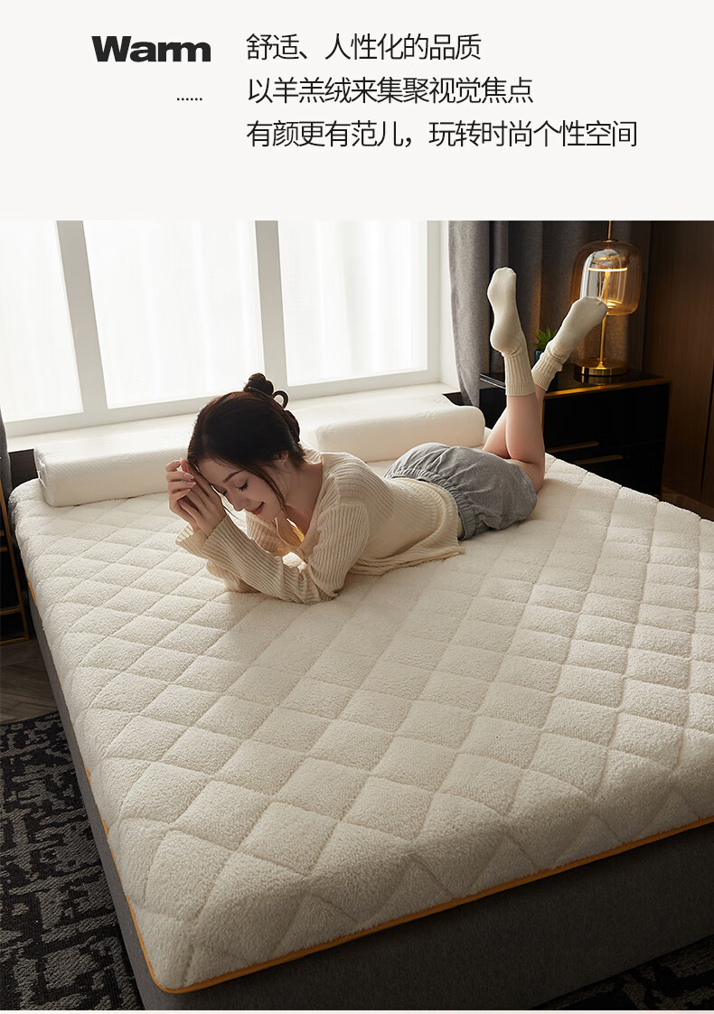 浪莎(langsha)家用羊羔绒床垫床褥子榻榻米垫子垫褥垫被大学生宿舍加厚保暖软垫 羊羔绒-灰色-厚度6 cm 适用0.9m床