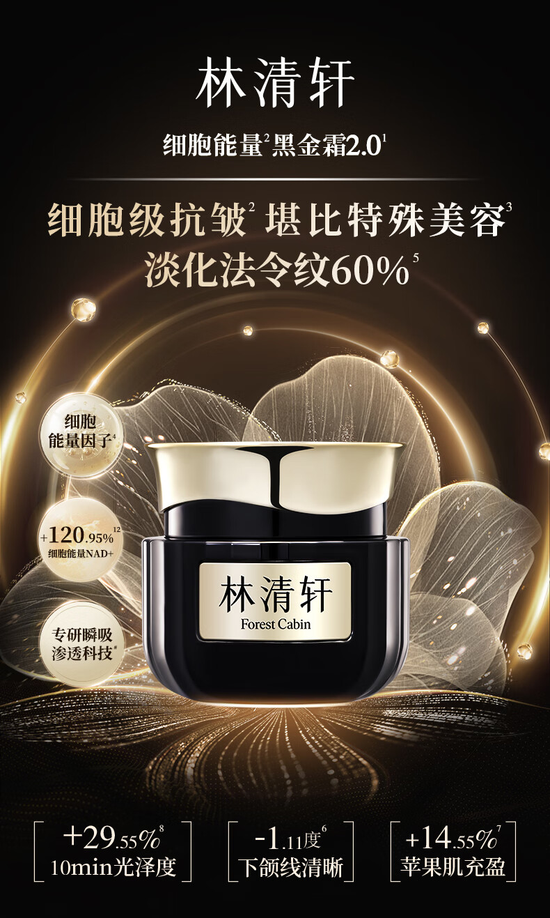 林清轩山茶花黑金时光肽抗皱焕亮精华霜补水保湿紧致圣诞礼物送人 【1.0时光修护】50g