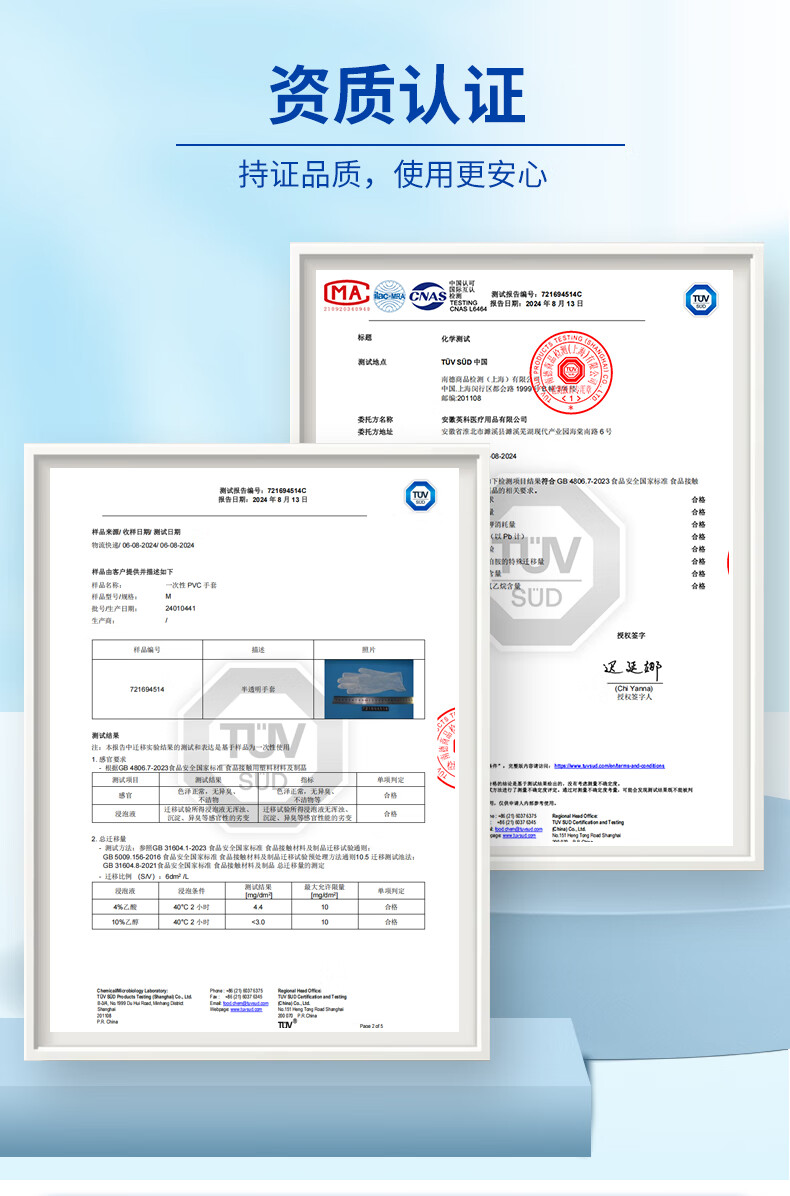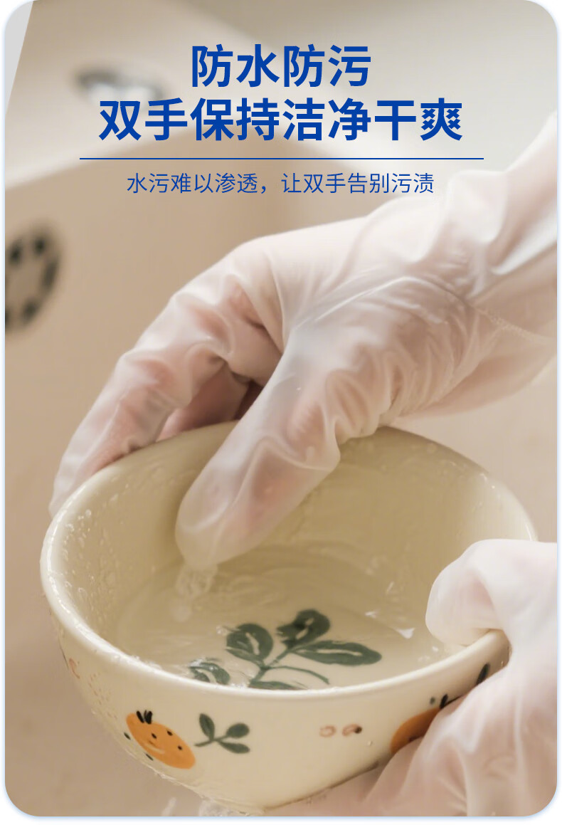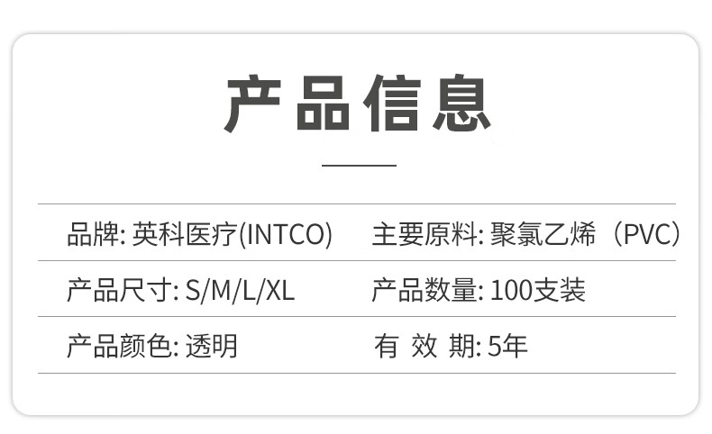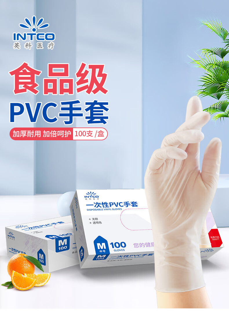 英科医疗 一次性PVC手套 洗碗家务食品级手套 加厚耐磨 M码 100只/盒