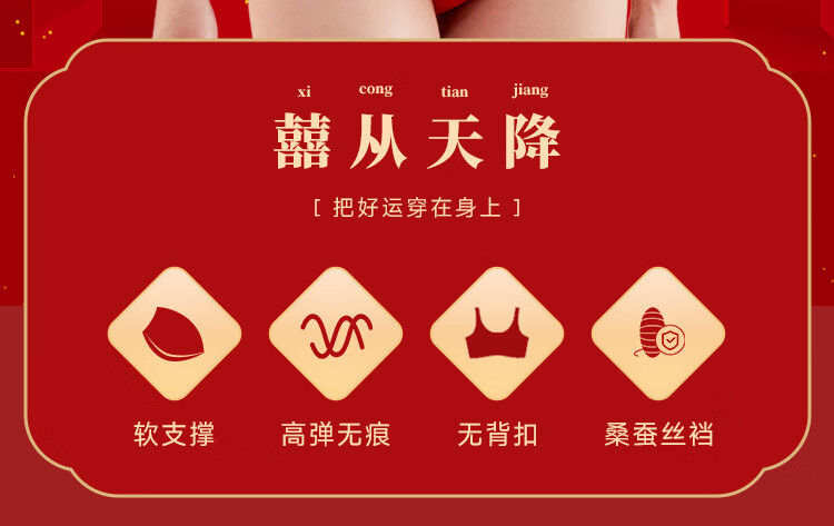 欧迪芬(Ordifen)秋冬尺码红品礼盒】内衣女无钢圈无痕舒适红品文胸套装送女友 中国红 均码