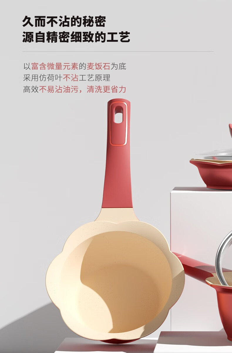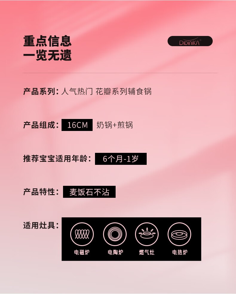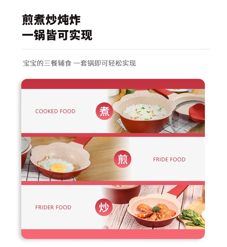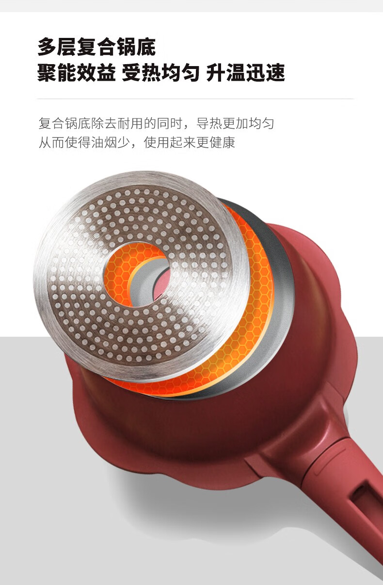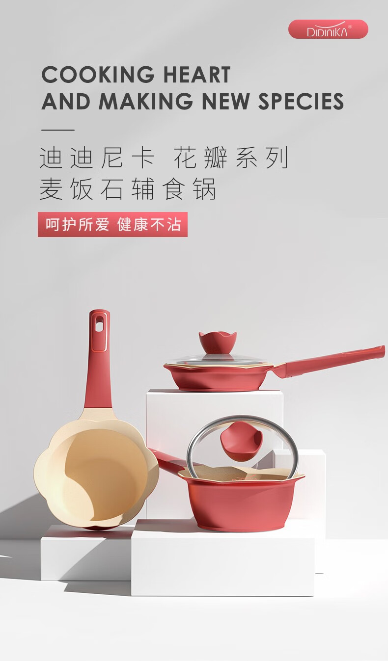 Didinika辅食锅奶锅16cm宝宝奶锅婴儿小奶锅平底汤锅麦饭石不粘锅煎锅 红花瓣煎锅 16cm