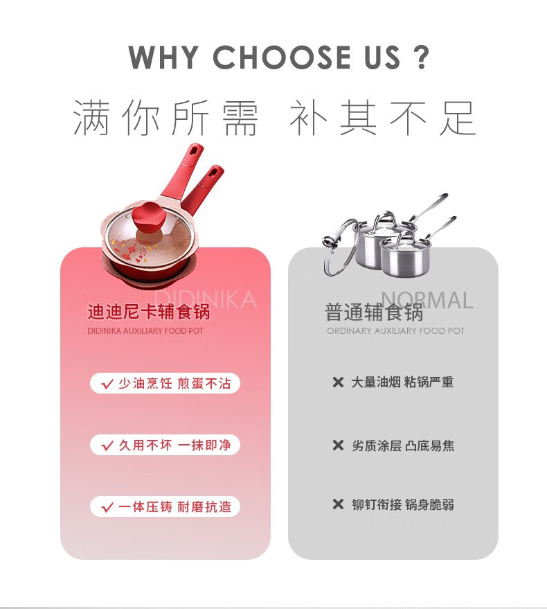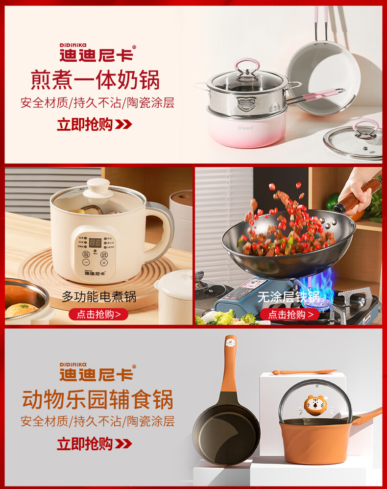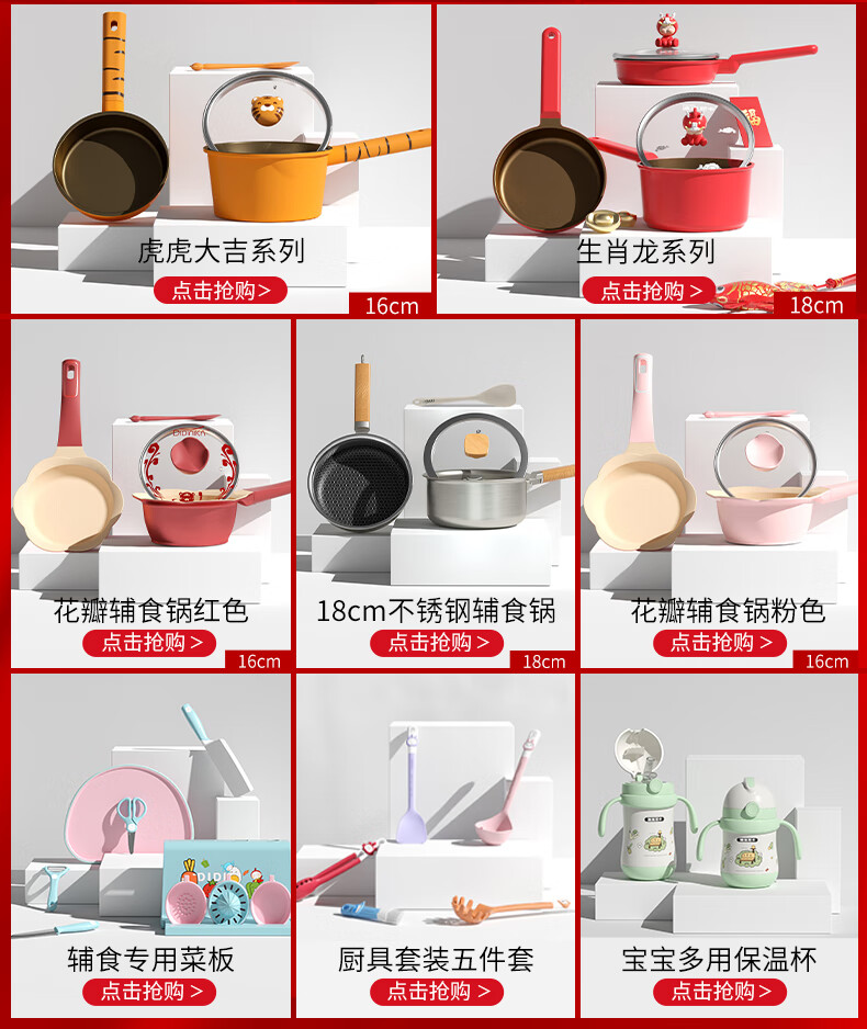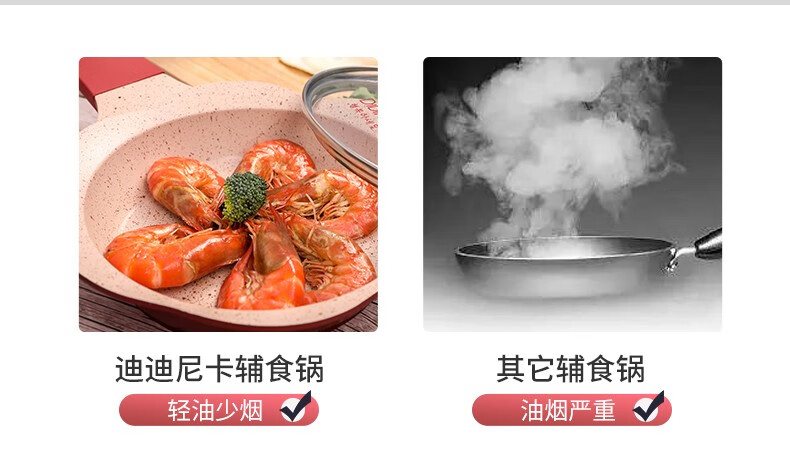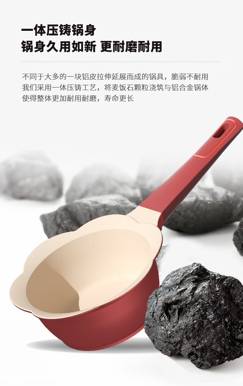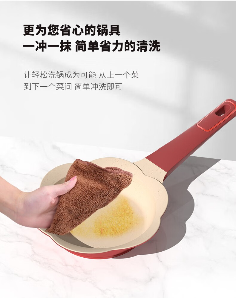 Didinika辅食锅奶锅16cm宝宝奶锅婴儿小奶锅平底汤锅麦饭石不粘锅煎锅 红花瓣煎锅 16cm