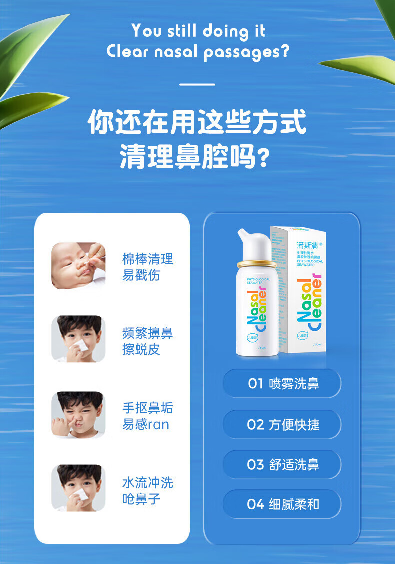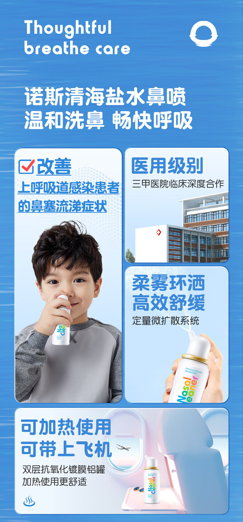 诺斯清生理海水鼻腔冲洗喷雾感冒鼻塞鼻痒流涕上呼吸道感染洗鼻器 【3盒装】甲乙流检测试剂盒