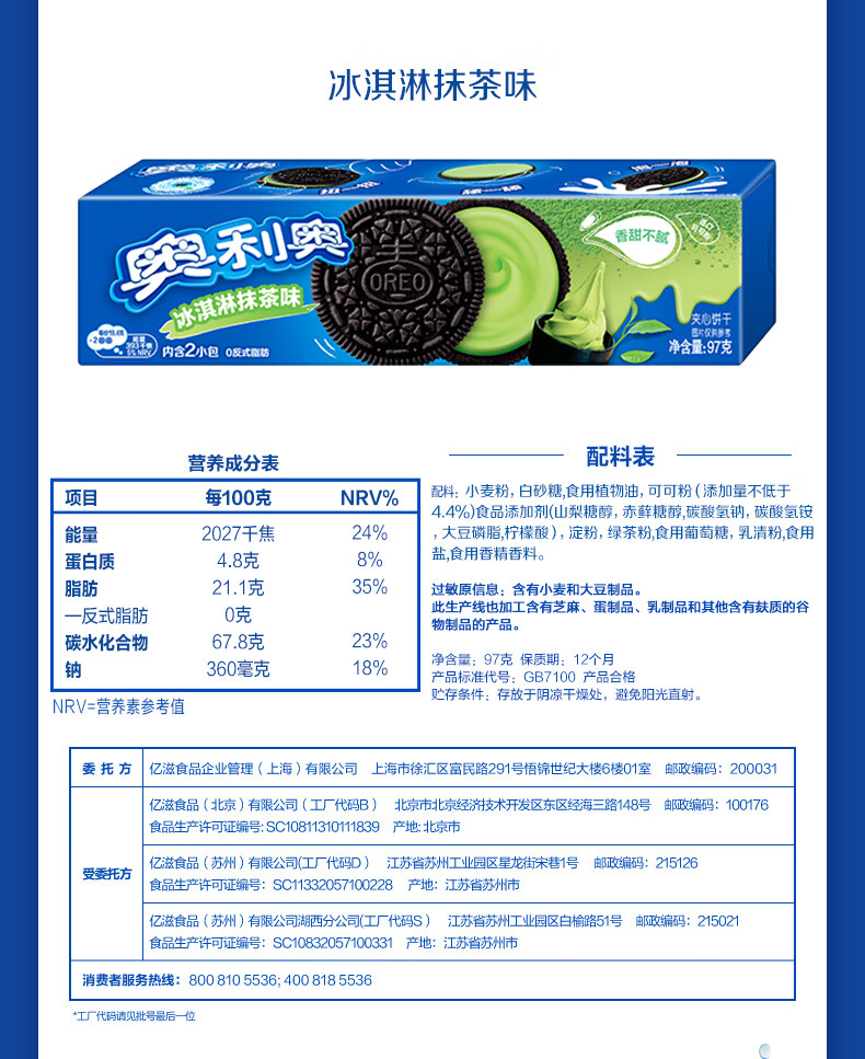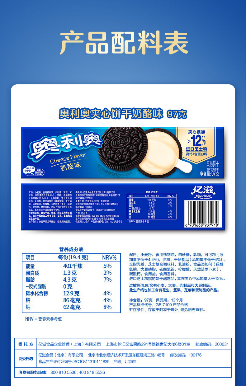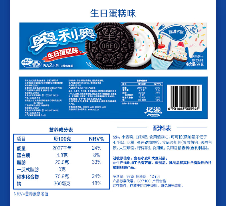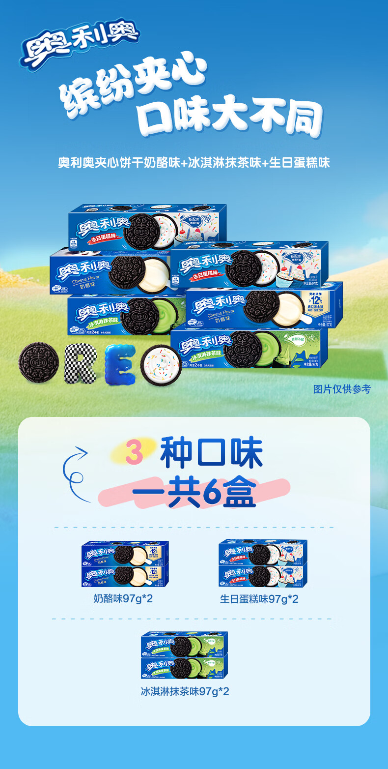 奥利奥(Oreo)夹心饼干 多口味组合 97gX6包休闲零食 早餐下午茶