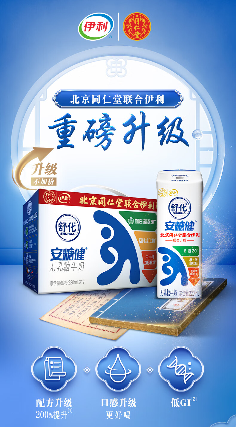 伊利舒化安糖健0乳糖牛奶220ml*12盒 乳糖不耐受零乳糖 礼盒装 9月产 安糖健零乳糖220MLx12盒/箱