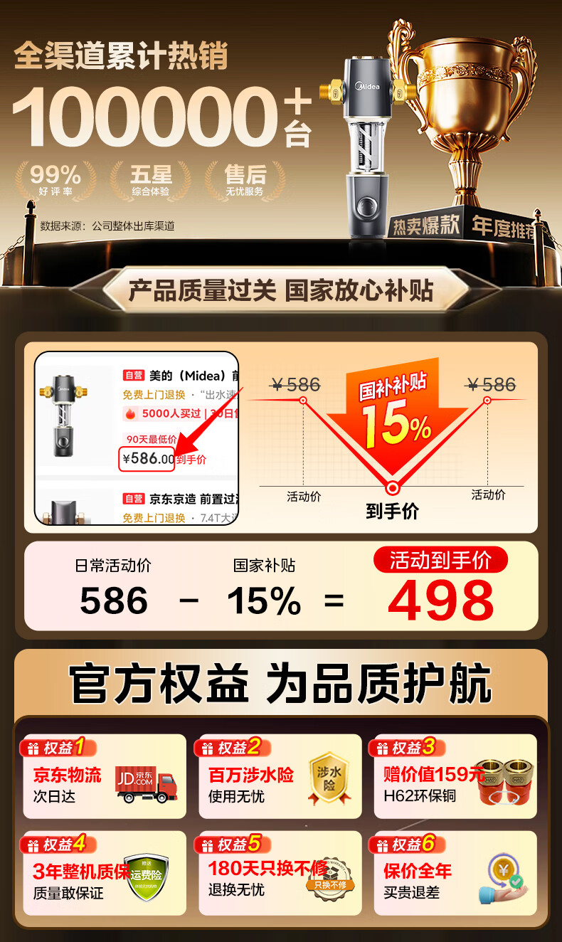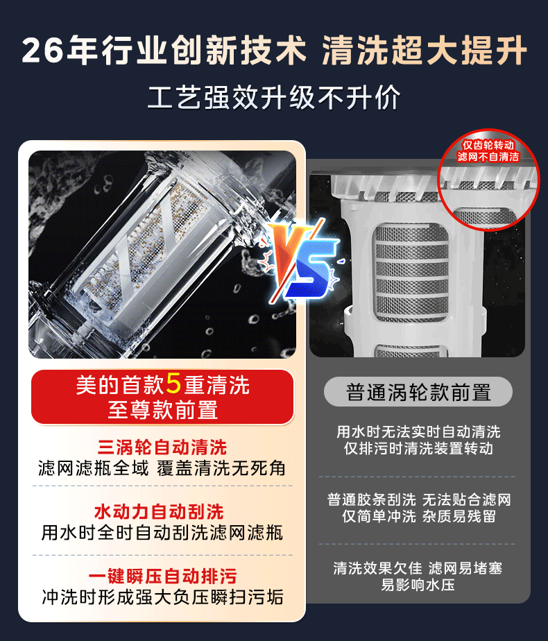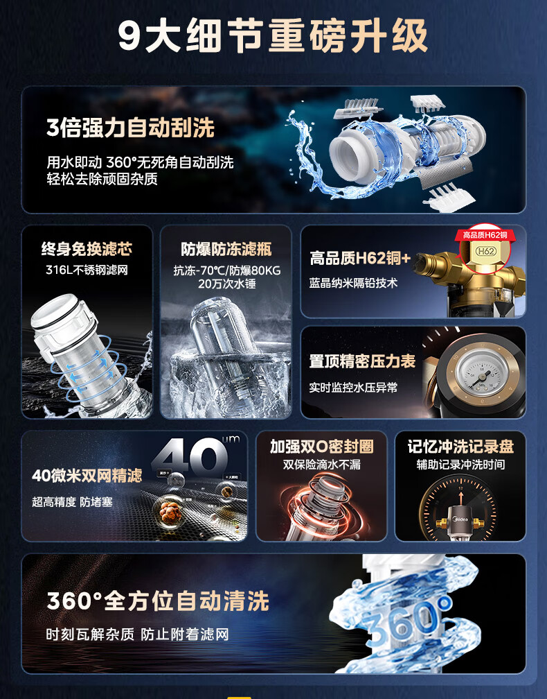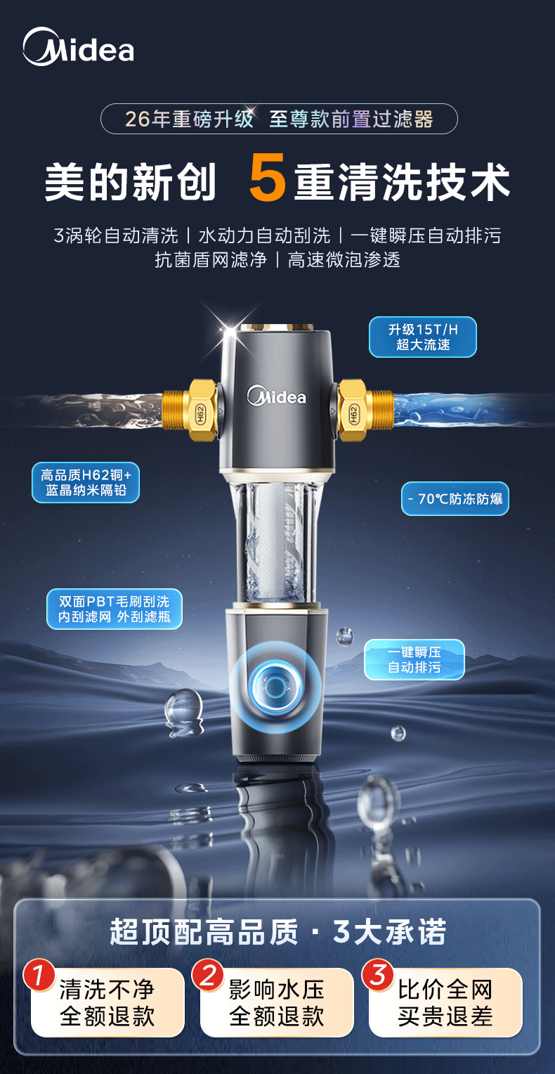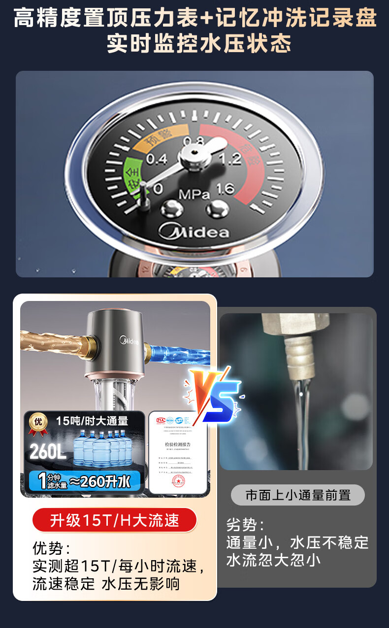 美的(Midea)前置过滤器前十名防爆自来水过滤器净水器星河正反冲洗自动清洗刮洗滤网10T大通量QZBW20S-11S