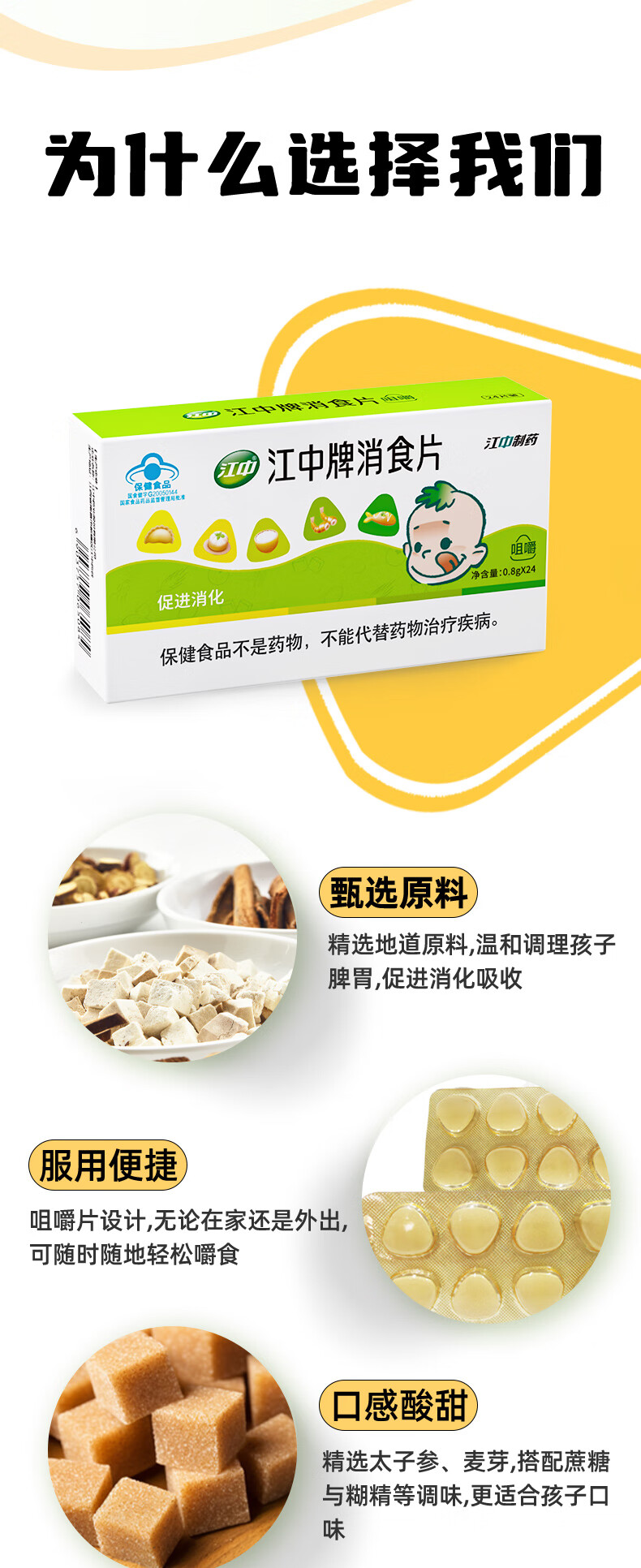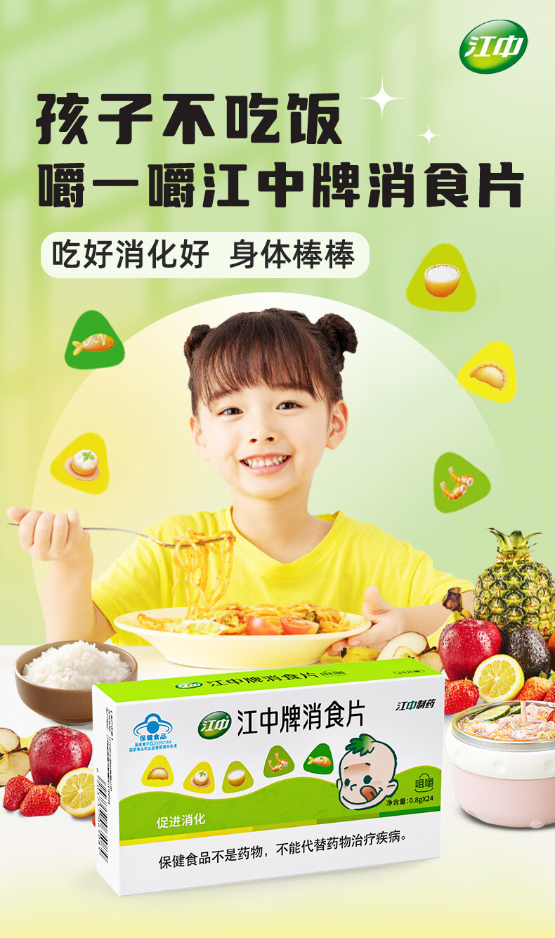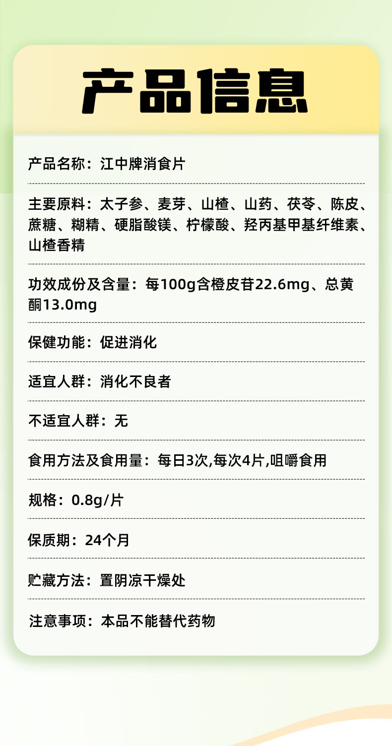 江中消食片0.8g*24片5盒装 促进消化儿童胃胀气积食欲不振成人消食片