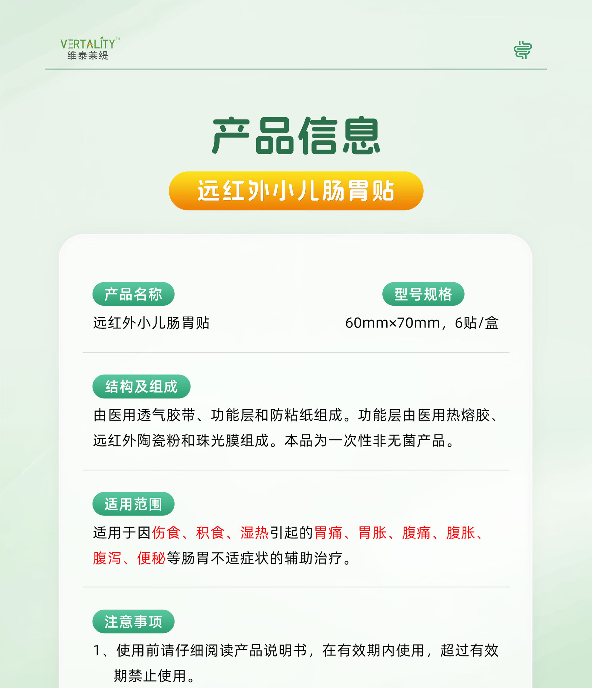 VERTALITY维泰莱缇远红外小儿肠胃贴小孩儿童消食贴积食内热消食化食 3盒装