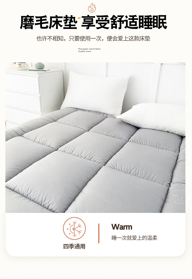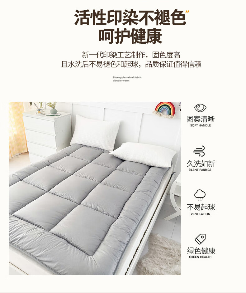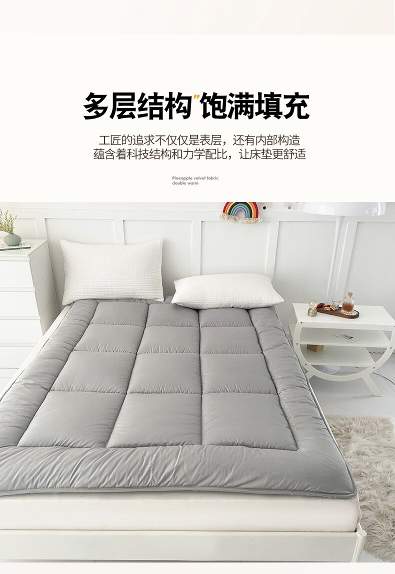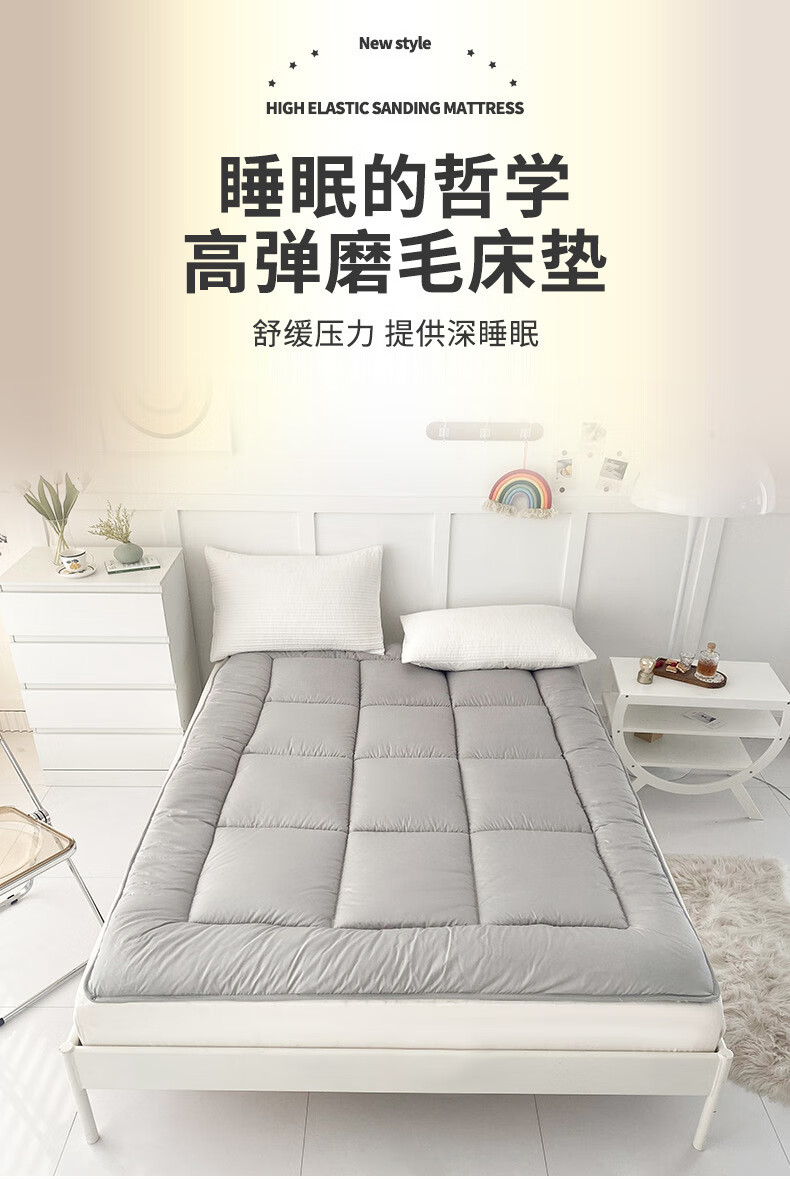 浪莎(langsha)亲肤磨毛床垫褥子铺底床褥被褥垫被软垫床垫子加厚单双人防滑睡垫 灰色 0.9m