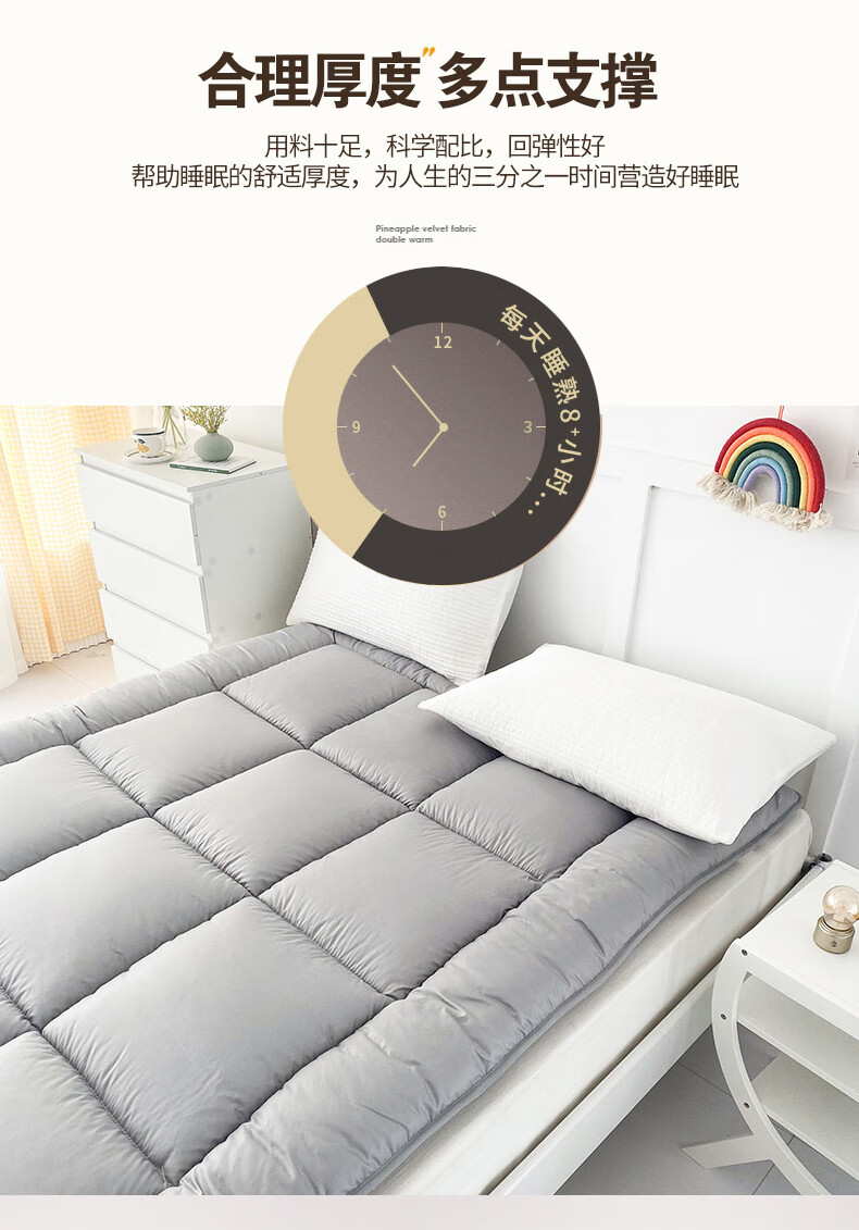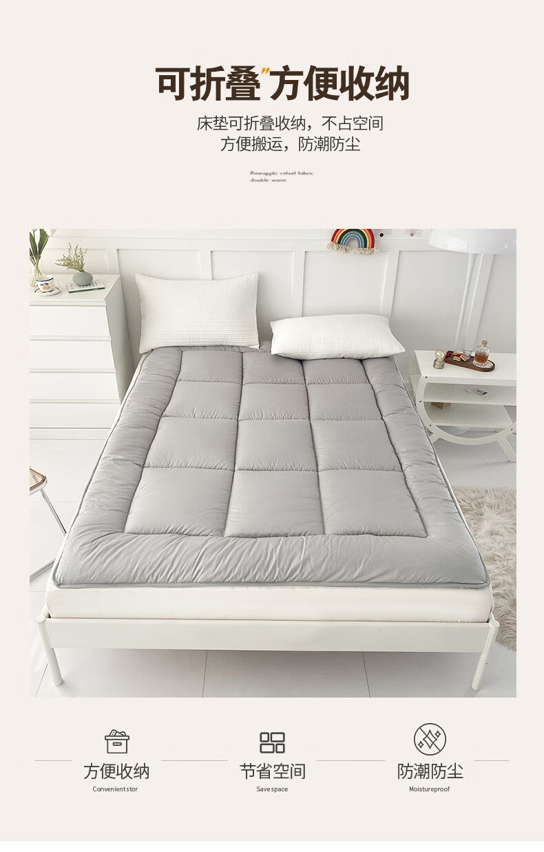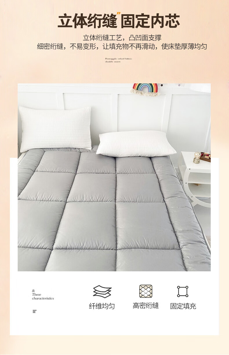 浪莎(langsha)亲肤磨毛床垫褥子铺底床褥被褥垫被软垫床垫子加厚单双人防滑睡垫 灰色 0.9m