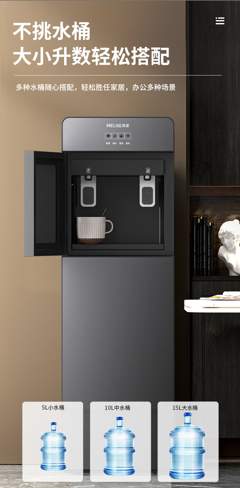 美菱(MeiLing)饮水机下置式家用立式温热型快速加热下置水桶饮水器MY-L807