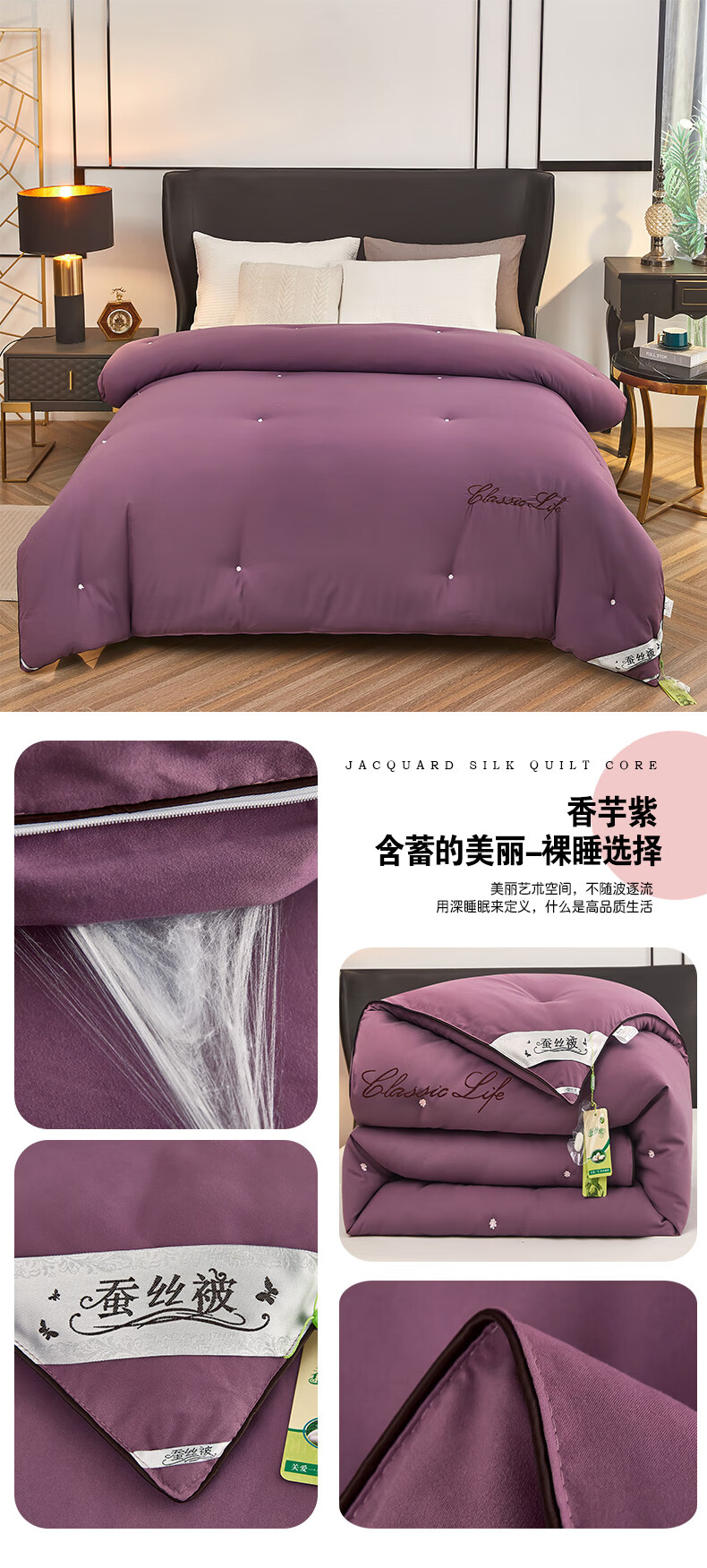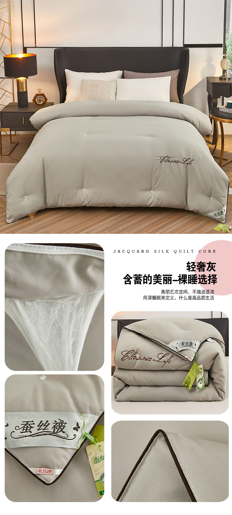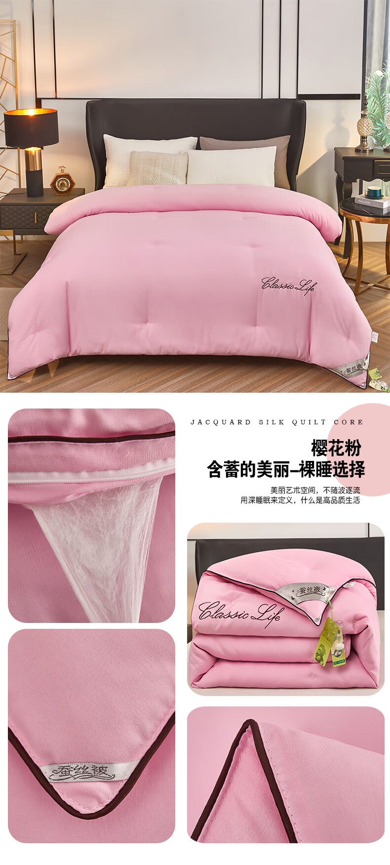 恒源祥蚕丝被100桑蚕丝盖被春秋被芯8斤10斤冬被子四季通用二合一子母被 豆沙 150x200cm 3斤