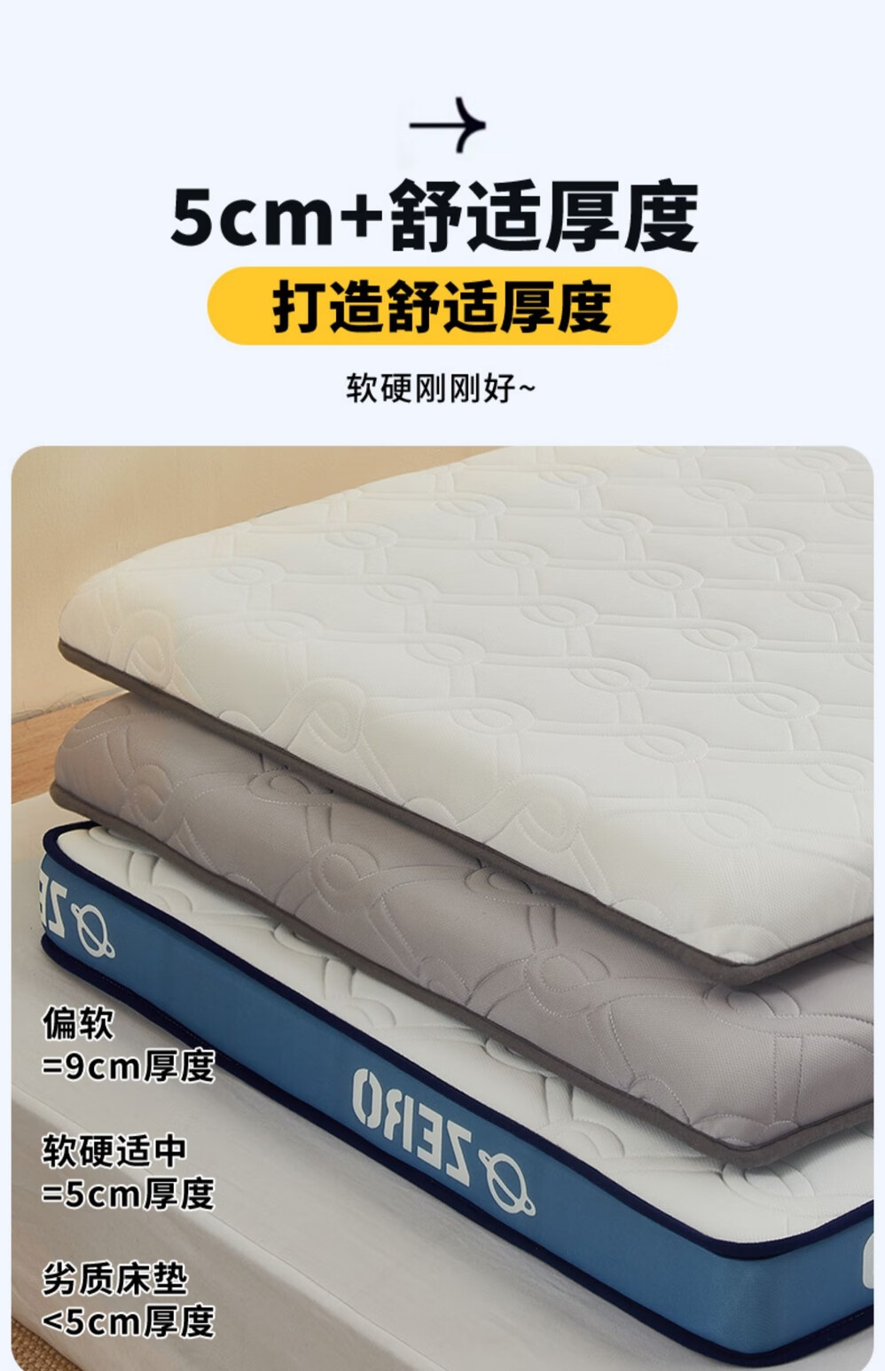 高睿家用床垫软垫乳胶租房专用打地铺地垫学生宿舍单人海绵垫可折叠gr 【基础款】简约白-厚约5cm 90x190cm-学生宿舍