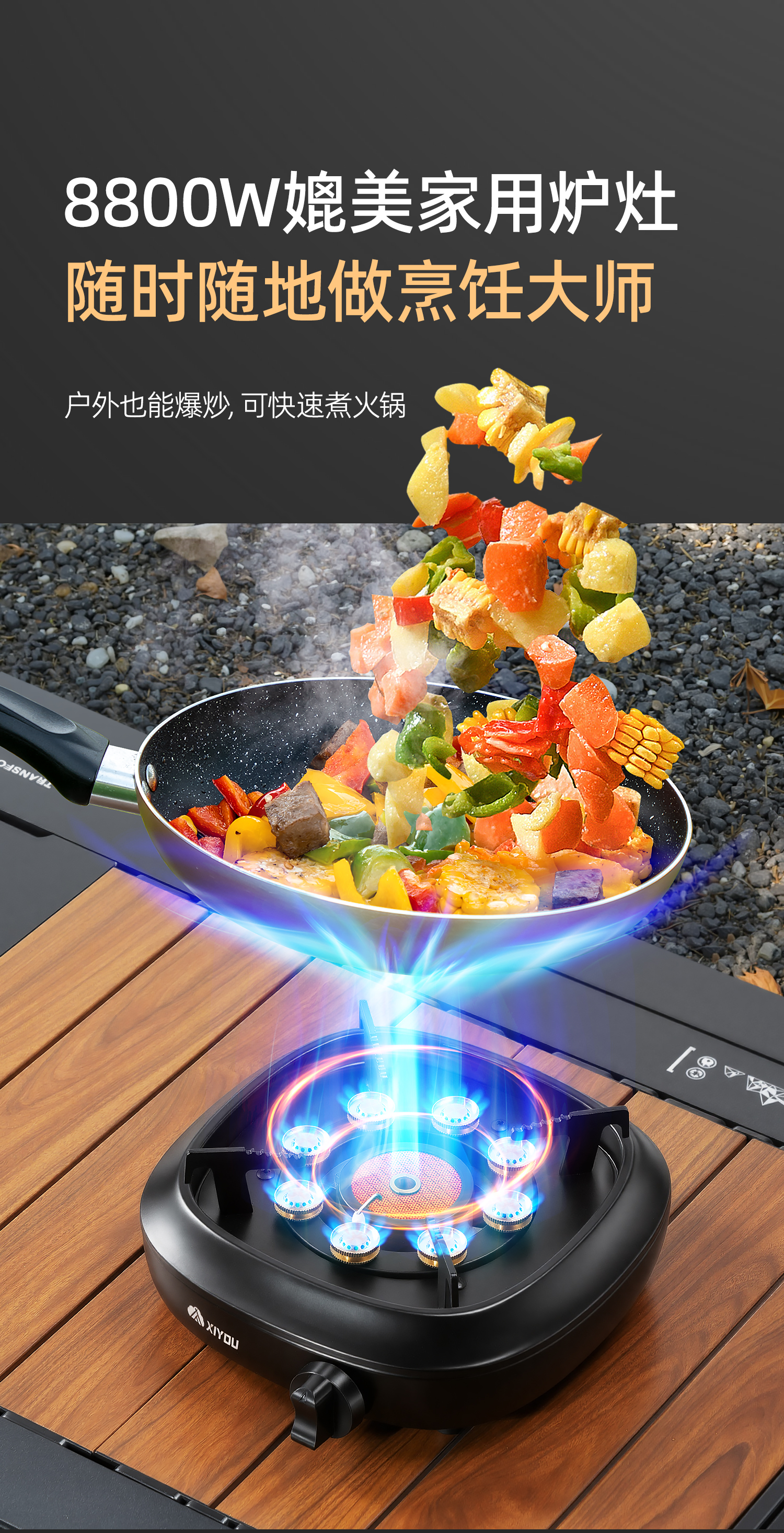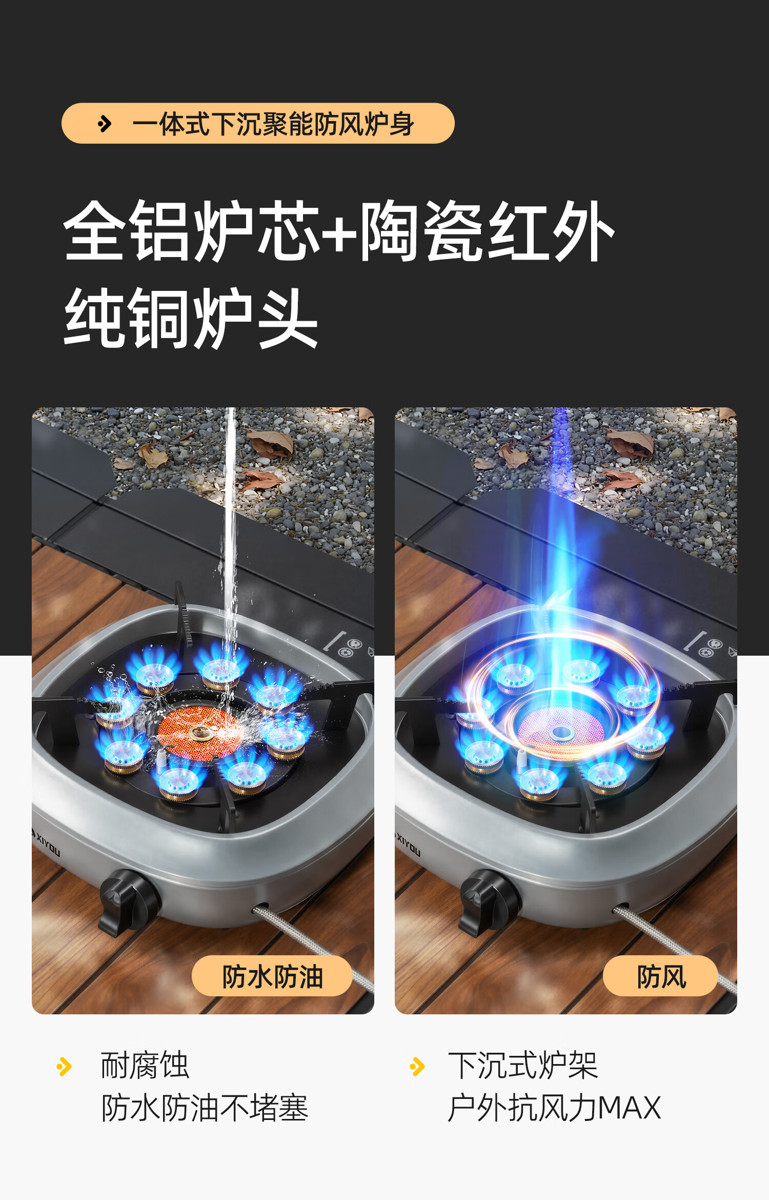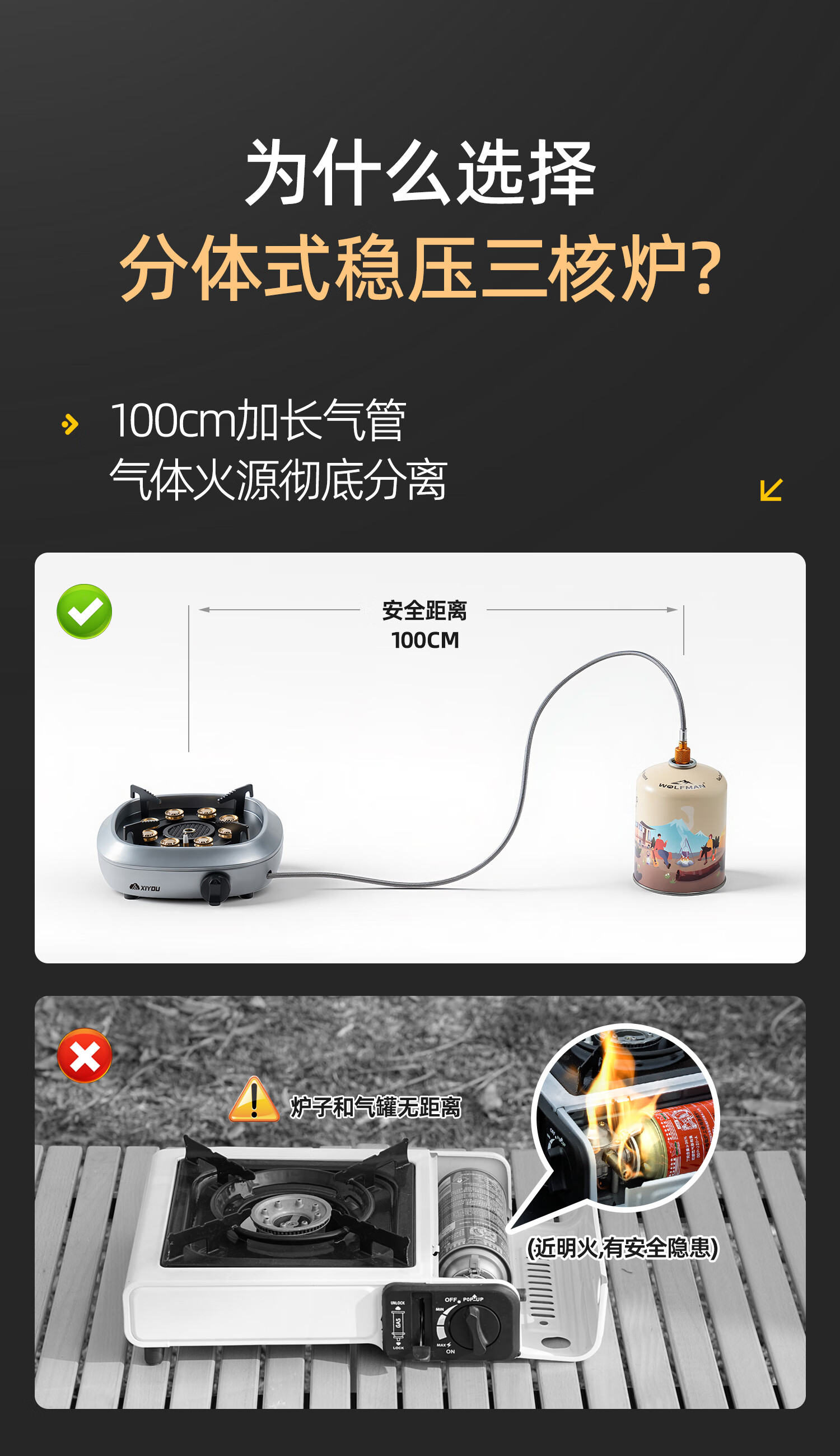 嘻由分体式卡式炉户外新款防爆燃气灶便捷煮茶露营家用卡磁炉全套炉具 星空黑【8800W大师级分体炉】+4瓶卡式气+露营三件套 【自带内置稳压设计/澎湃三核分焰技术】