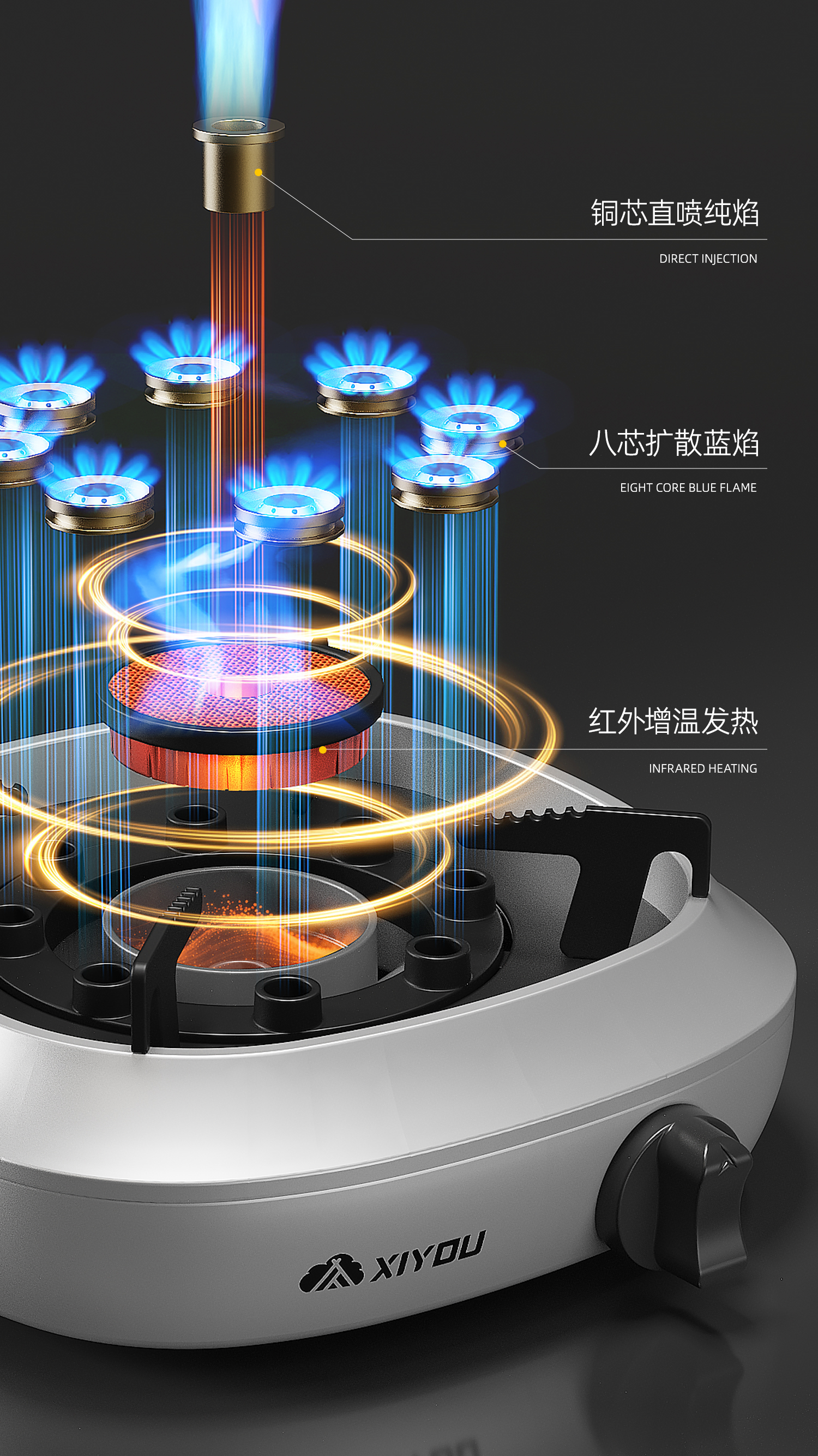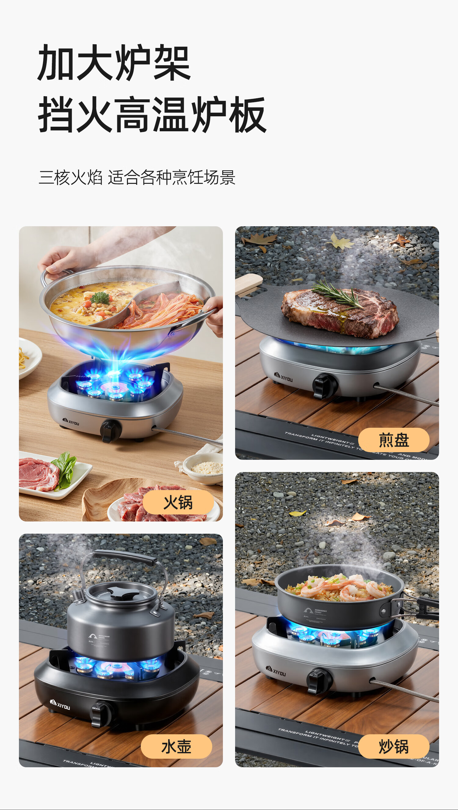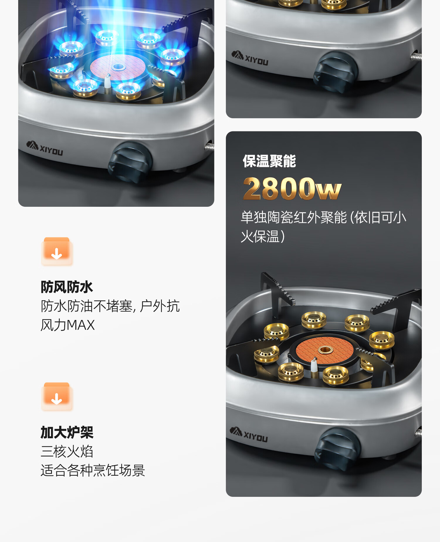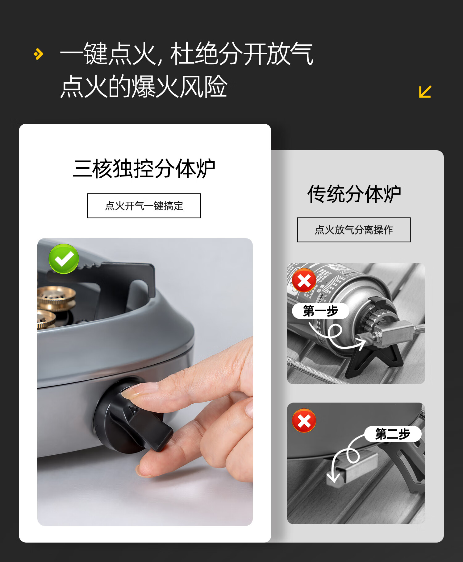 嘻由分体式卡式炉户外新款防爆燃气灶便捷煮茶露营家用卡磁炉全套炉具 星空黑【8800W大师级分体炉】+4瓶卡式气+露营三件套 【自带内置稳压设计/澎湃三核分焰技术】