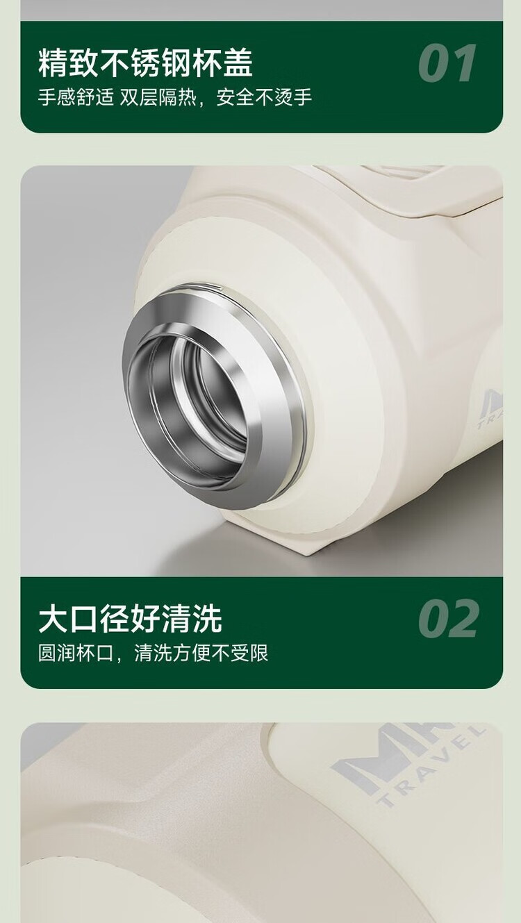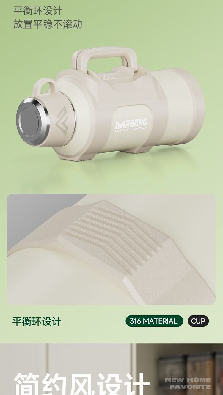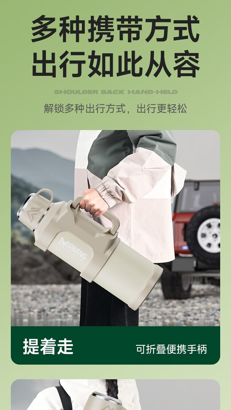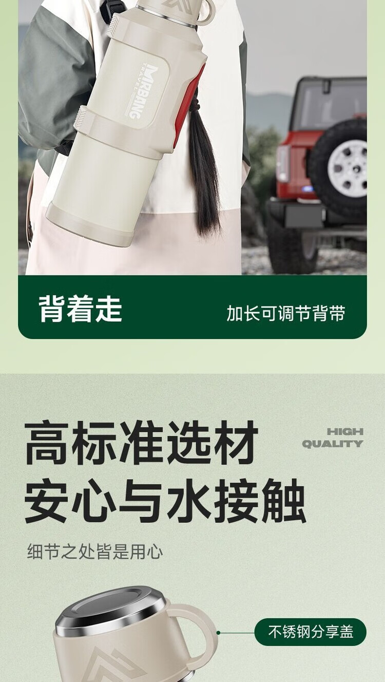 简漾超大316保温水壶大容量不锈钢保温杯家用便携车载户外热水瓶旅行 白色 1.3升赠送背带