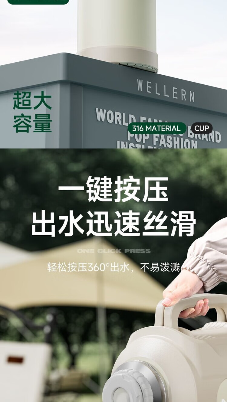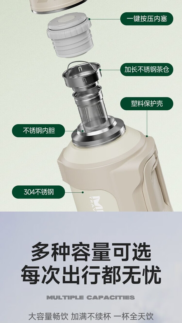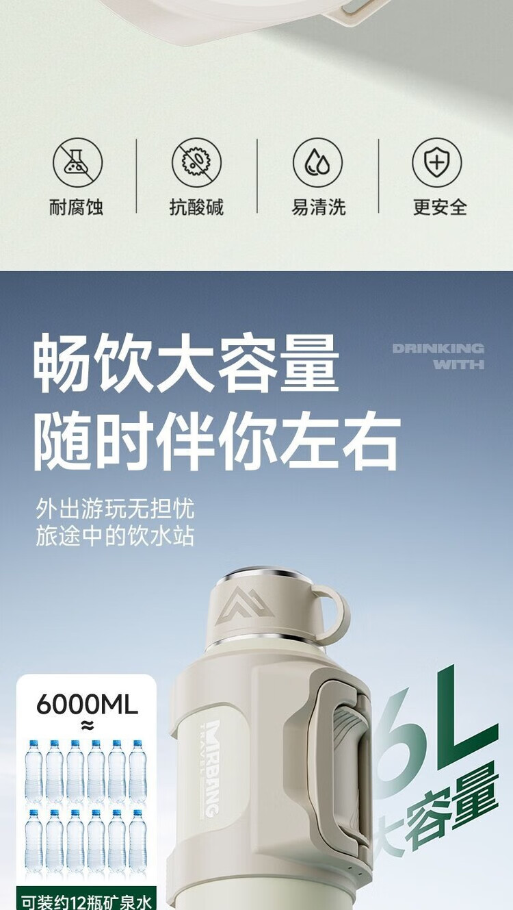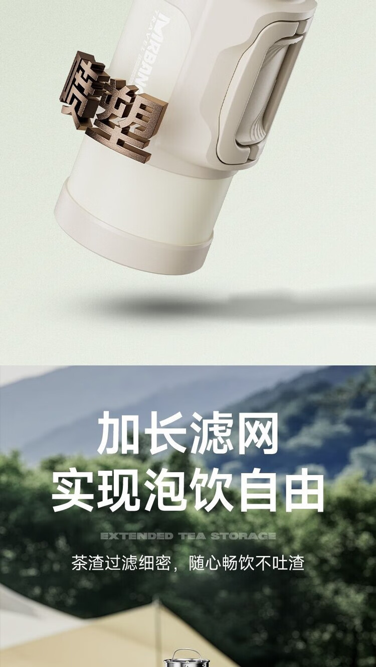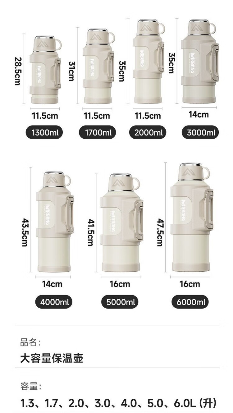 简漾超大316保温水壶大容量不锈钢保温杯家用便携车载户外热水瓶旅行 白色 1.3升赠送背带