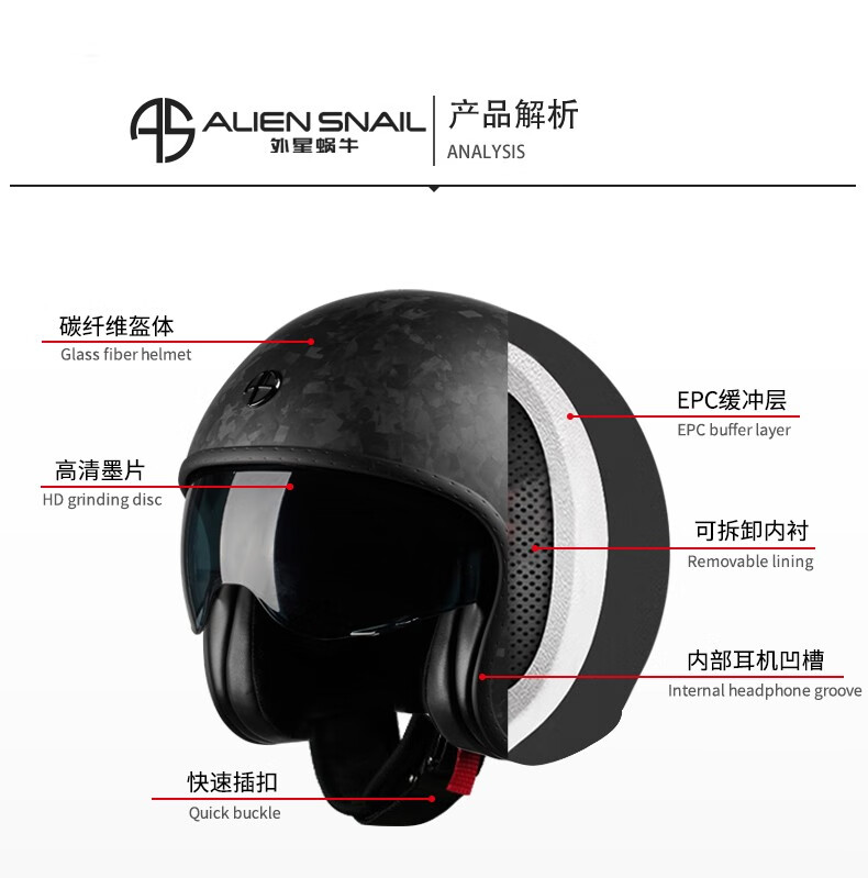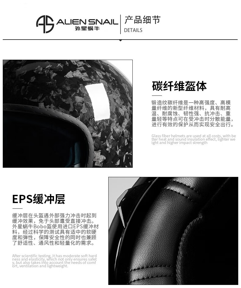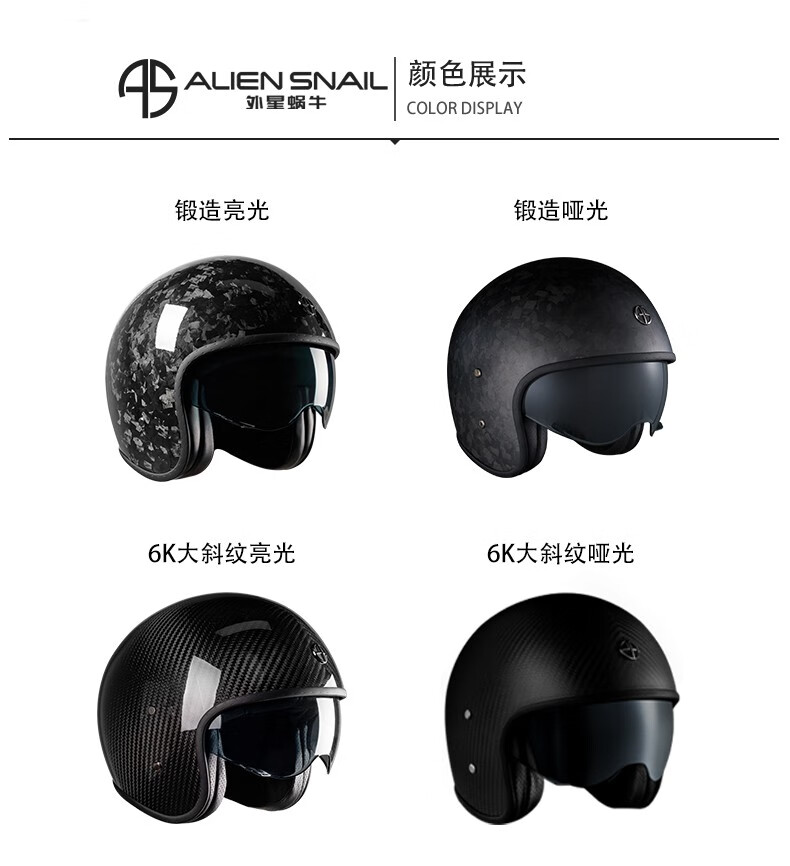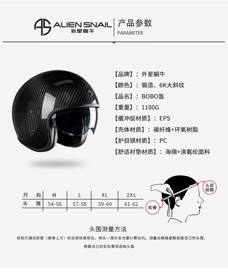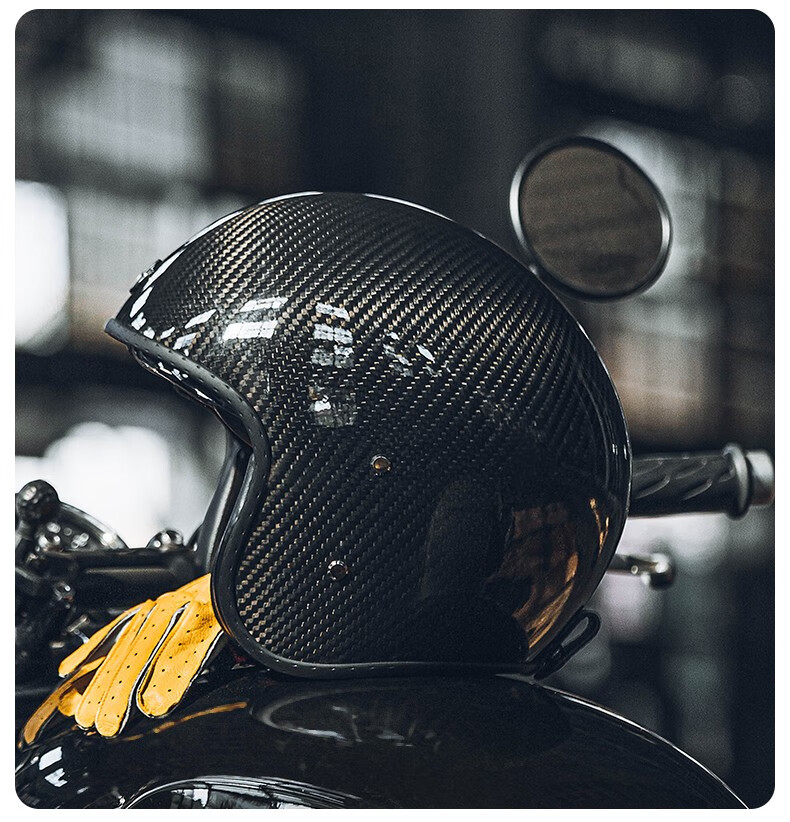外星蜗牛复古头盔摩托车碳纤维3/4盔夏季机车男骑行女踏板巡航安全帽 锻造纹路-哑光 2XL