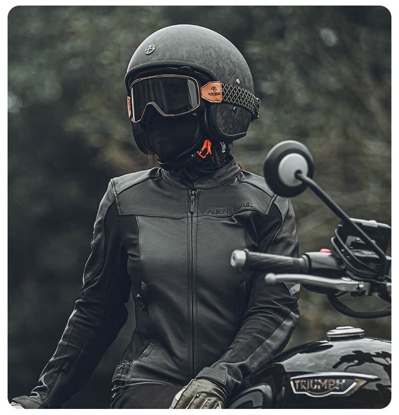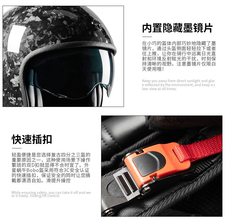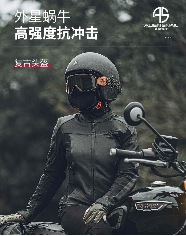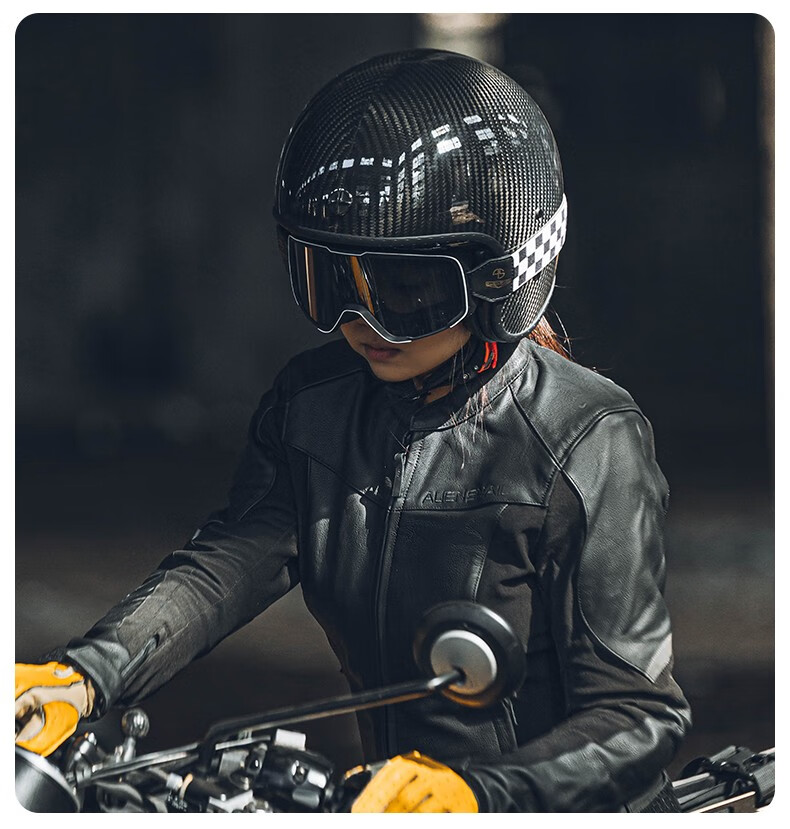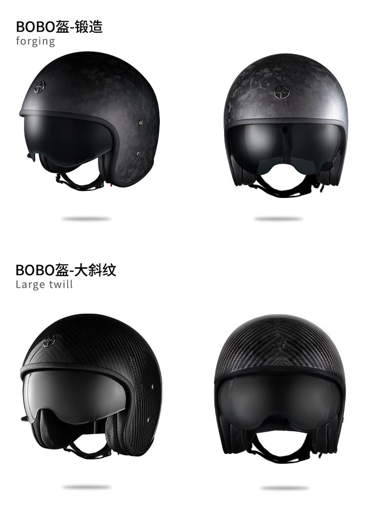 外星蜗牛复古头盔摩托车碳纤维3/4盔夏季机车男骑行女踏板巡航安全帽 锻造纹路-哑光 2XL