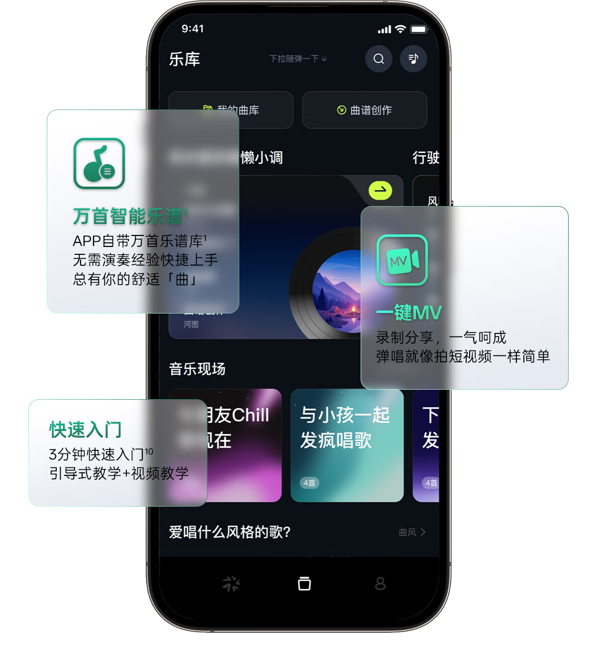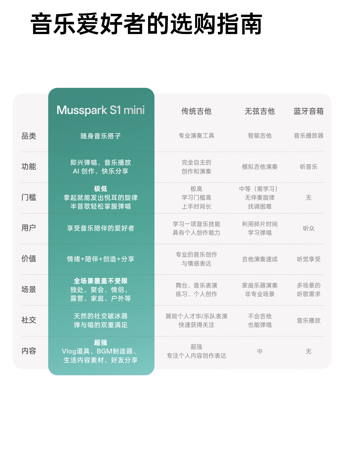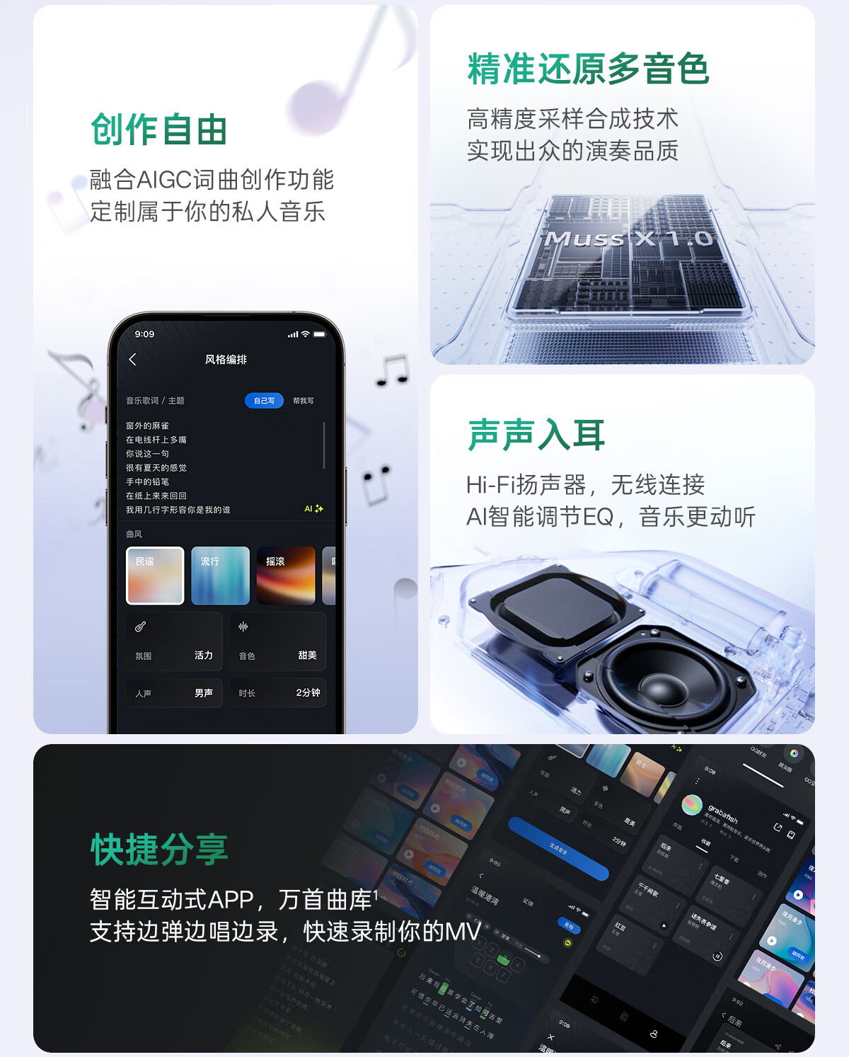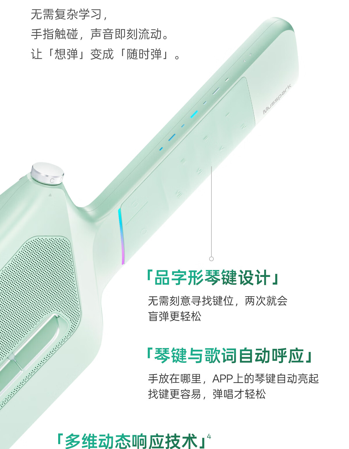 Musspark智能AI随弹吉他电子自动挡初学无弦便携弹唱小吉他 子夜黑