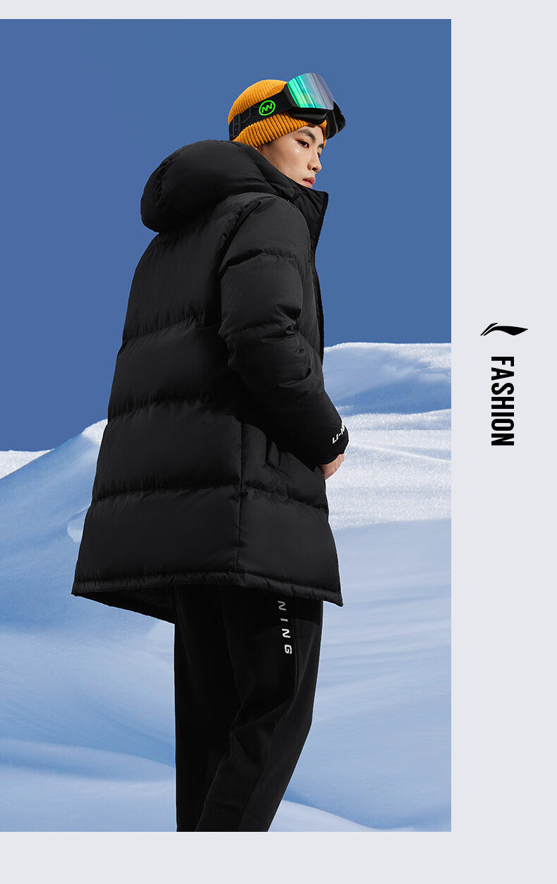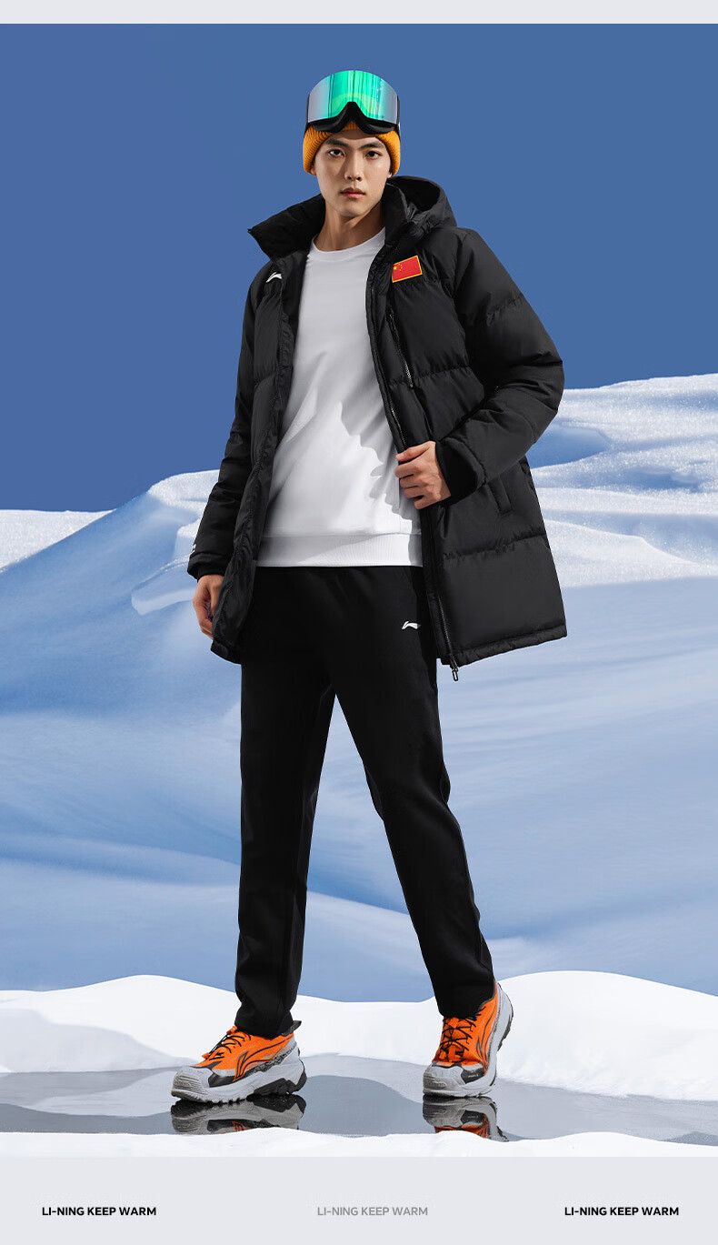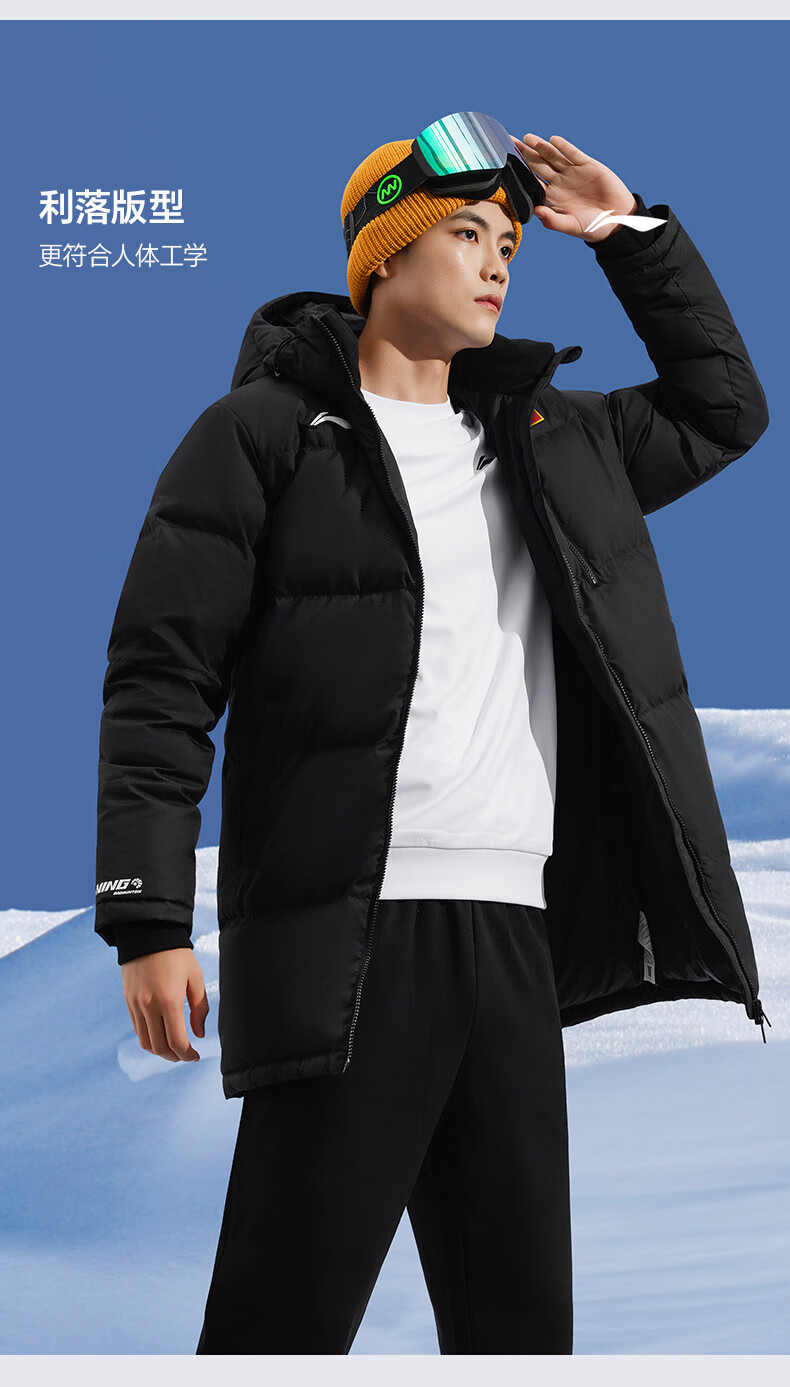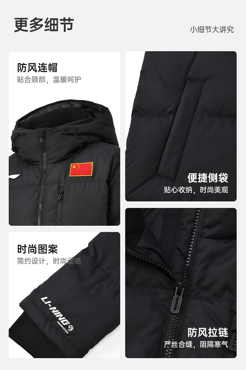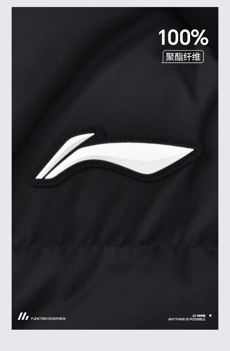 李宁(LI-NING)羽毛球服男女同款羽绒服中长款白鸭绒保暖舒适耐寒外套 黑色 XL