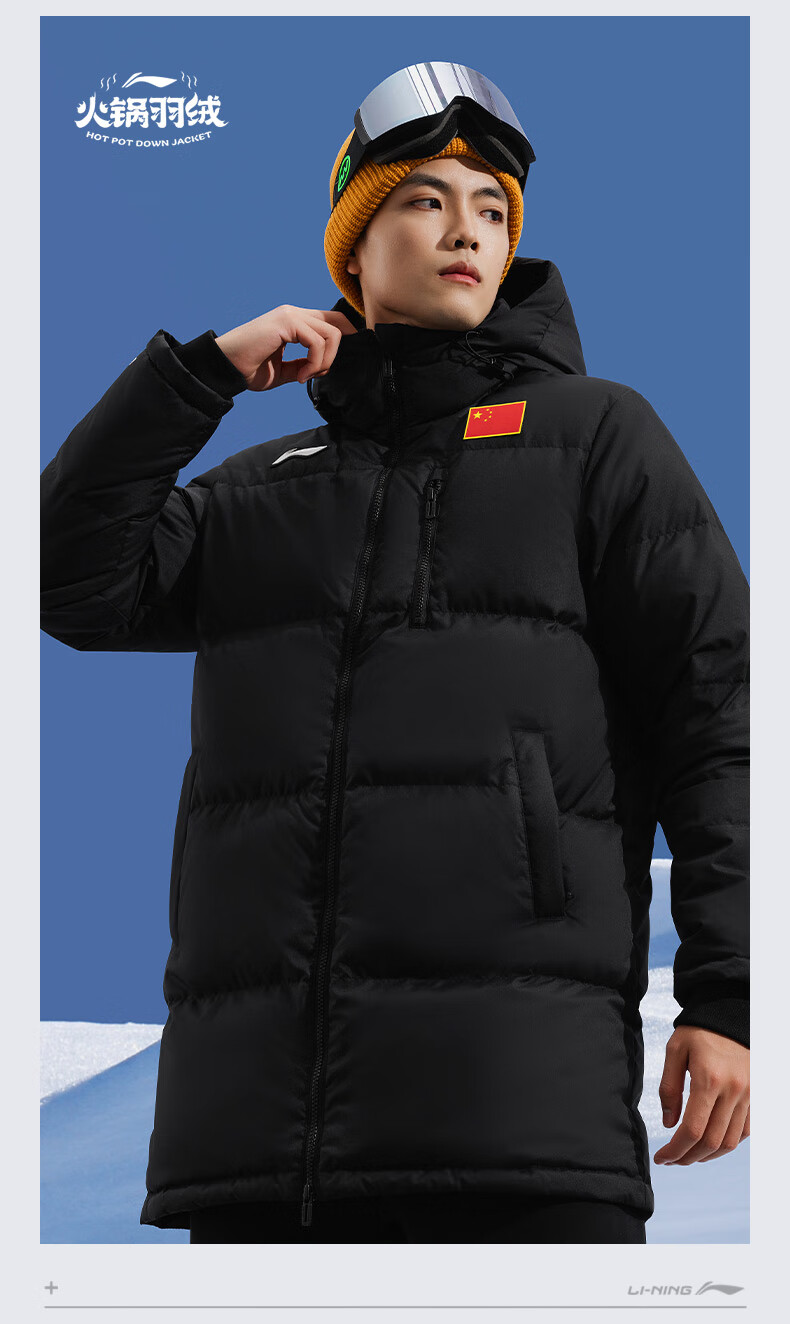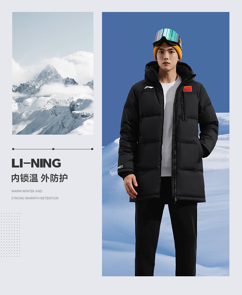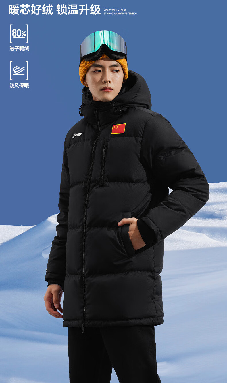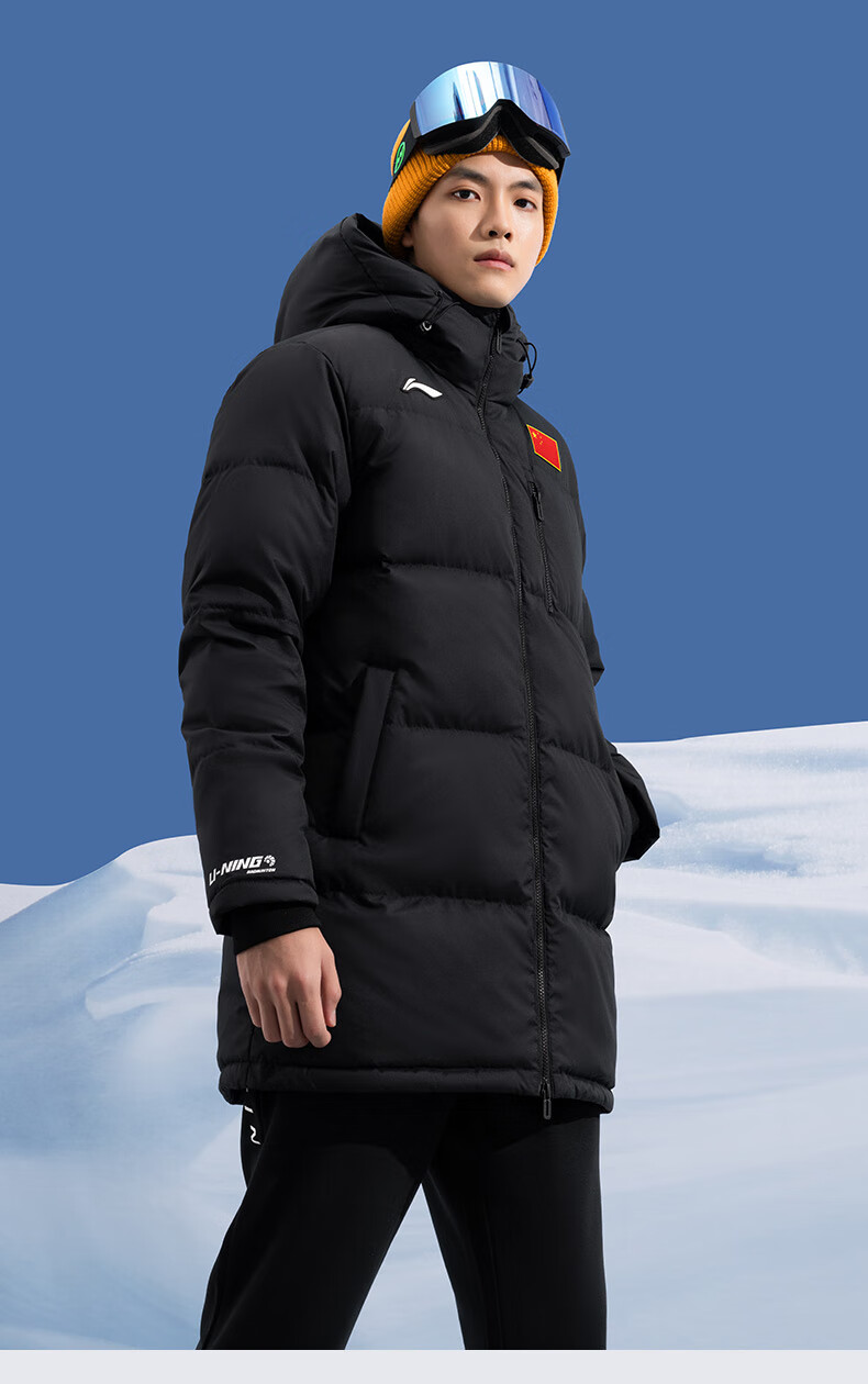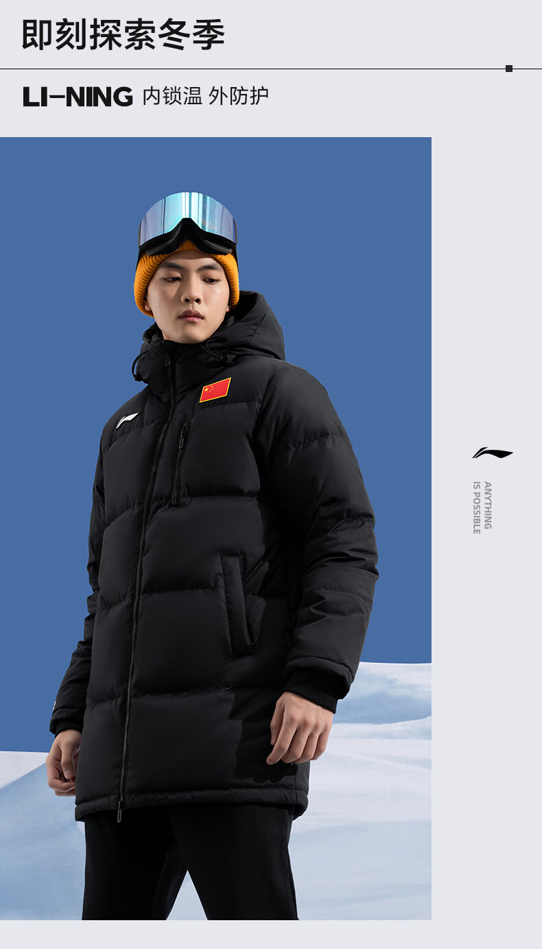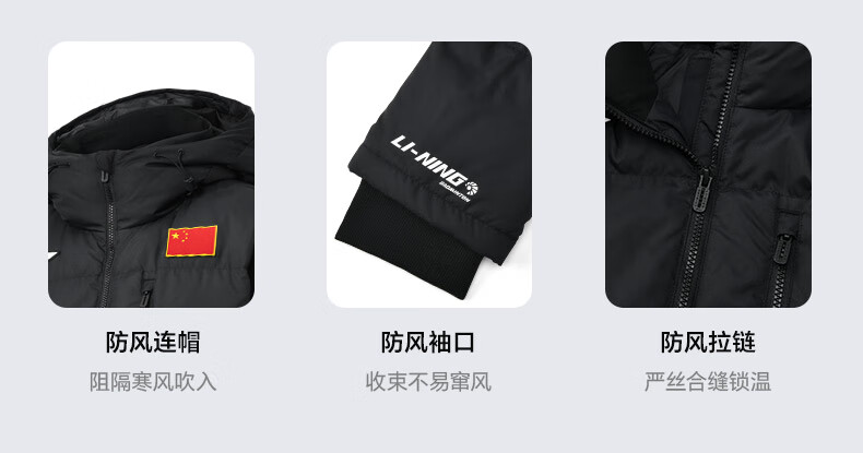 李宁(LI-NING)羽毛球服男女同款羽绒服中长款白鸭绒保暖舒适耐寒外套 黑色 XL