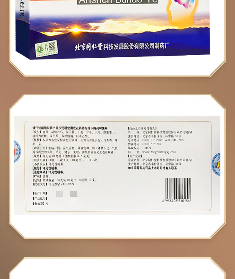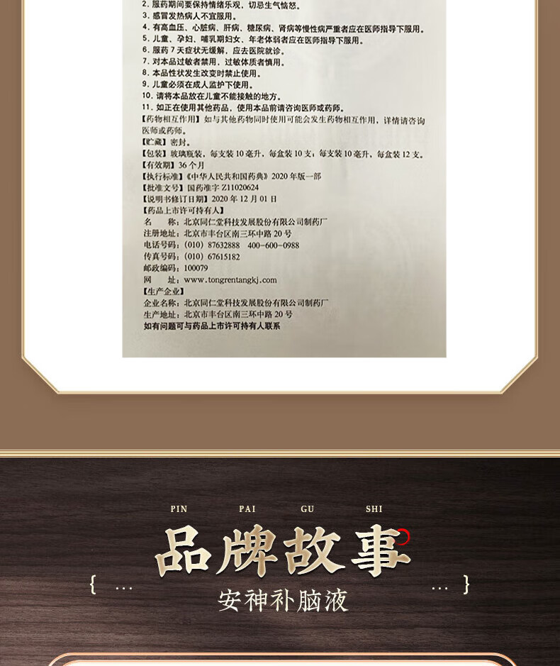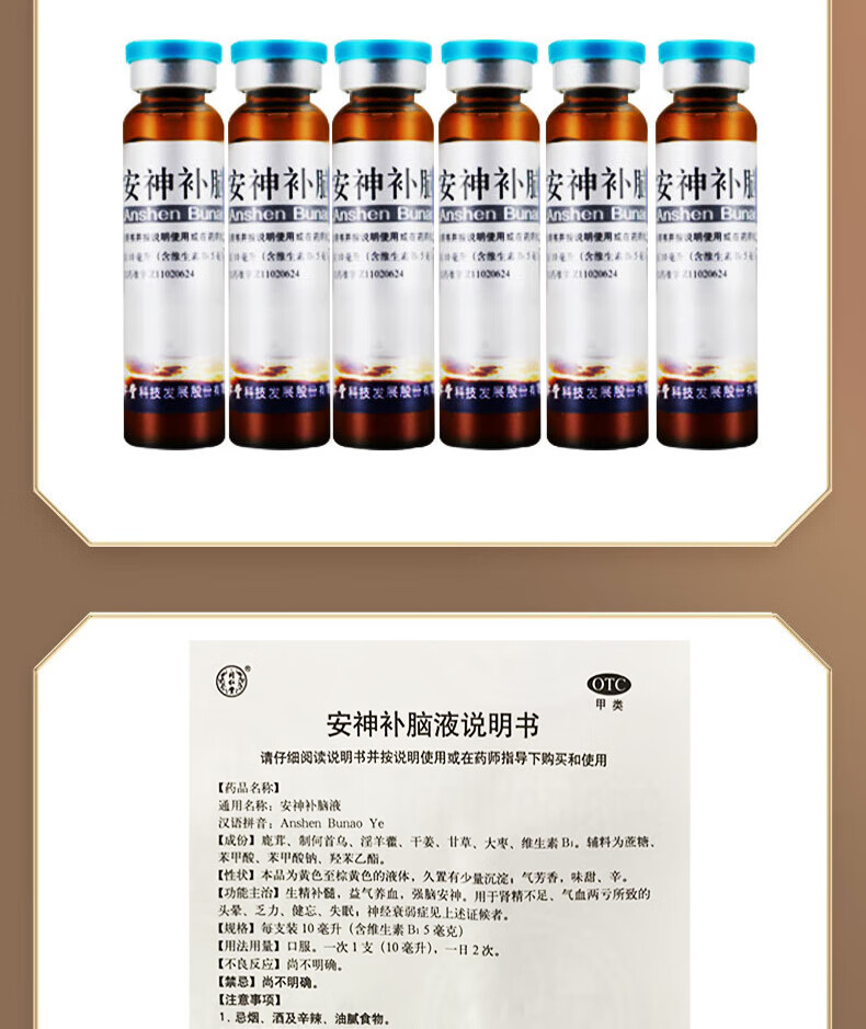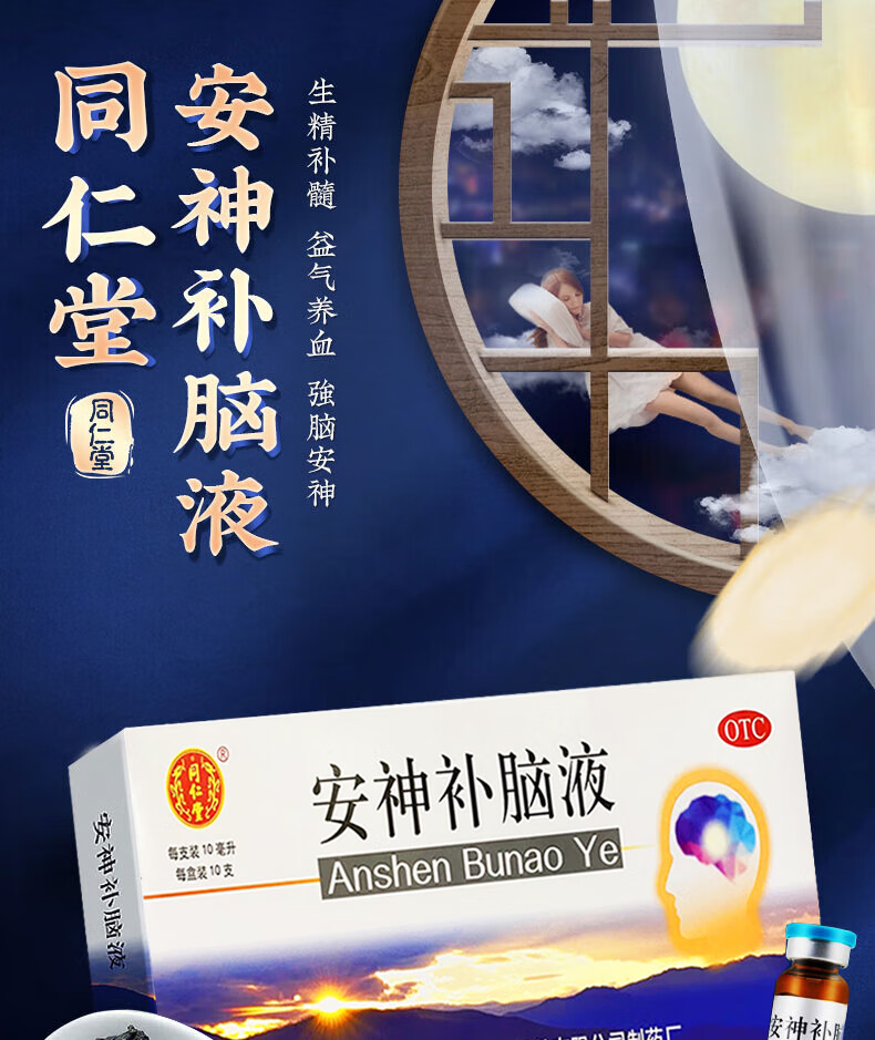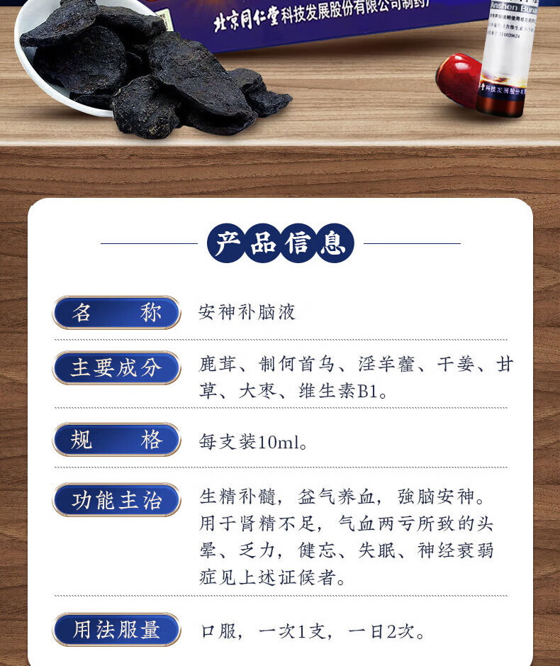 同仁堂 安神补脑液 10ml*10支 改善睡眠记忆减退 用于头晕乏力 健忘失眠 神经衰弱