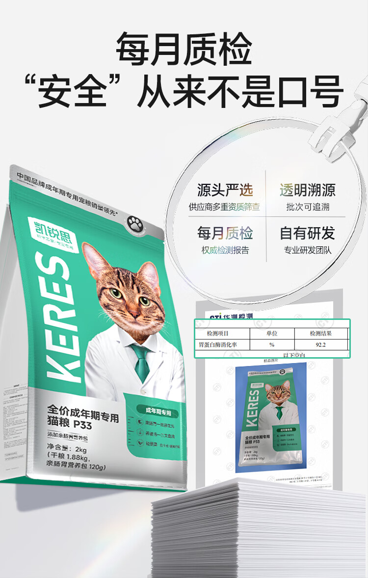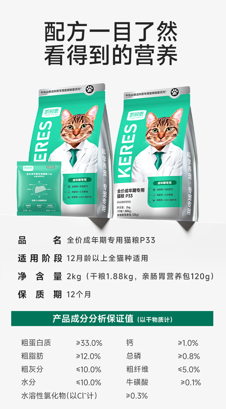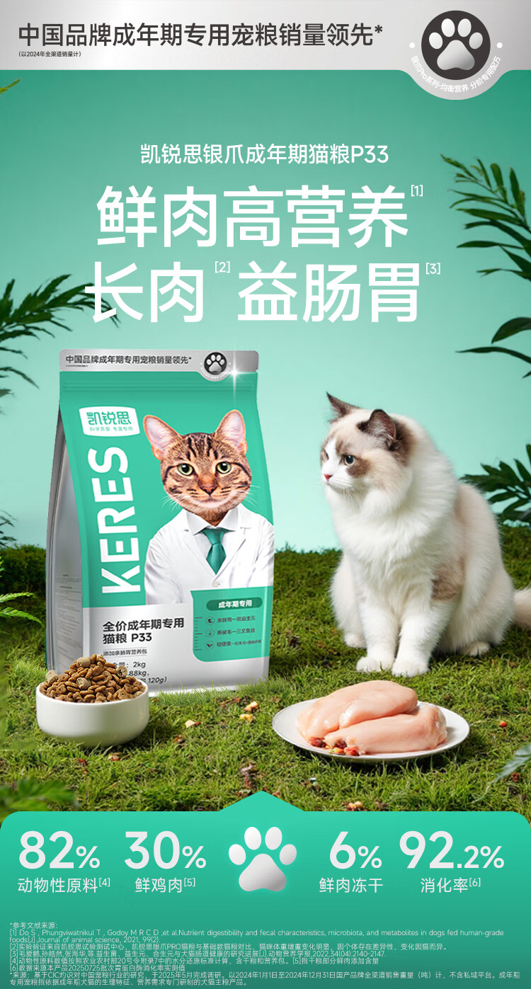 凯锐思银爪P33高蛋白全价猫粮养护肠胃低敏无谷鲜肉冻干双拼成猫粮20斤