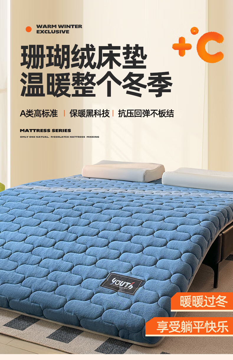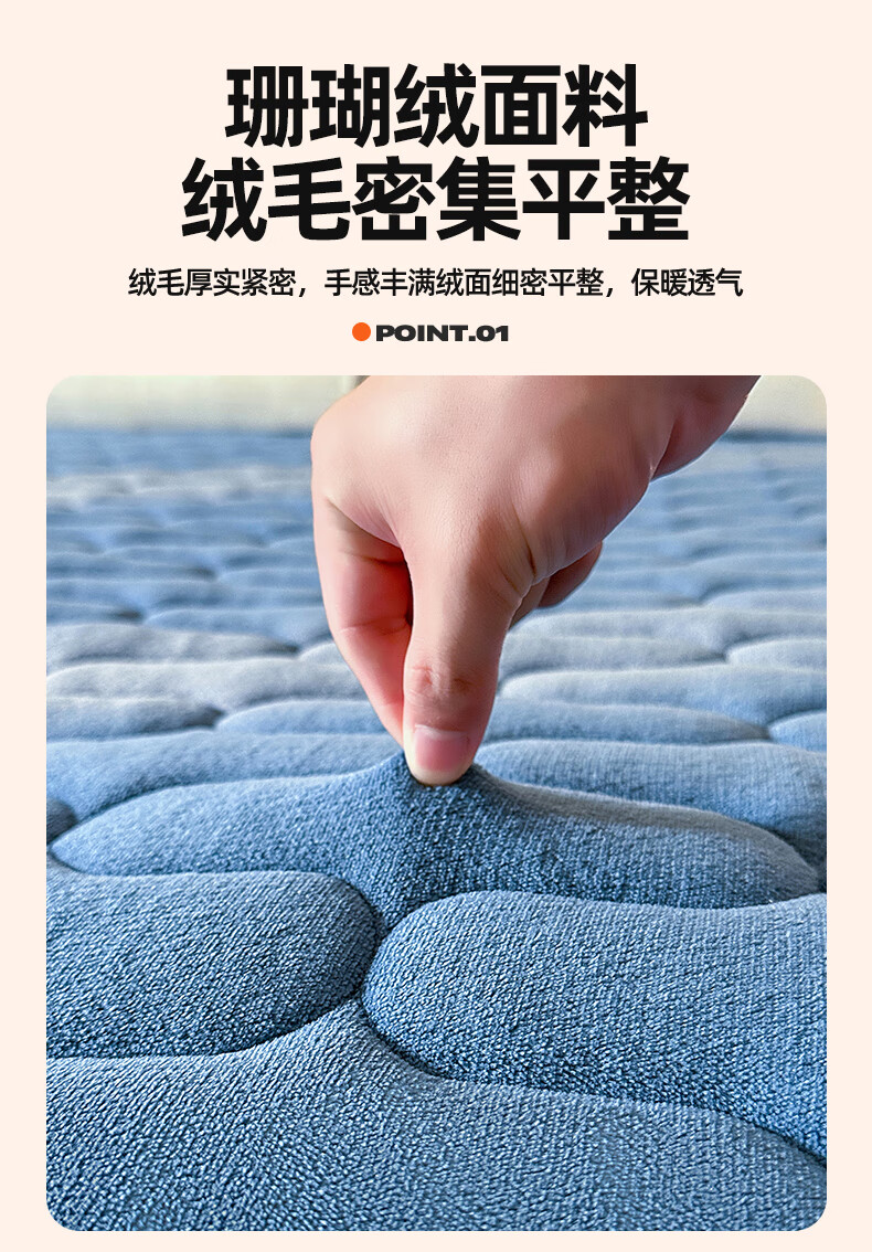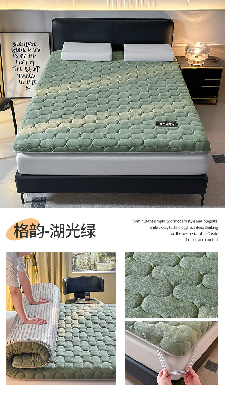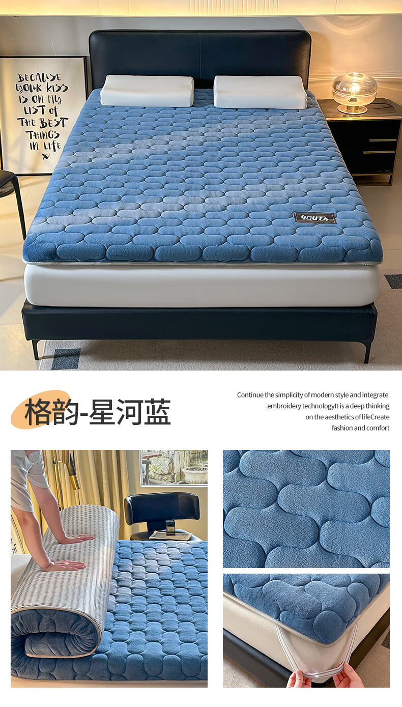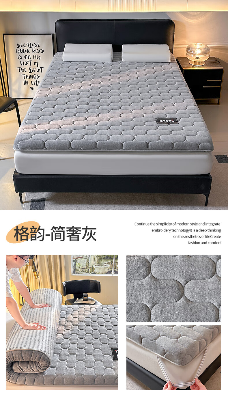 浪莎(langsha)a类床垫褥子珊瑚绒秋冬季加绒加厚床垫1.8米x2米垫子床垫床上用品 格韵-简奢灰-厚度5cm 0.8*1.9
