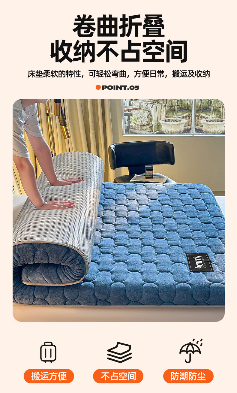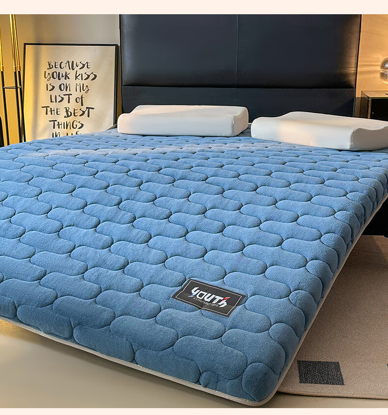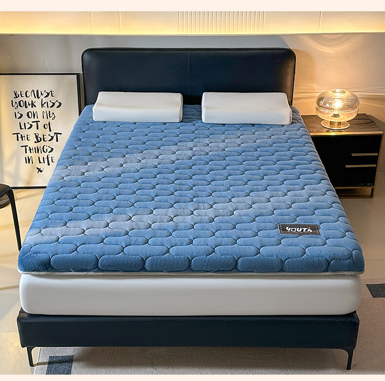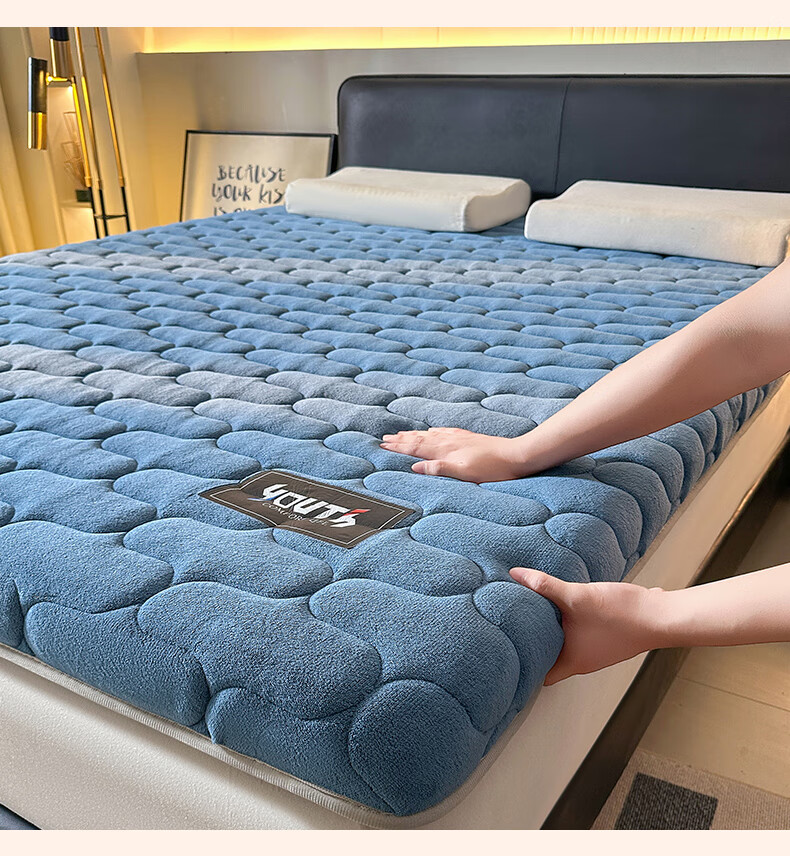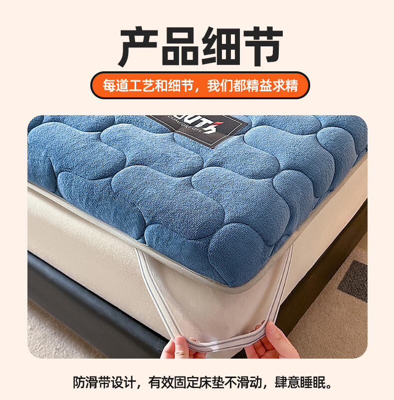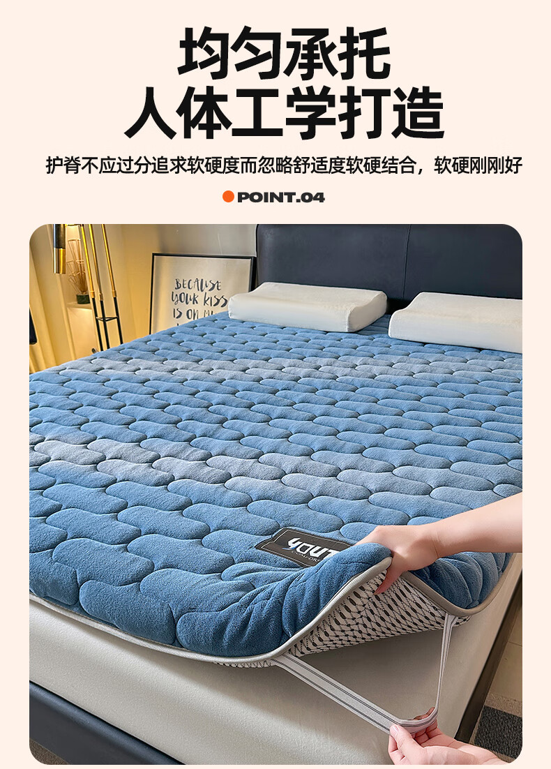 浪莎(langsha)a类床垫褥子珊瑚绒秋冬季加绒加厚床垫1.8米x2米垫子床垫床上用品 格韵-简奢灰-厚度5cm 0.8*1.9