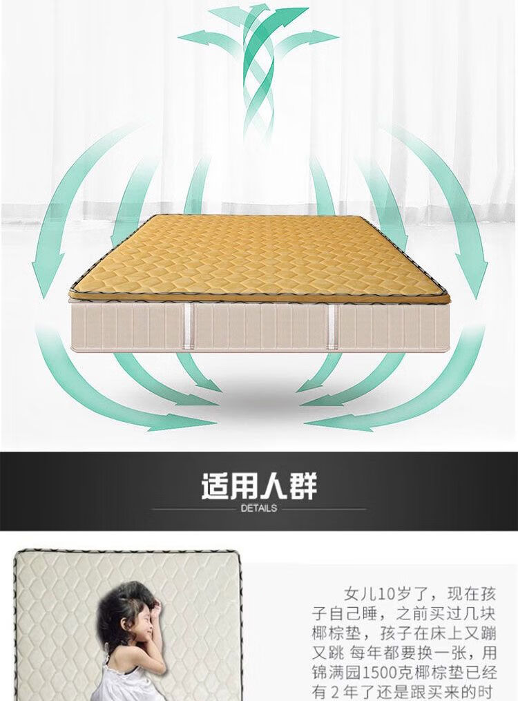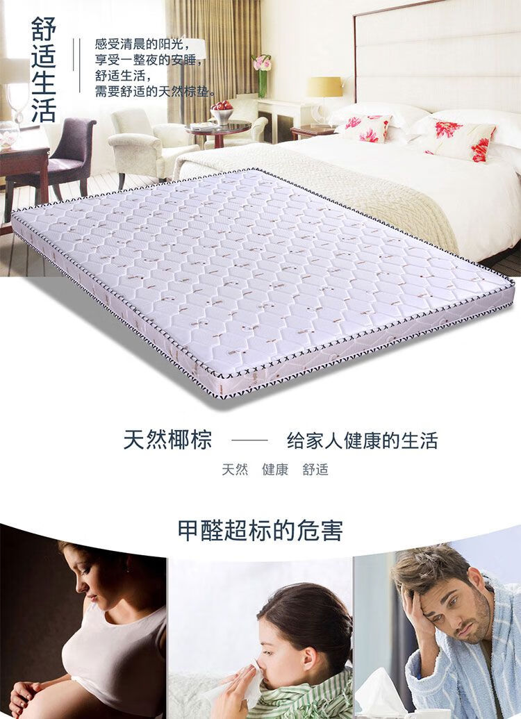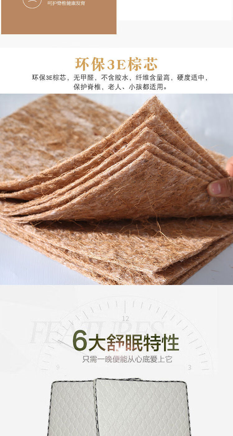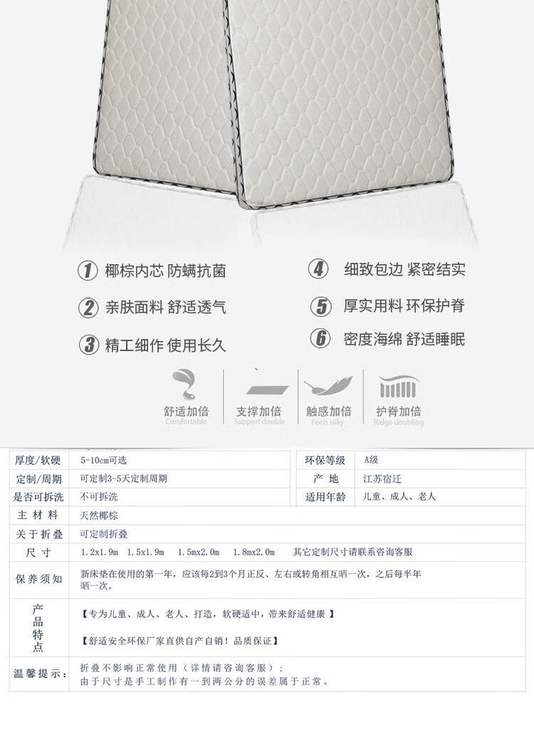 弘星隆环保椰棕床垫双人棕垫1.8m偏硬1.5m加厚棕榈经济定做0.9m折叠床垫 一体款 5CM【针织米白】 800MM*1900MM