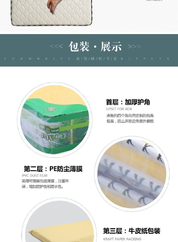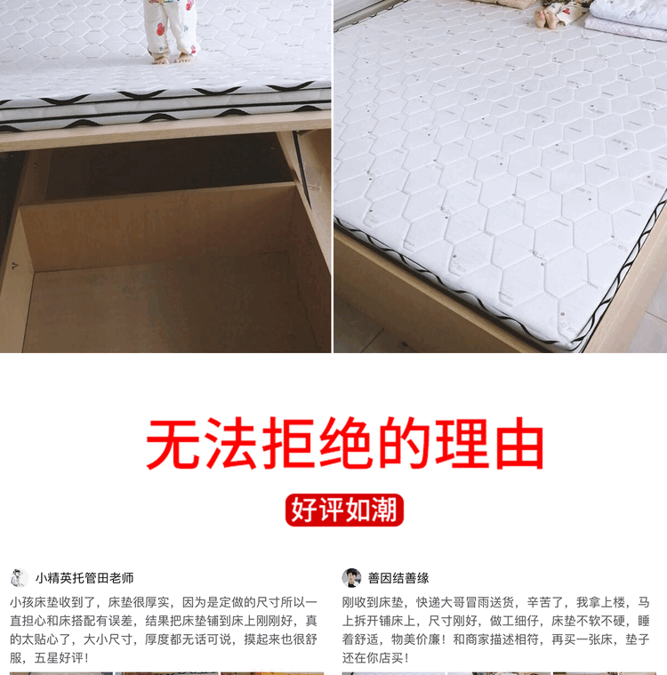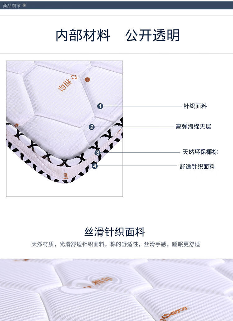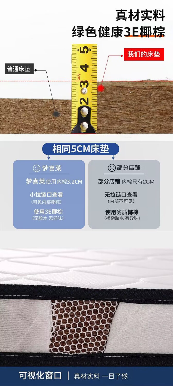 弘星隆环保椰棕床垫双人棕垫1.8m偏硬1.5m加厚棕榈经济定做0.9m折叠床垫 一体款 5CM【针织米白】 800MM*1900MM