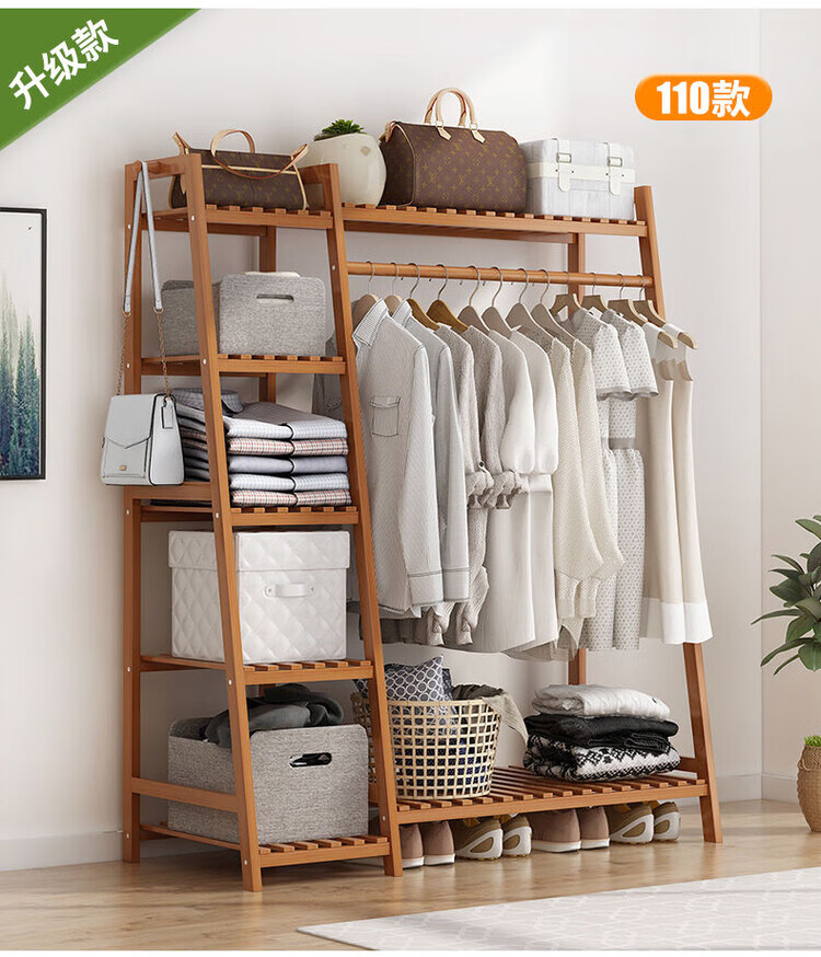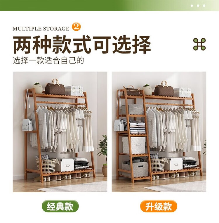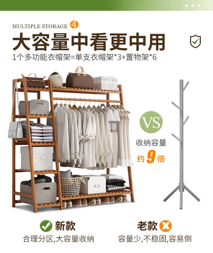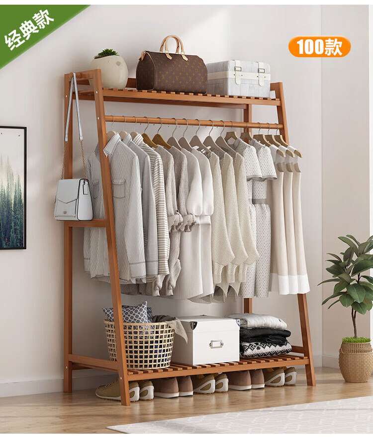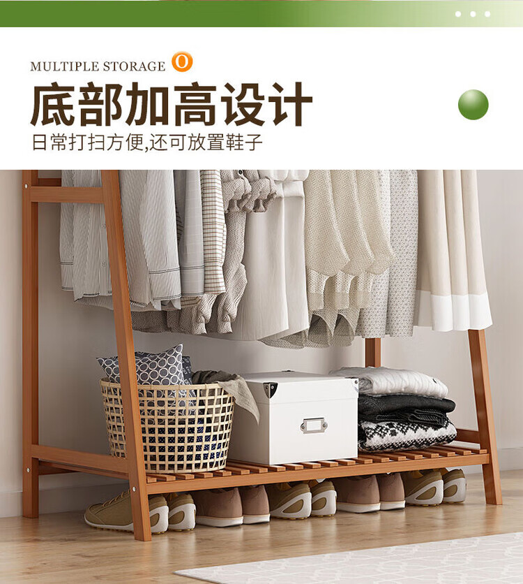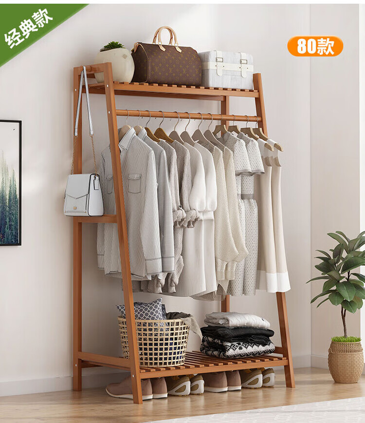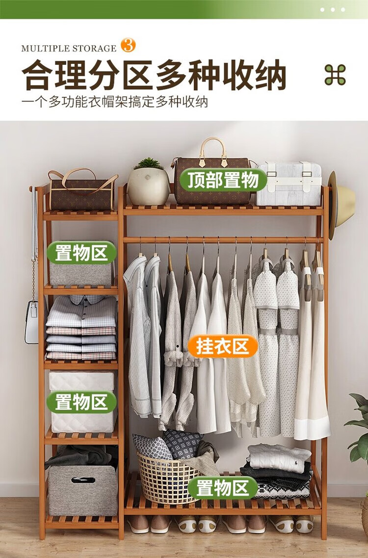 海诗圣堡简易房间落地家用挂衣架立式衣柜卧室竹子衣帽架收纳衣服置物架 简约-50款