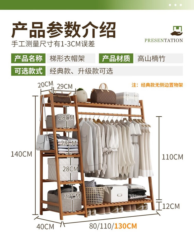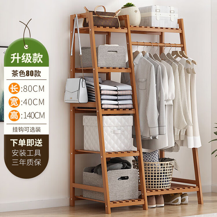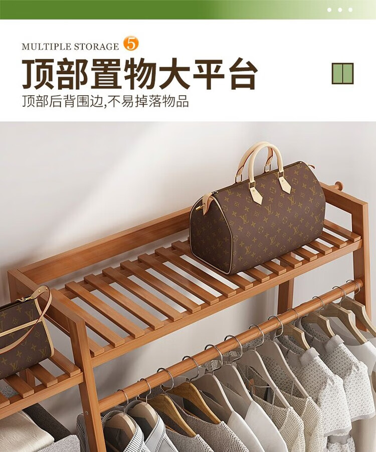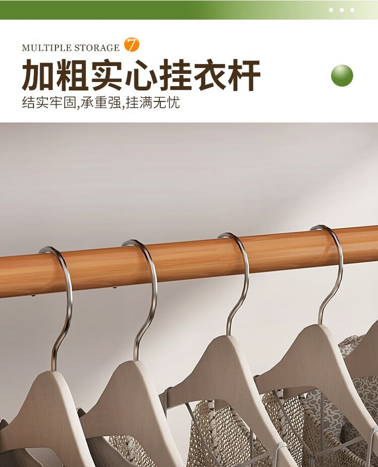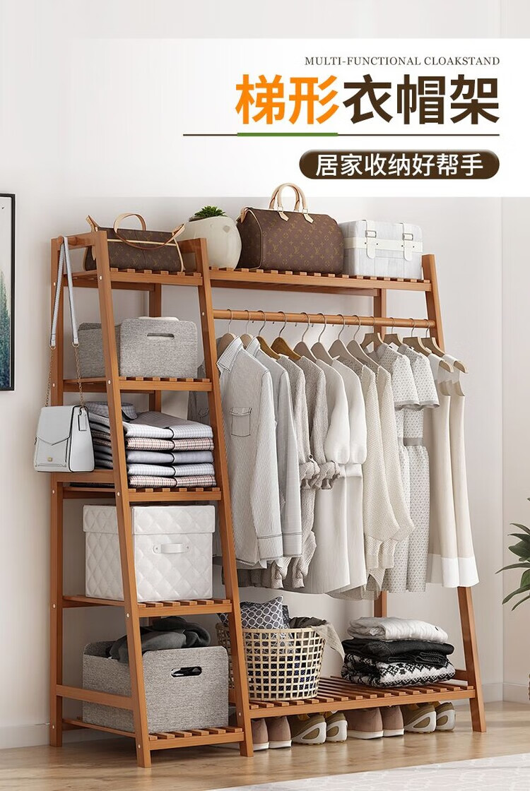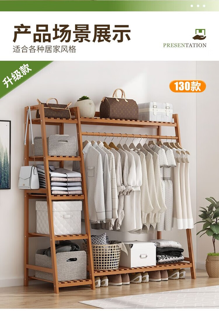 海诗圣堡简易房间落地家用挂衣架立式衣柜卧室竹子衣帽架收纳衣服置物架 简约-50款