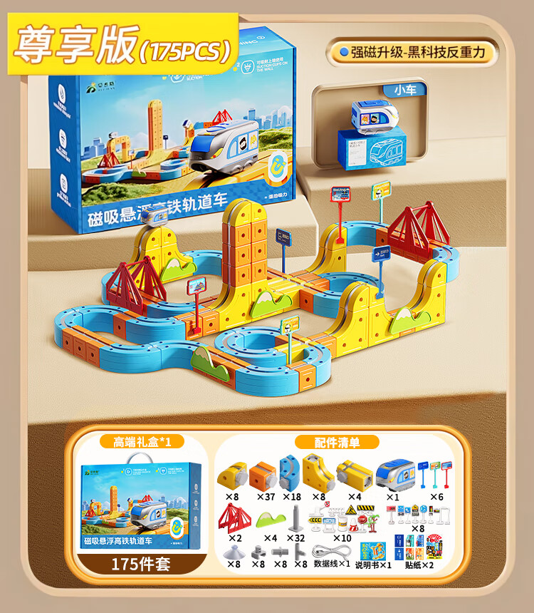 BCZHONG儿童玩具3-6-10岁男孩8-12高档生日礼物魔幻磁力轨道车玩具小火车 店长推荐【尊享版175pcs】磁力轨道车+高定礼盒 7-14男童益智磁吸反重力拼装电动积木女孩圣诞元旦新年