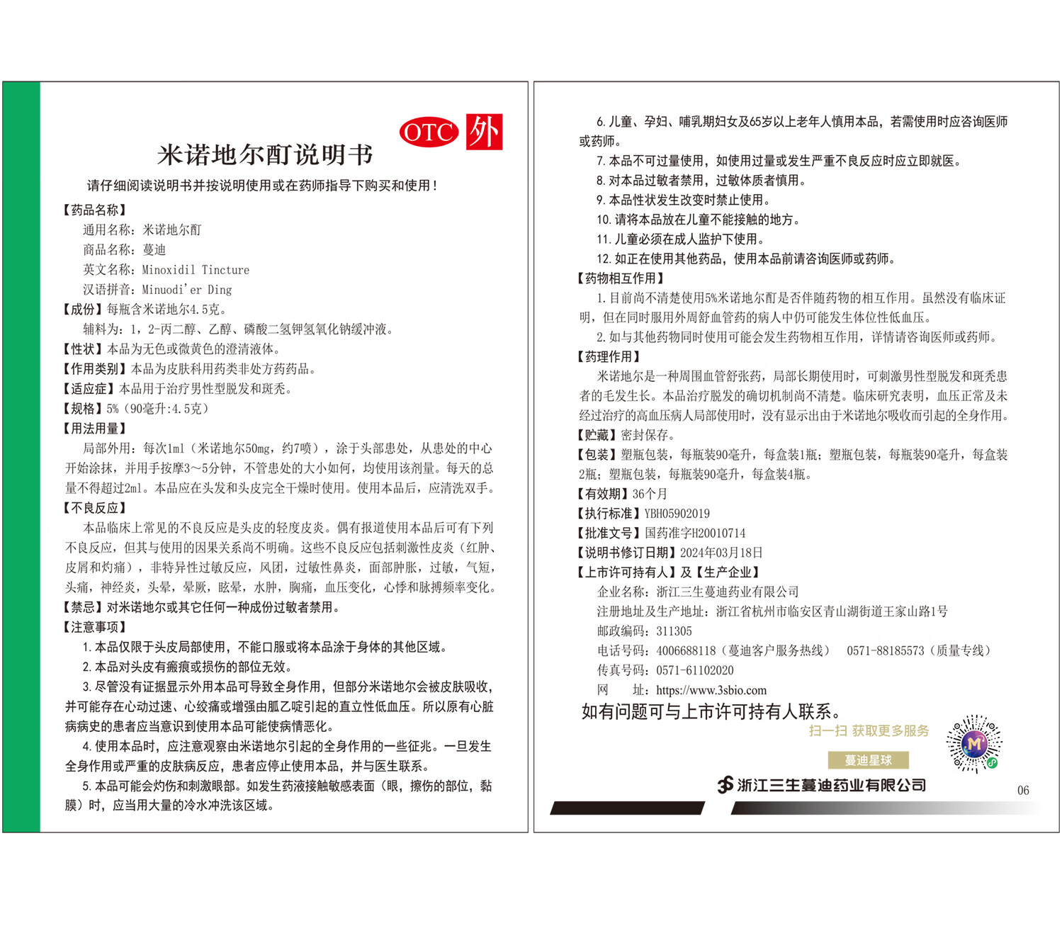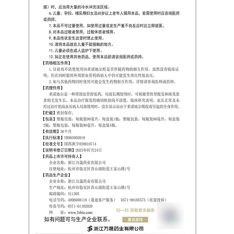 蔓迪生发喷雾米诺地尔酊90ml瓶5%浓度男女性防脱育发液药洗发水发际线生长快速生发增发凝胶搽剂曼迪