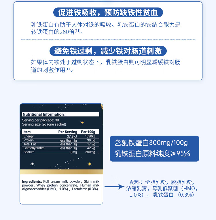 澳特力【崔玉涛团队亲研】乳铁蛋白HMO调制乳粉2g*30袋/罐 原装进口