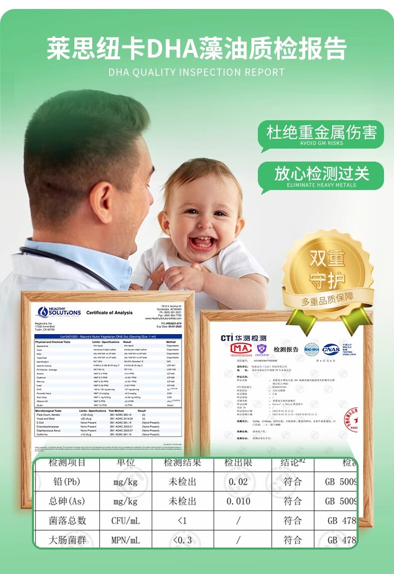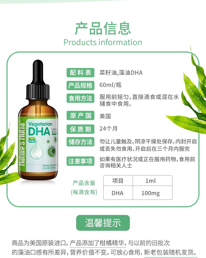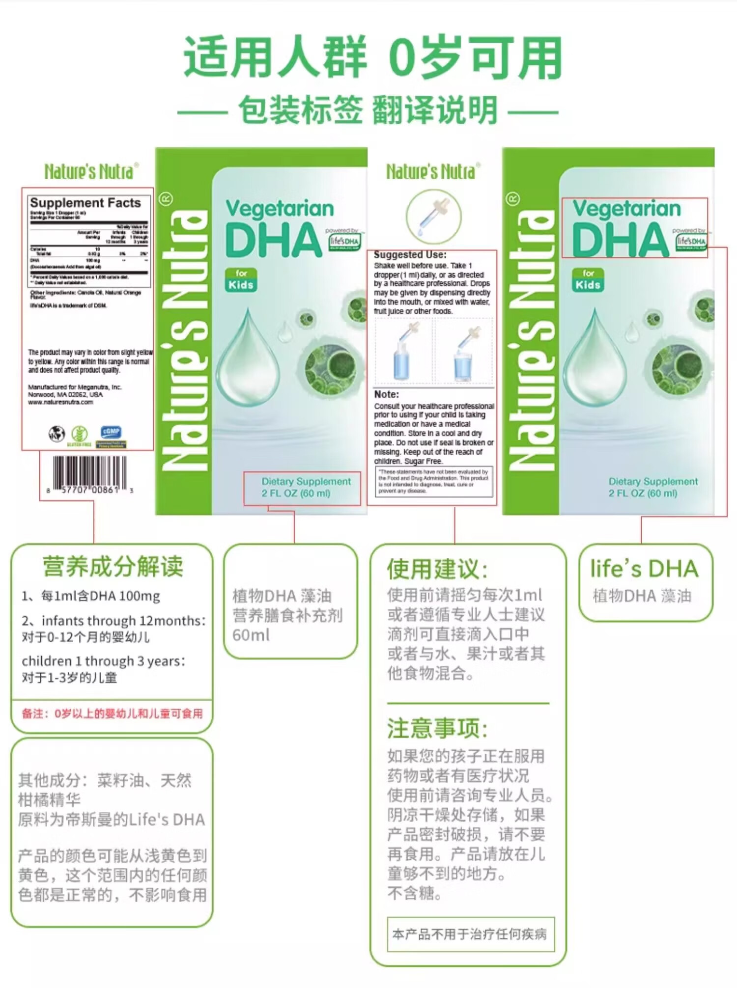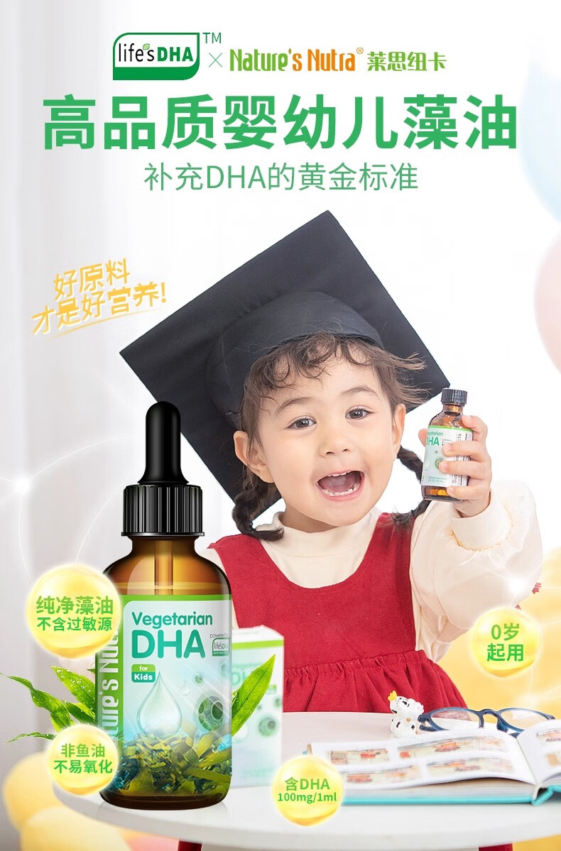 Nature's Nutra莱思纽卡婴幼儿儿童0-1岁DHA藻油植物滴剂无鱼腥味0岁可用 【0岁+新生专研】帝斯曼藻油DHA滴剂