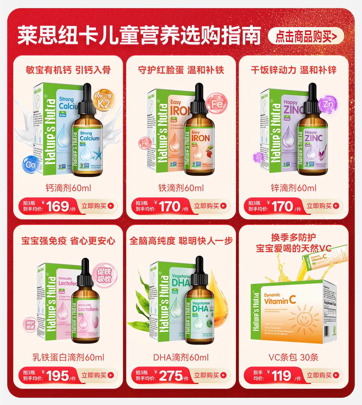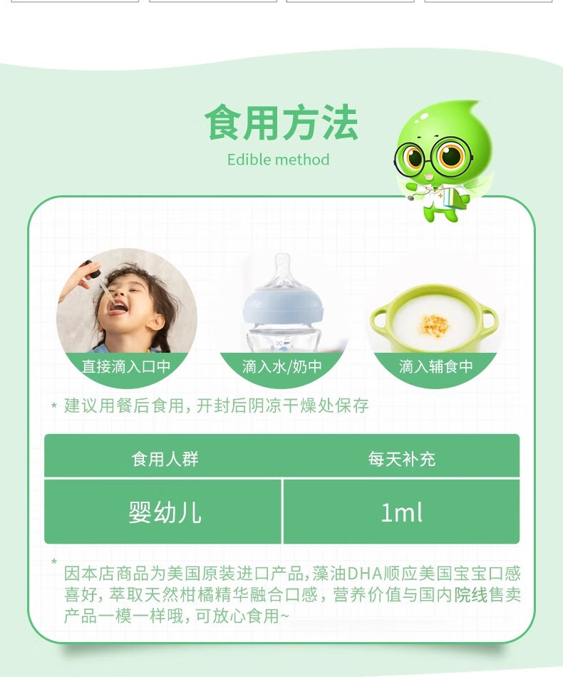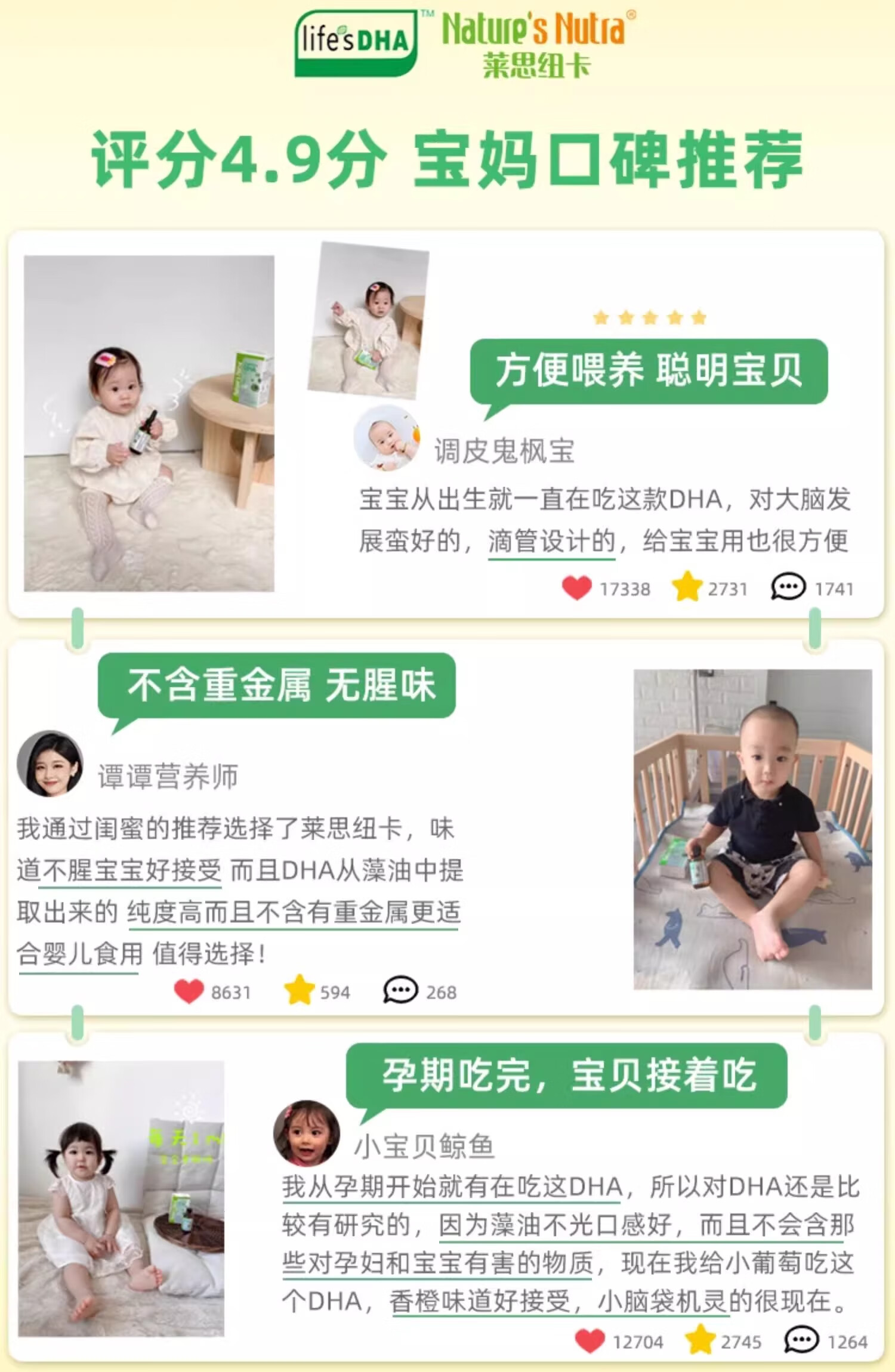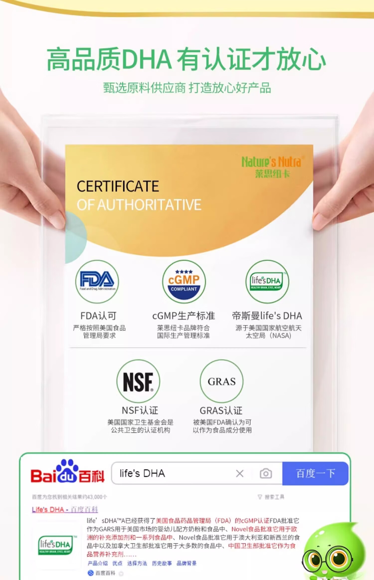 Nature's Nutra莱思纽卡婴幼儿儿童0-1岁DHA藻油植物滴剂无鱼腥味0岁可用 【0岁+新生专研】帝斯曼藻油DHA滴剂