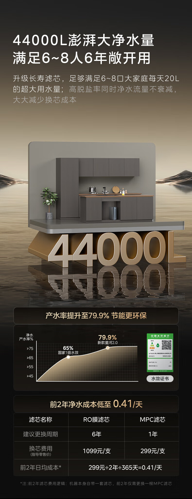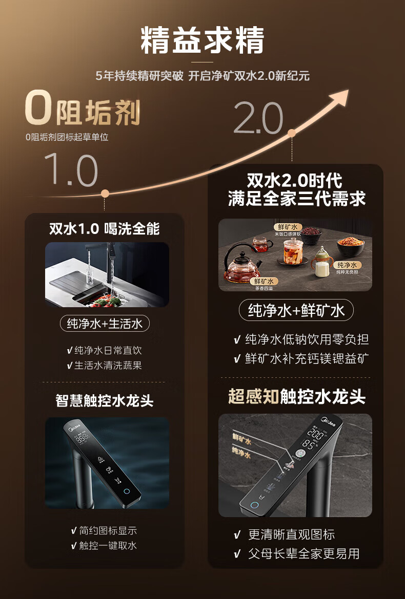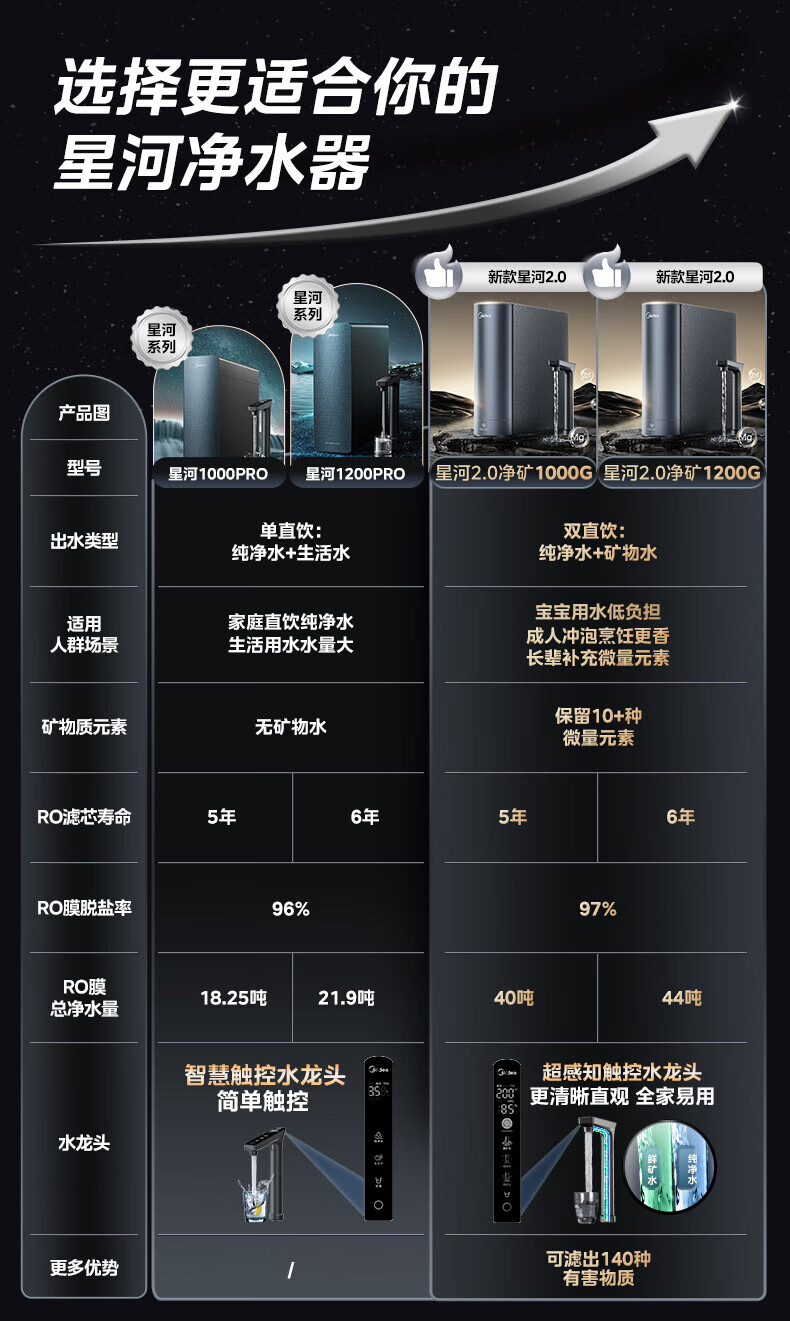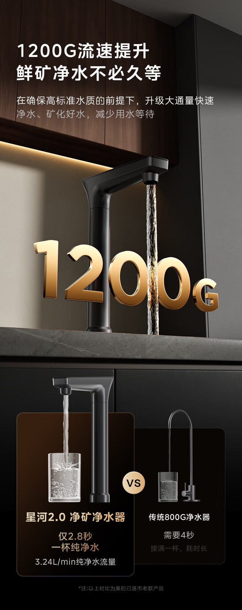 美的家用净水机星河2.0净矿净水器双水直饮1200G6年RO矿物质0阻垢剂 反渗透厨下式净饮机pro升级款系列 【全国可用国补享8折】星河2.0净矿1200g