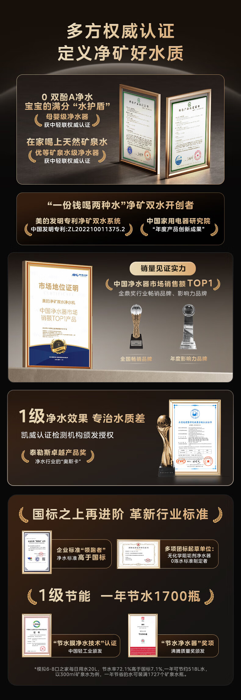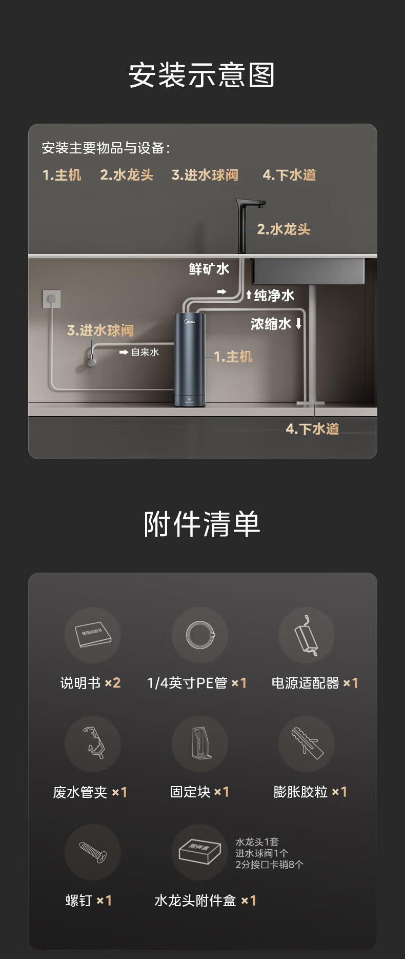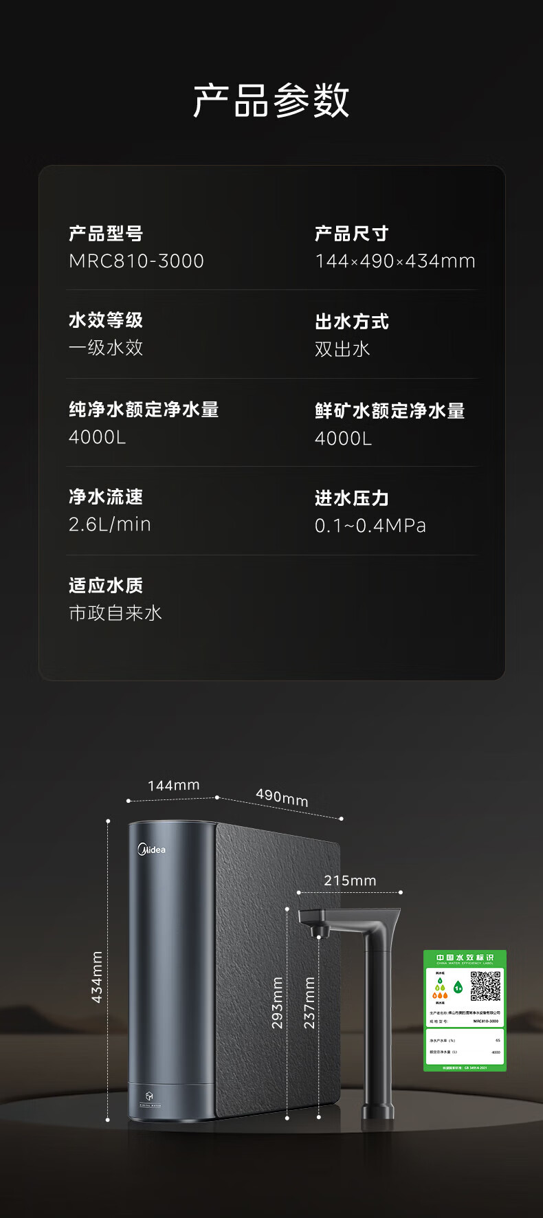 美的家用净水机星河2.0净矿净水器双水直饮1200G6年RO矿物质0阻垢剂 反渗透厨下式净饮机pro升级款系列 【全国可用国补享8折】星河2.0净矿1200g