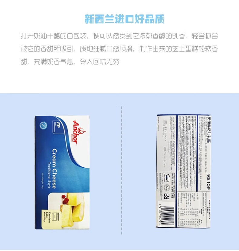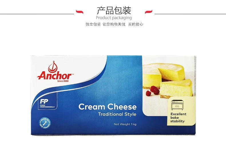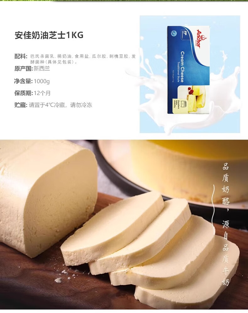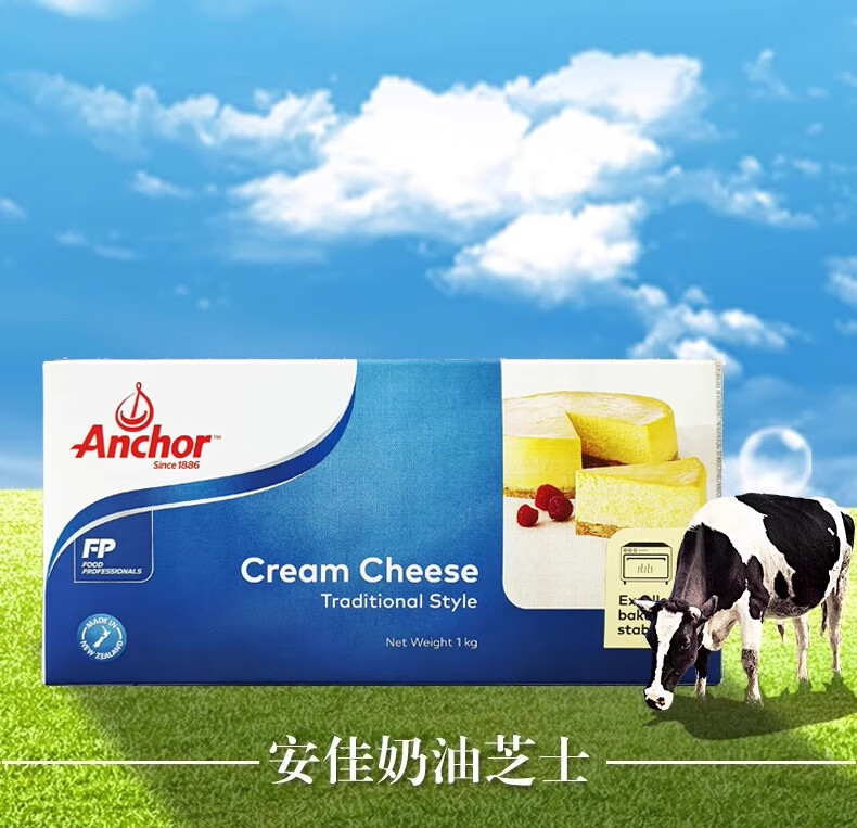安佳(Anchor)奶油奶酪1kg新西兰进口奶油芝士干酪乳酪蛋糕奶盖家商用烘焙原料 安佳奶油芝士1kg