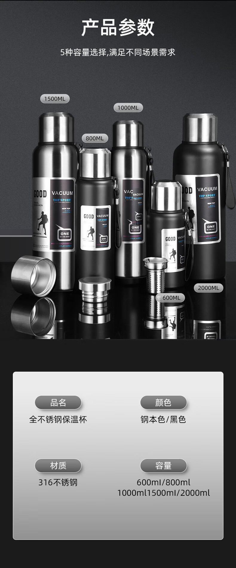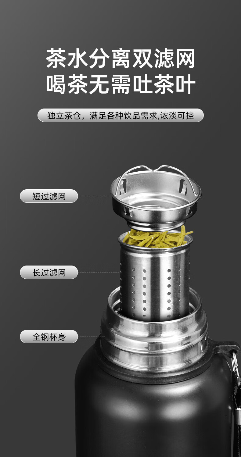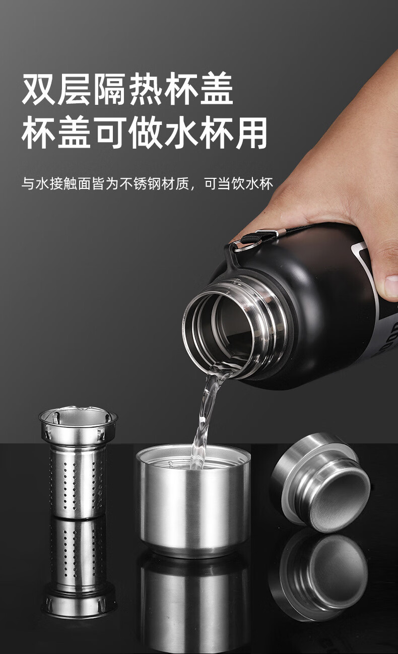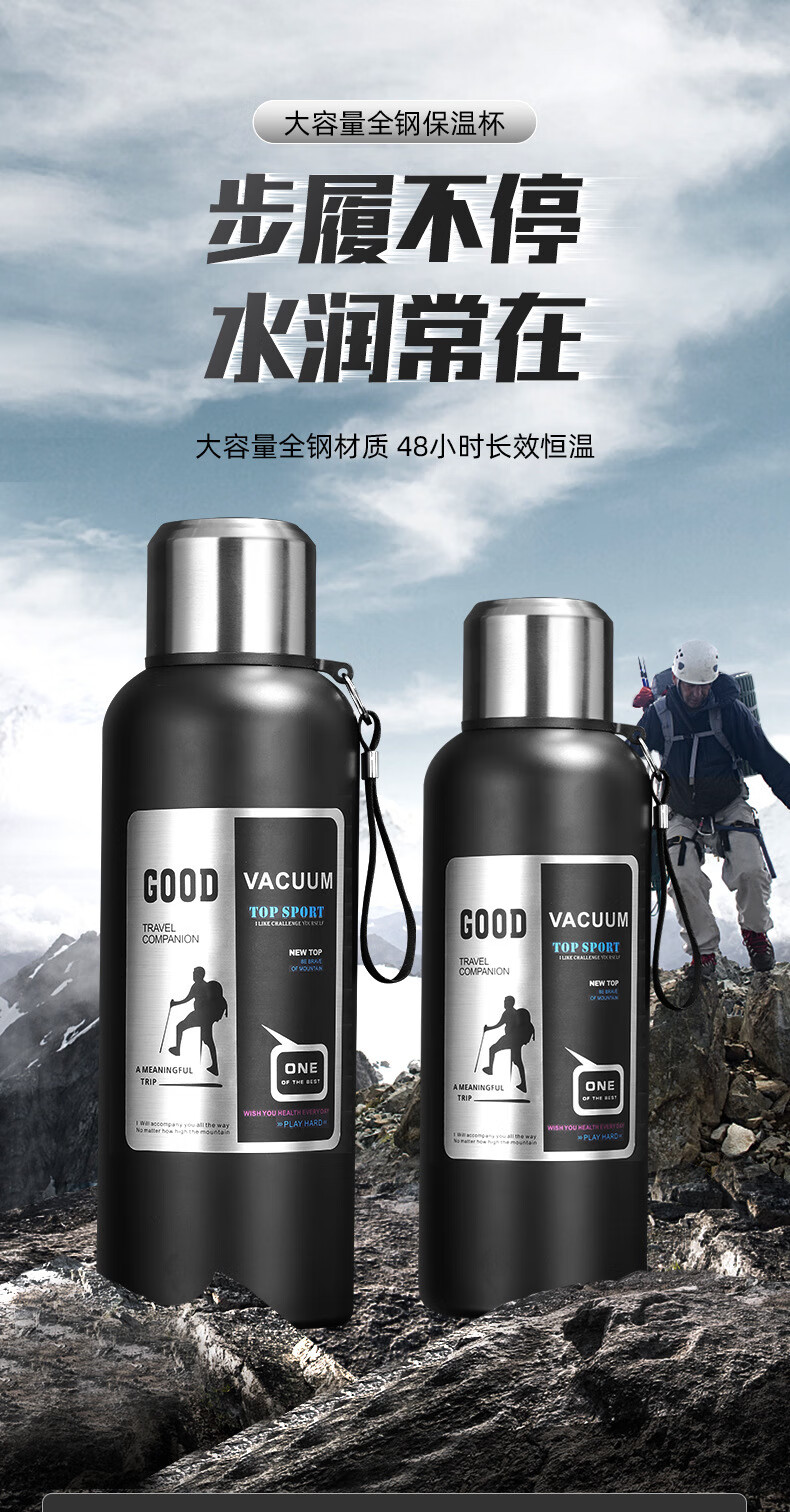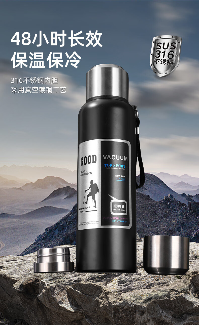 WFFPM德国品牌316不锈钢保温杯男士户外旅行登山水杯便携大容量保温杯 钢本色1500ml 9.6cm*35cm