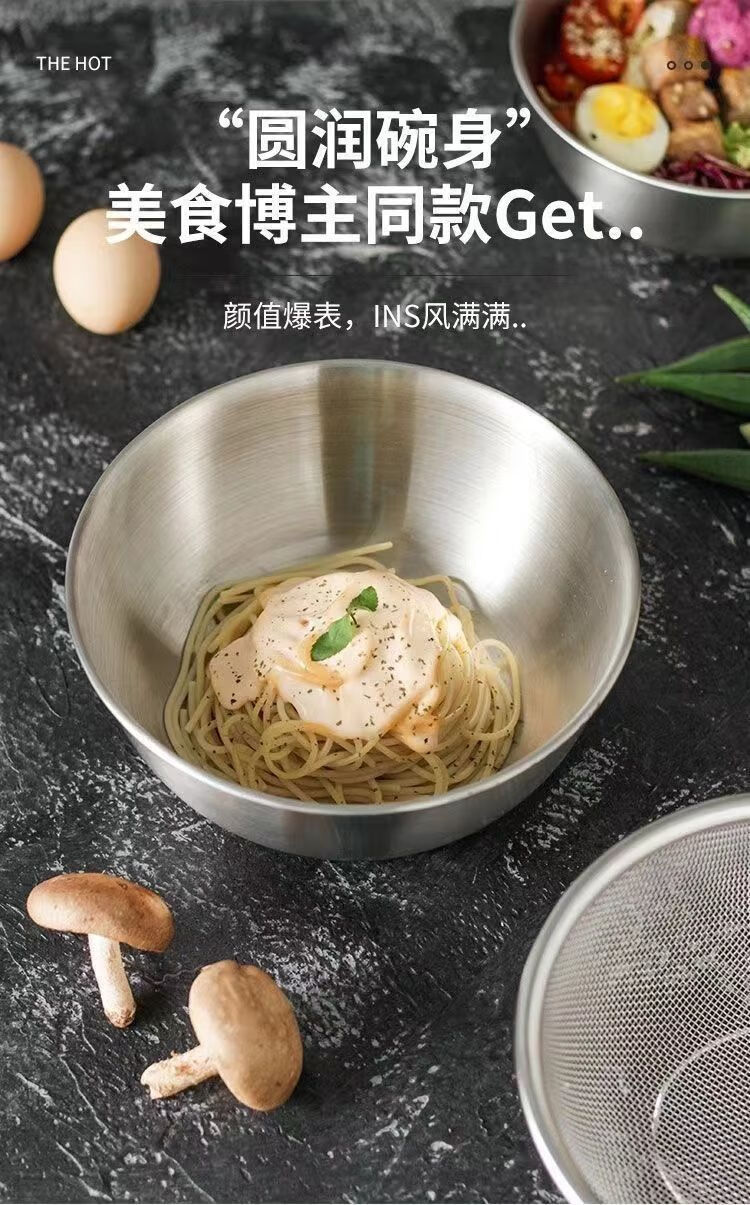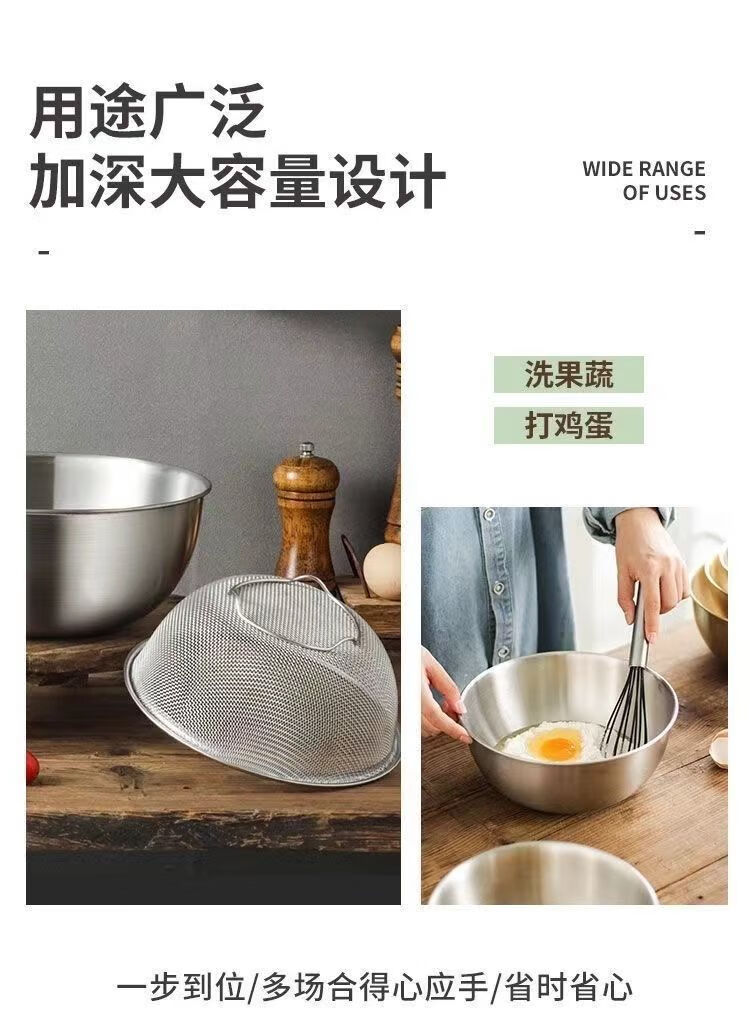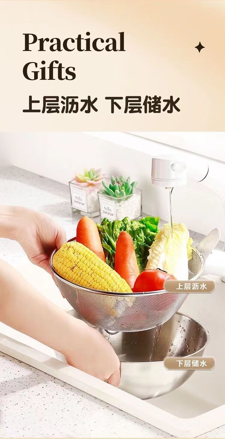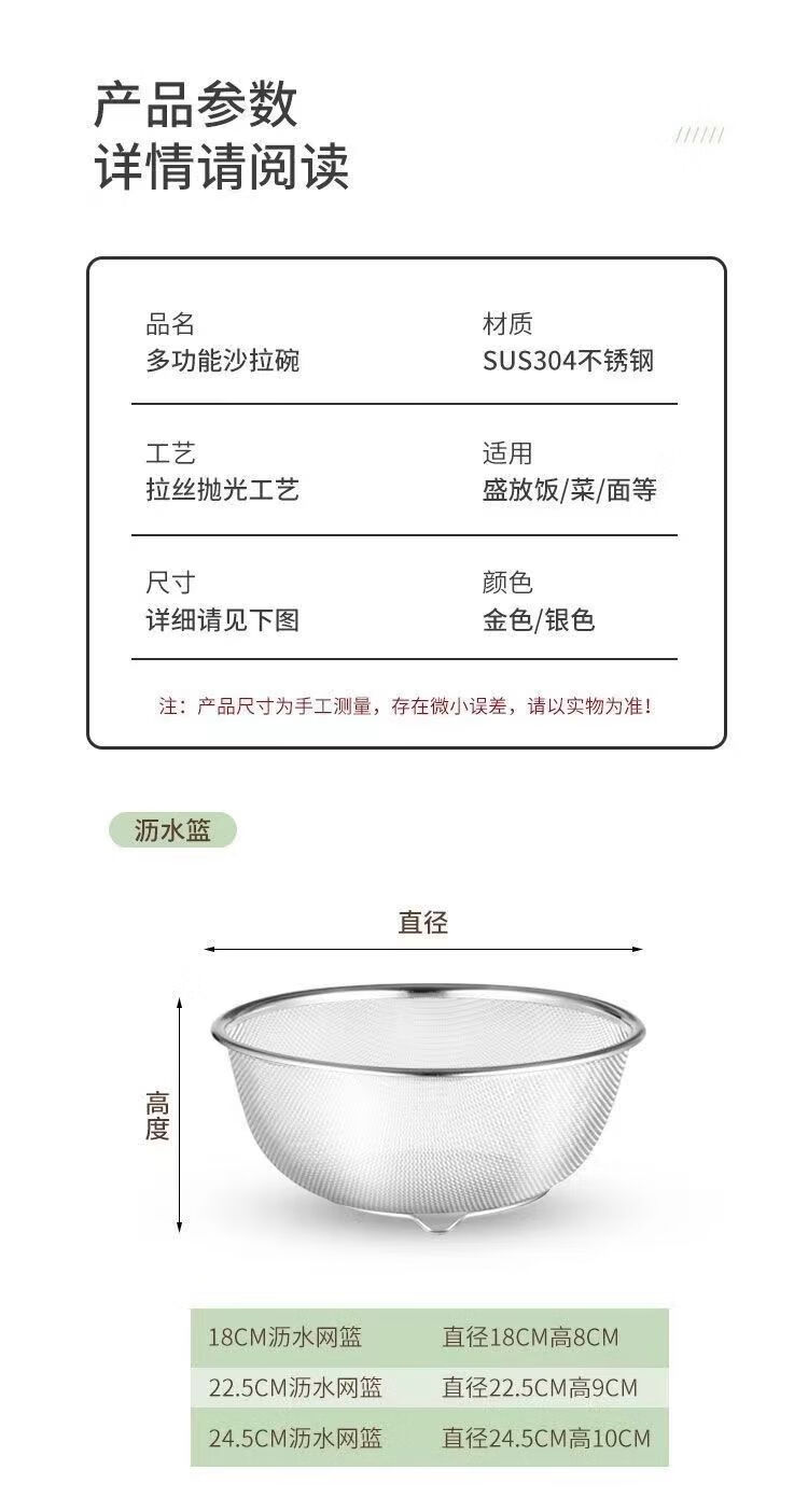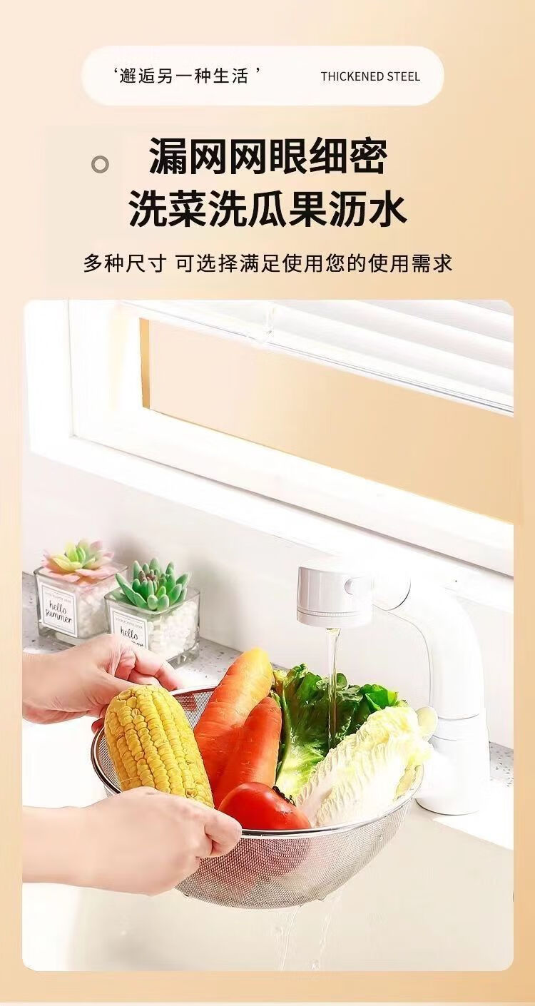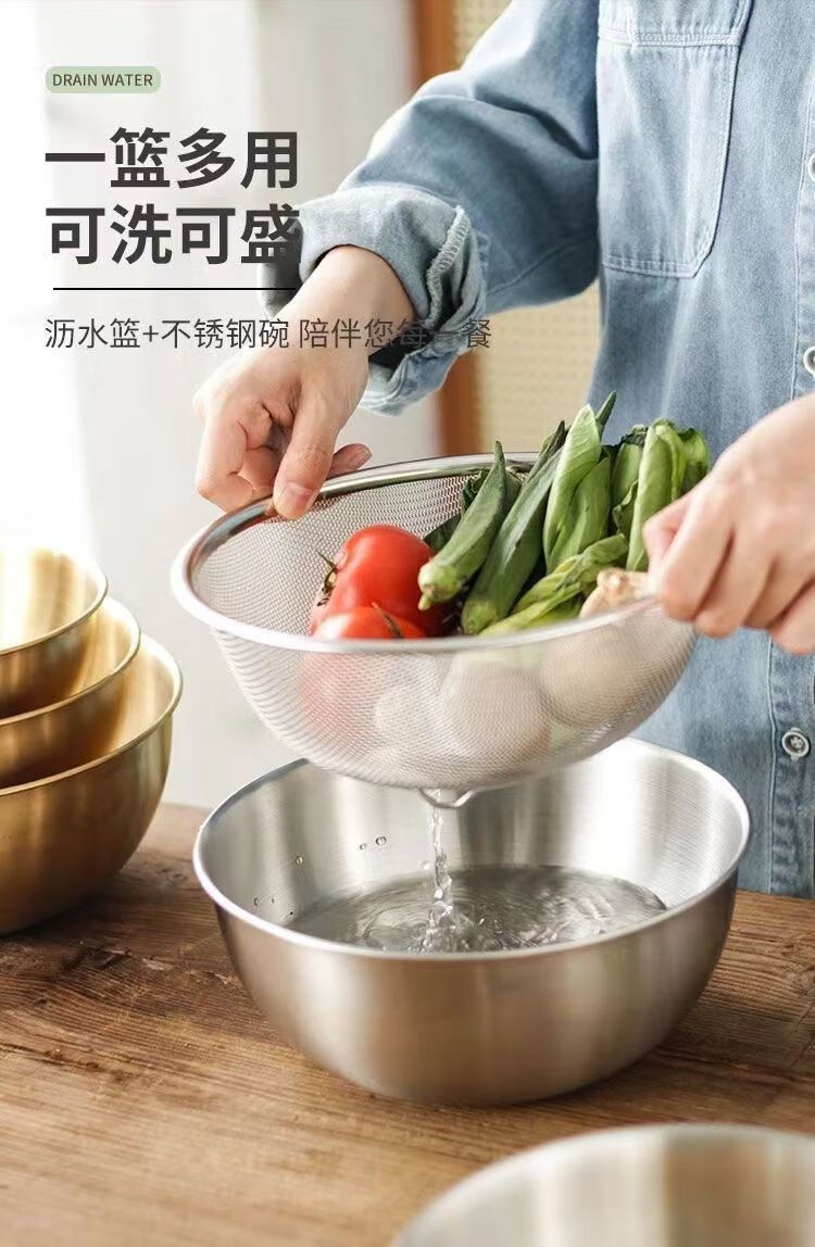 LZJV316不锈钢沥水篮两件套家用厨房漏盆洗菜细孔沥水篮漏水淘米过滤 23CM特厚盆 一个 特厚抑菌材质