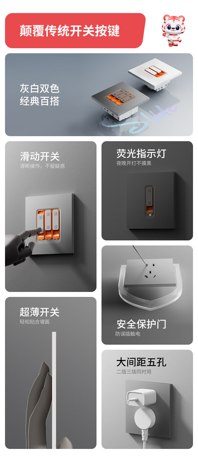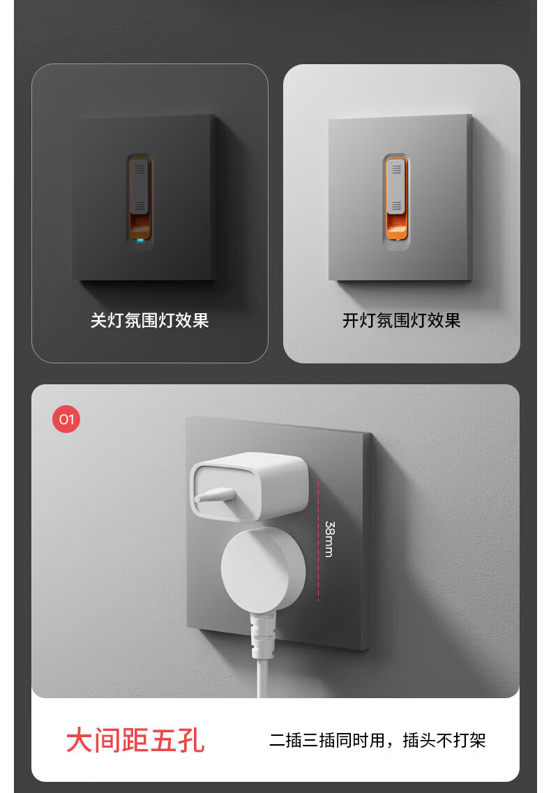 国际电工家用极简超薄肤感滑动开关面板一开单控五孔电源插座86型墙壁暗装 一开单控-滑动 开关